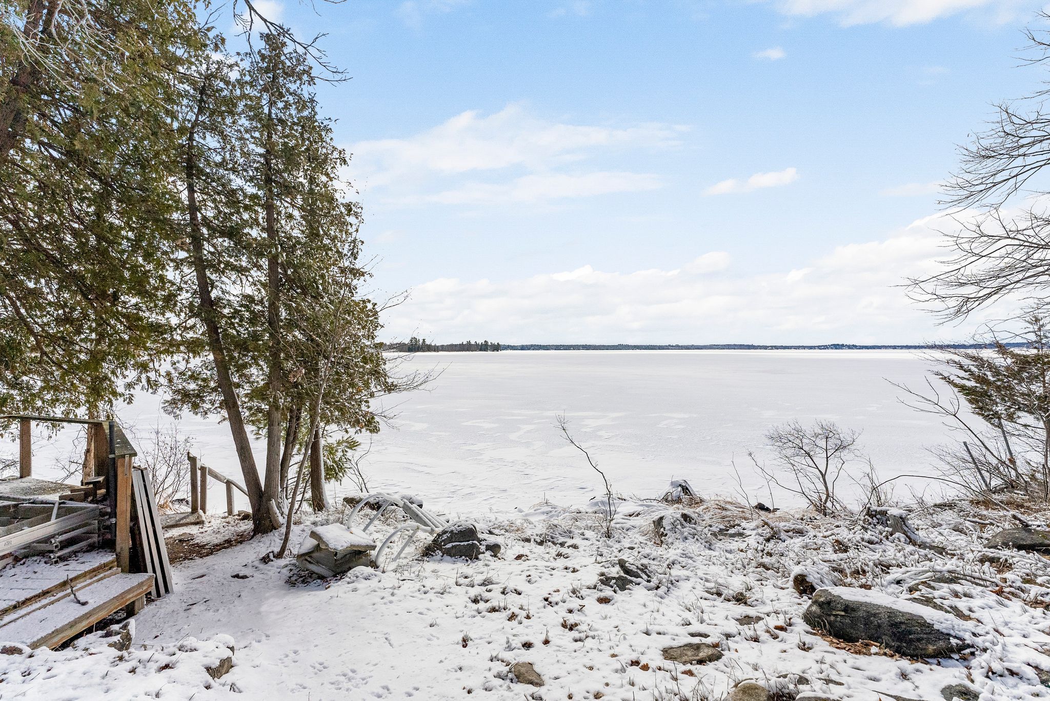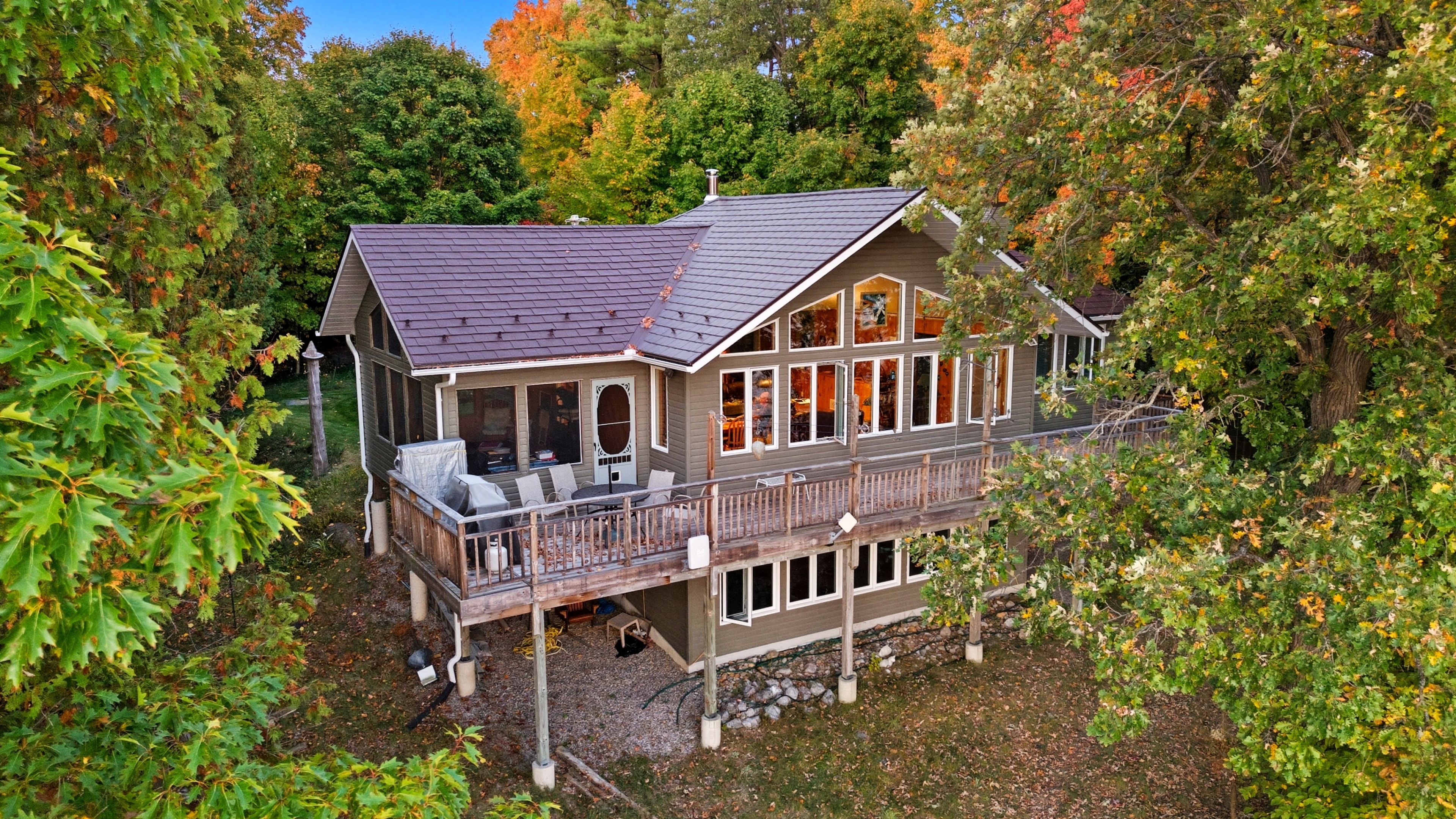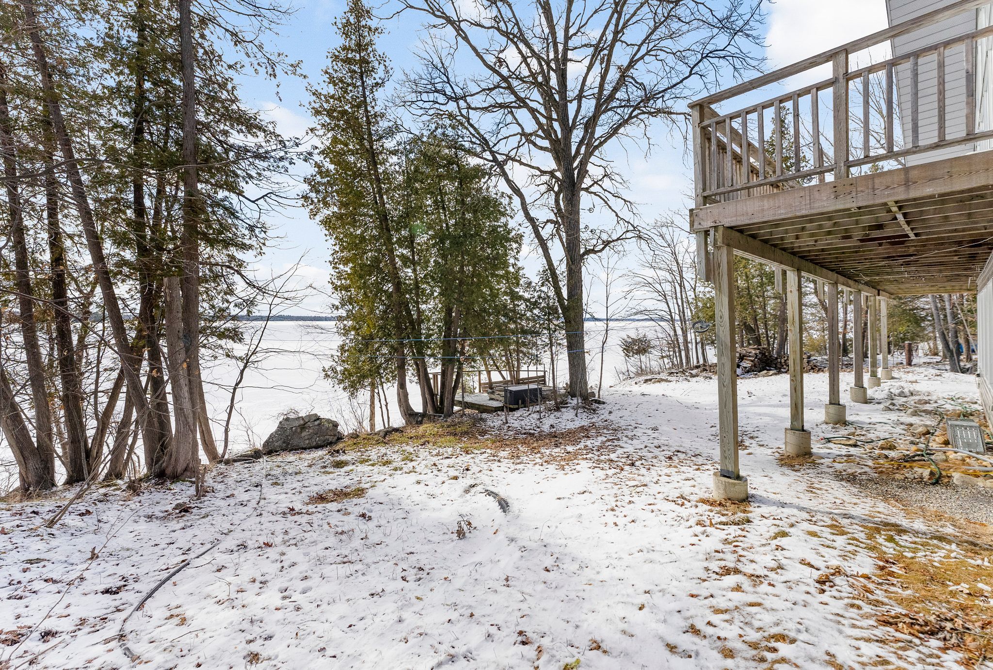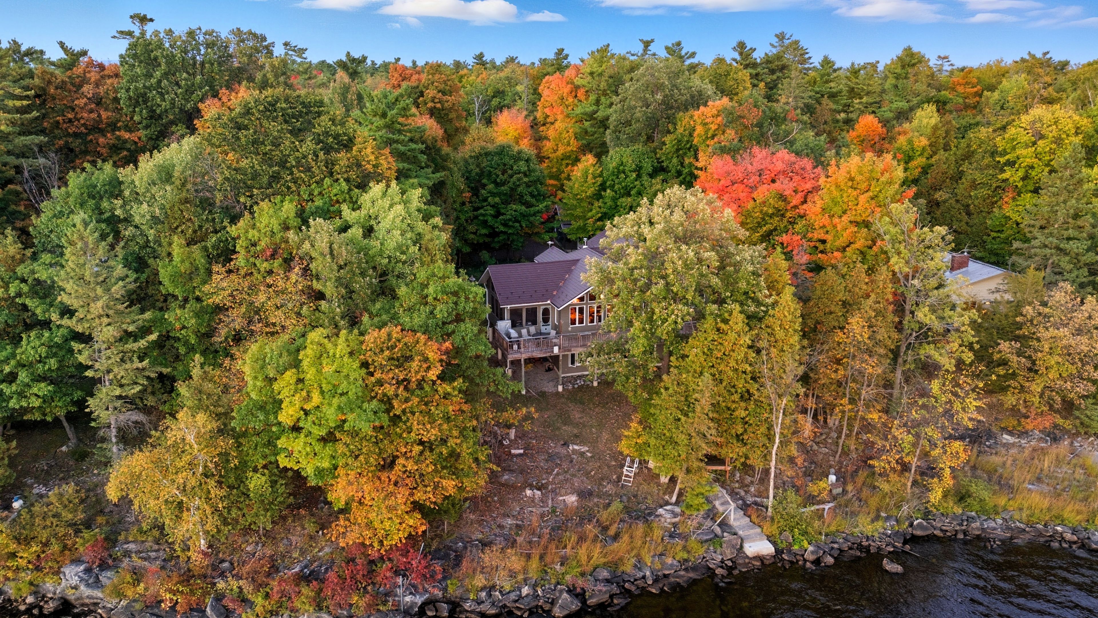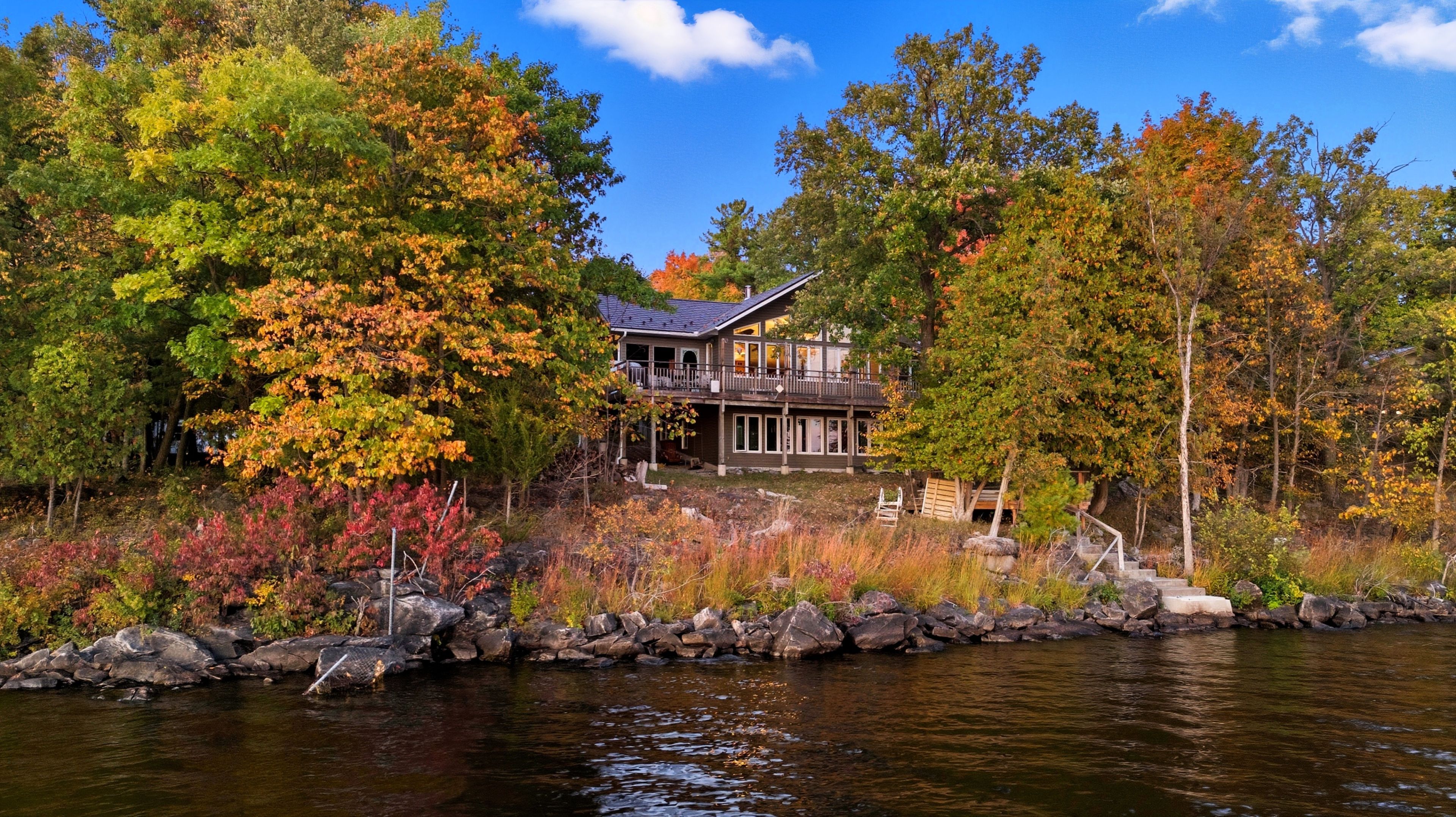• Direct waterfront access with a dock for boating and swimming enjoyment.