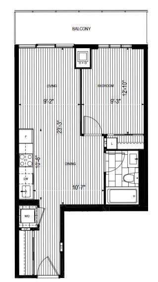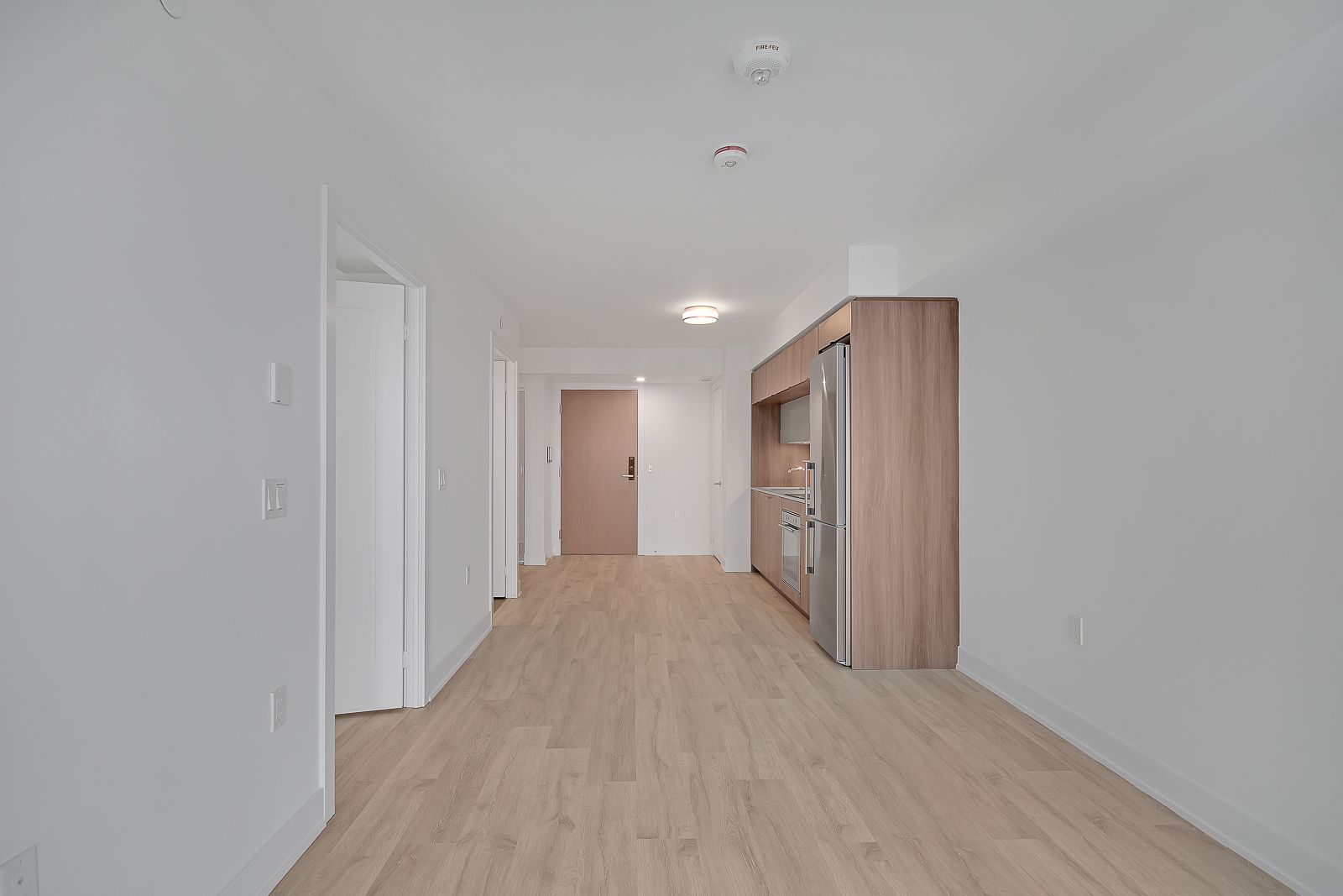 This luxury 1 bedroom + den and 1 bathroom condo suite offers 567 square feet of open living space. Located on the 12th floor, enjoy your views from a spacious and private balcony. This suite comes fully equipped with energy efficient 5-star modern appliances, integrated dishwasher, contemporary soft close cabinetry, ensuite laundry, and floor to ceiling windows with coverings included. Parking and locker are not included in this suite.