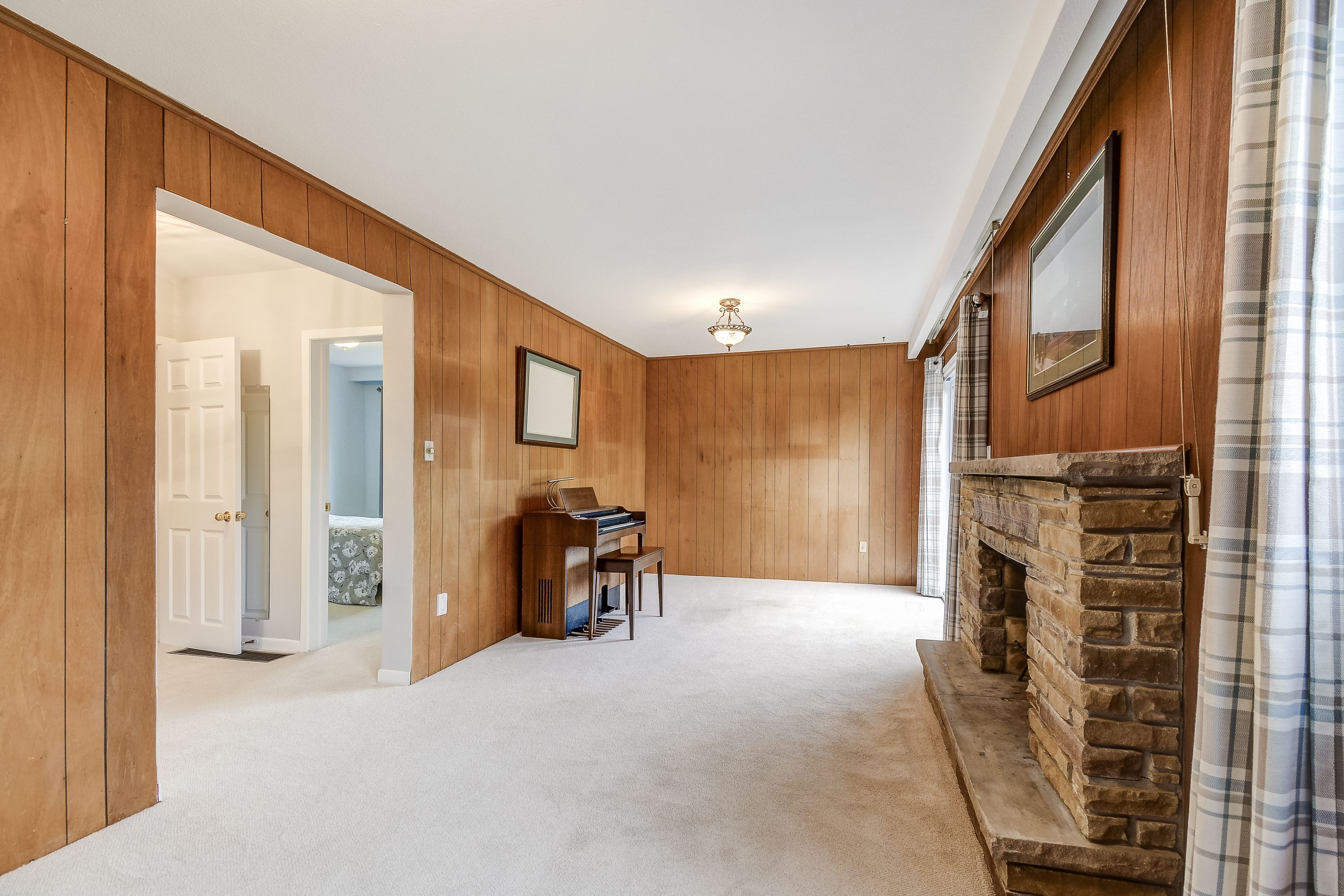 • Cozy family room with a fireplace and access to the backyard.