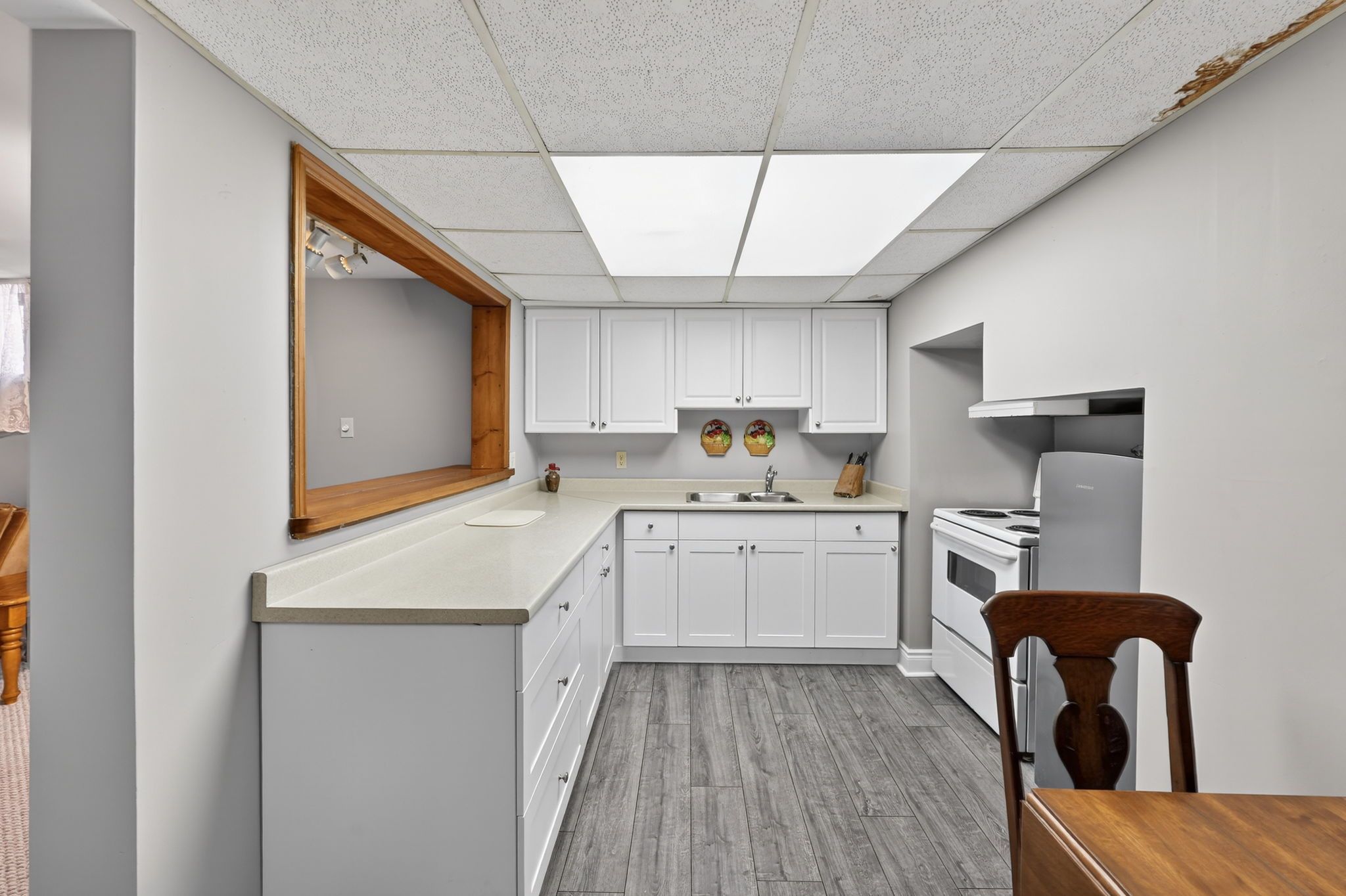 • Lower level with a second kitchen and large living space for versatility.