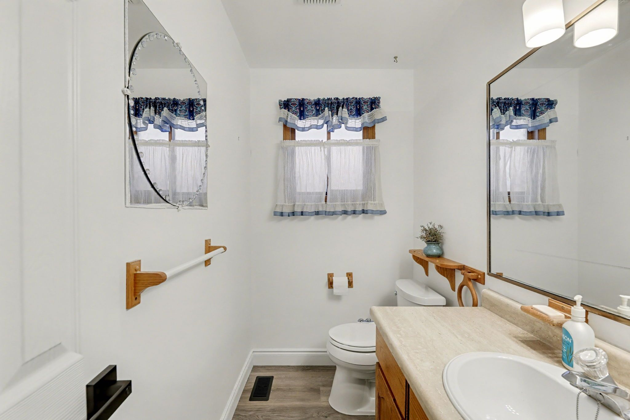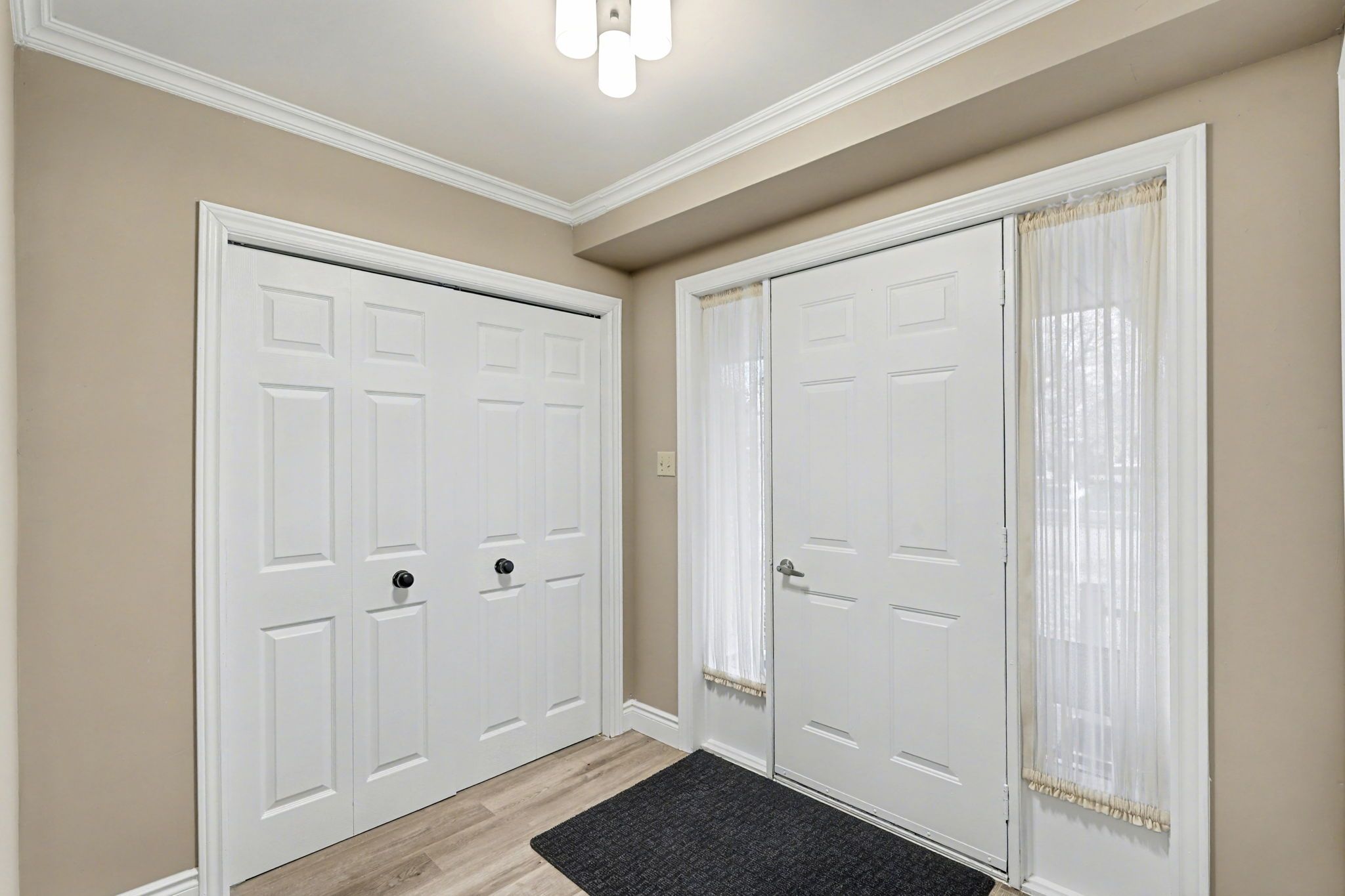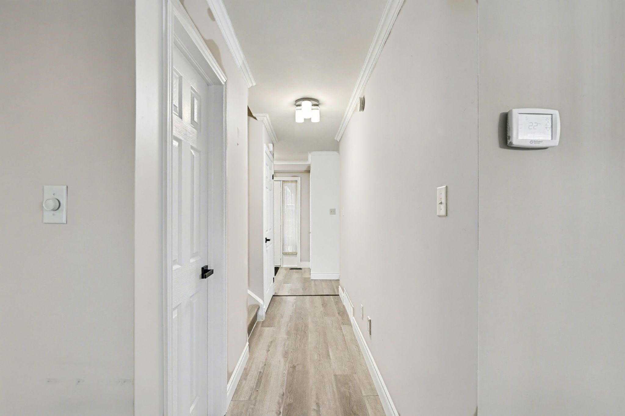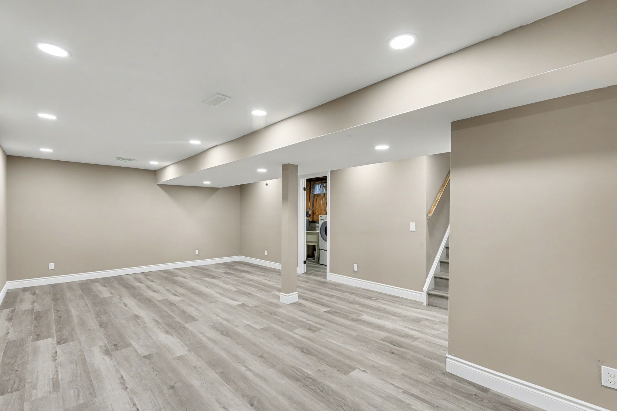 • Bright and open layout with modern lighting and no carpet flooring.