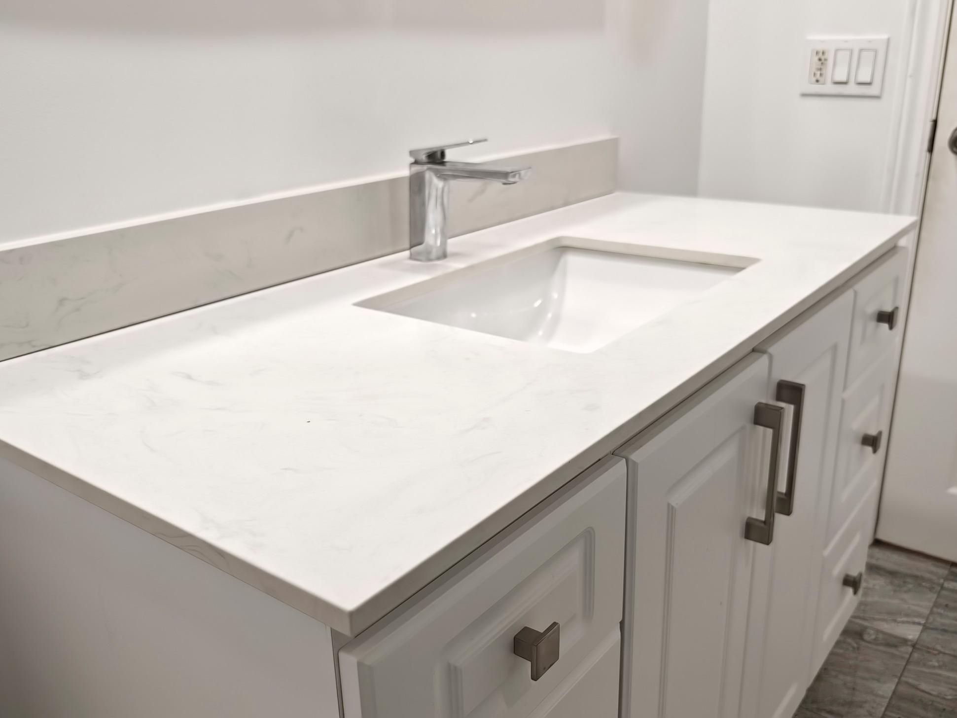 • Stylish modern kitchen featuring quartz countertops and stainless steel appliances.