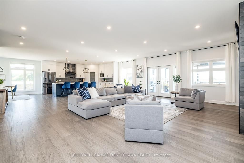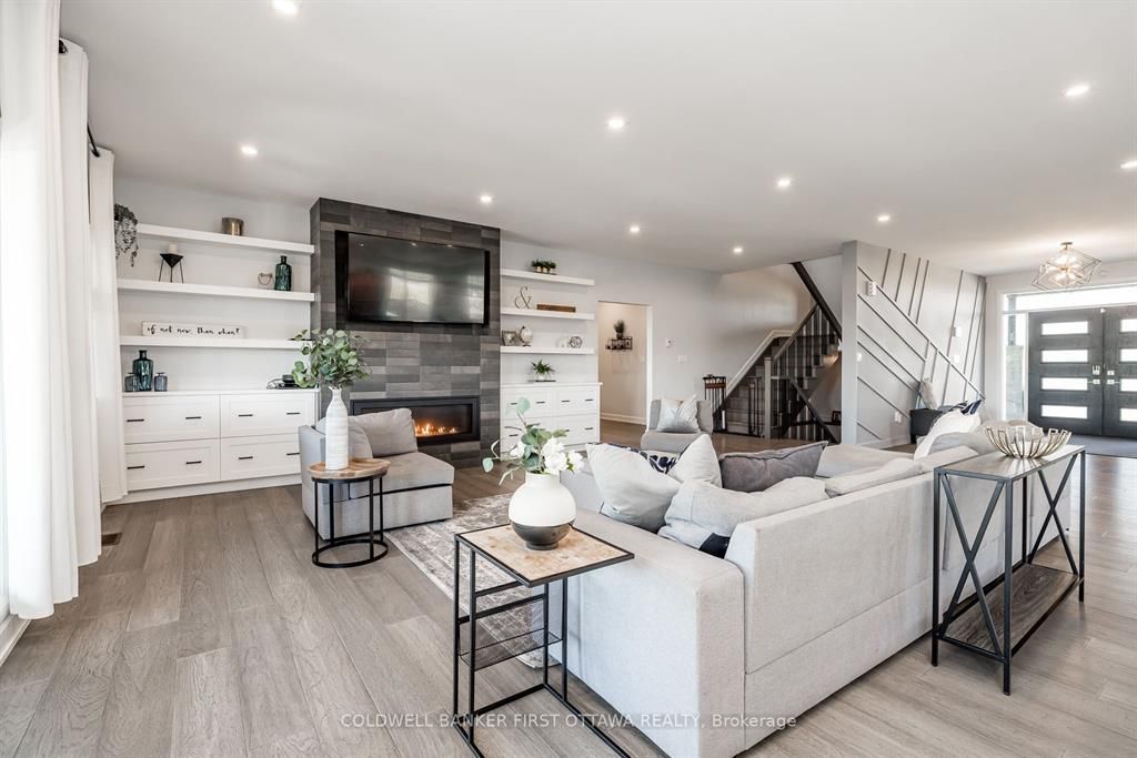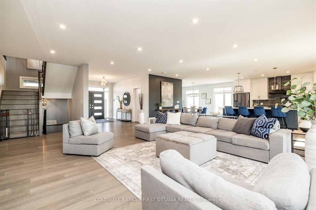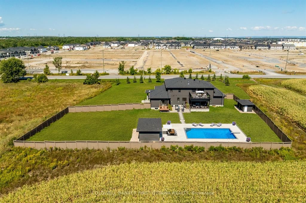 Discover this exceptional 7-bedroom luxury residence, designed for multi-generational living and entrepreneurial opportunity. Featuring two distinct living spaces each with its own private entrance and garage the property is ideal for extended family, rental income, or professional use. Uniquely approved for business, the zoning allows on-site client parking, a rare advantage for wellness services, professionals, or a variety of industries in the stittsville/kanata south area. Set on 1. 25 acres, the fully fenced grounds include a saltwater pool, pool house, and a 75x75 ft side yard ready for a multi-sport pad. With a 100-amp electrical panel for lighting and a water line for winter ice, the space is perfect for hockey, basketball, or pickleball. Inside the main home, an open-concept layout features hardwood flooring and premium finishes. The chefs kitchen offers quartz countertops, custom cabinetry, a walk-in pantry, and oversized island, while the expansive covered deck extends entertaining outdoors. Upstairs, the primary suite includes dual walk-in closets, a private balcony, and lounge/office. Two additional bedrooms with ensuites and walk-ins, plus a loft and laundry, complete this level. The finished basement adds a built-in hockey rink (which can be converted to rec room), gym, and large office, with potential for extra bedrooms or entertaining space. The second home offers a full kitchen and living room, private back porch, powder room, main-floor bedroom with ensuite, its own garage, and a finished basement that connects to the main residence. There is even potential to develop a third dwelling ideal for in-laws, rental, or business use. Additional highlights include a state-of-the-art air purification system and generac generator. Close to top schools, shopping, and trails, this property offers a rare chance to live, work, and play in one of ottawas most sought-after communities.