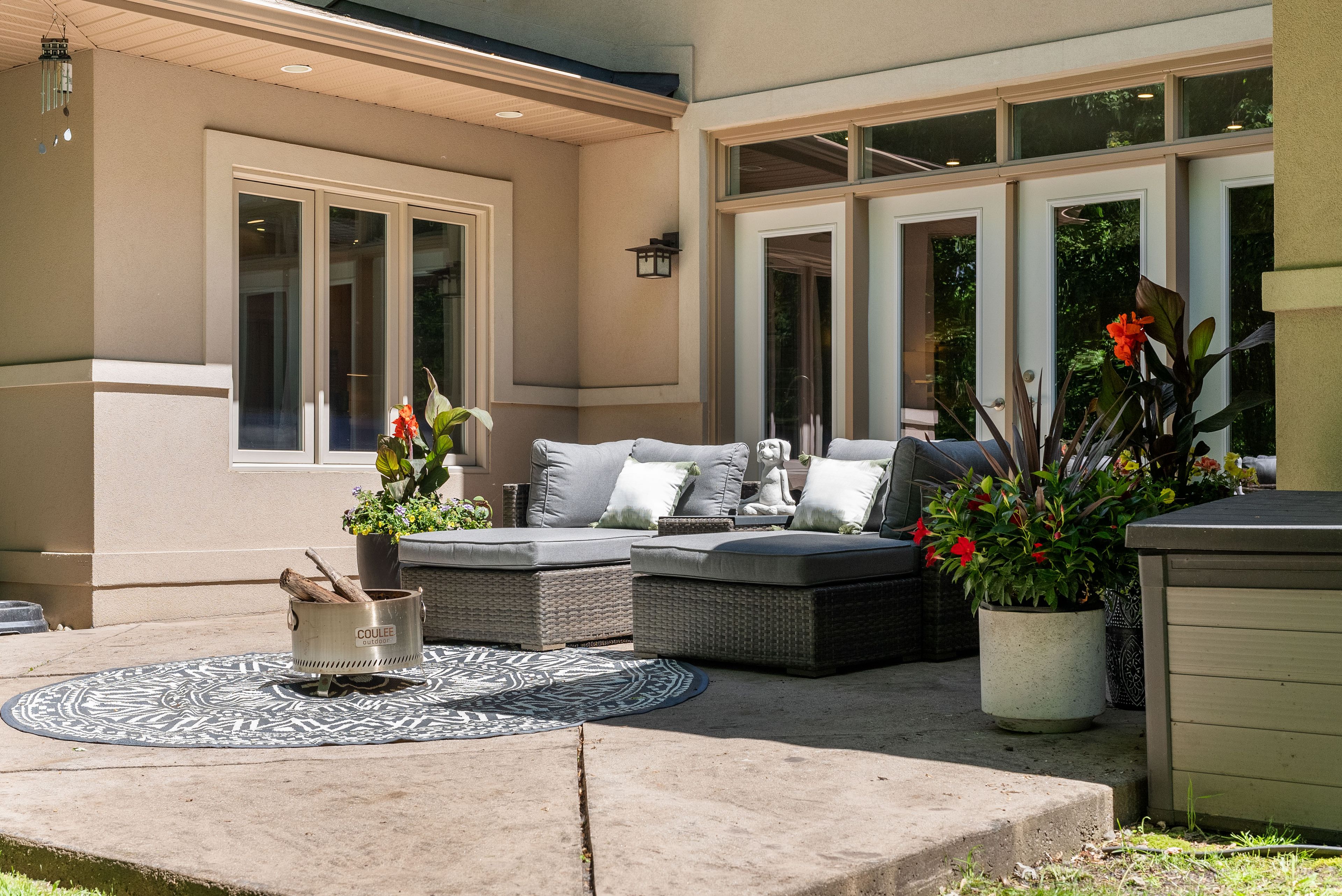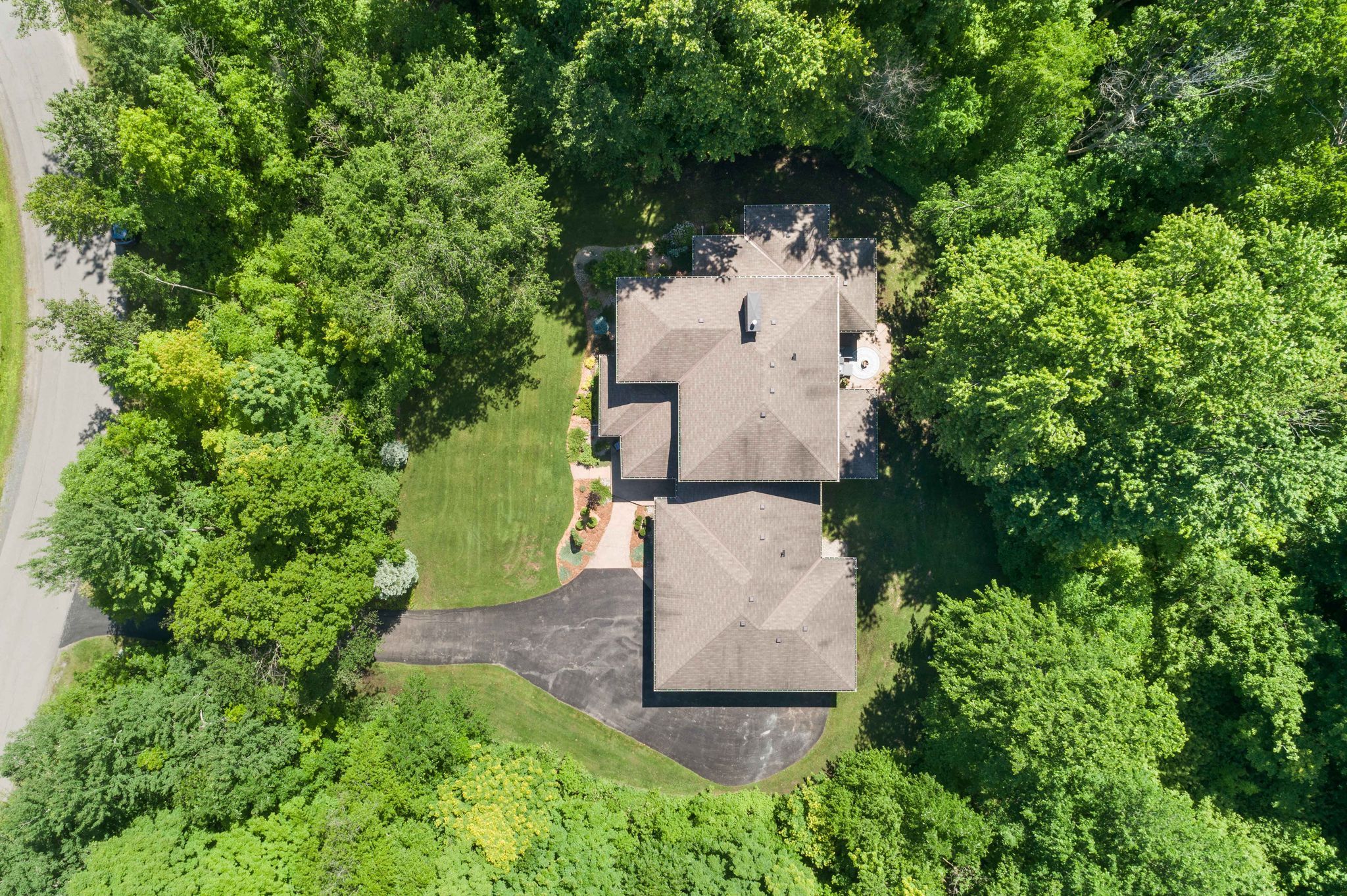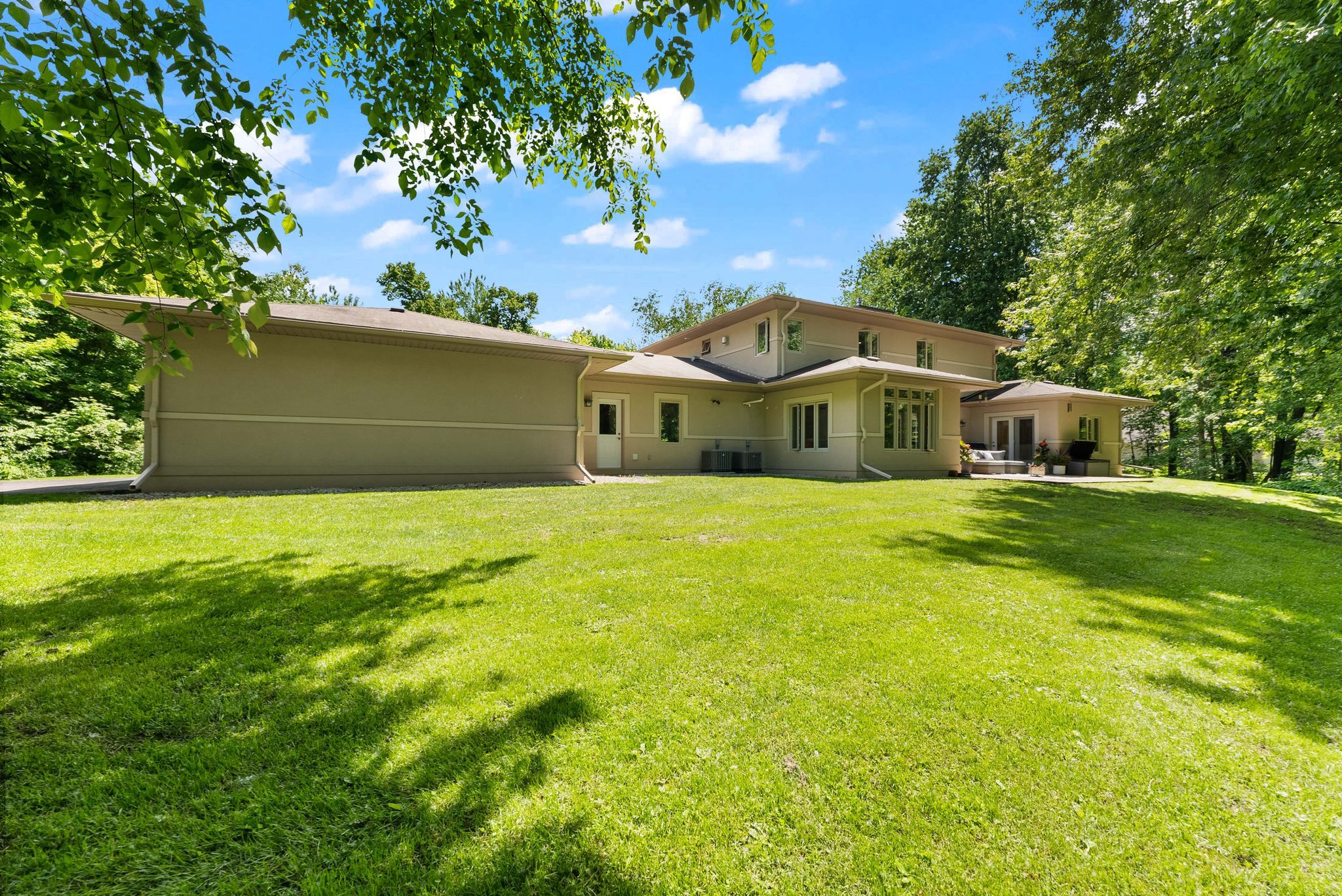 • Custom-built home on a private 4.4-acre treed estate with Prairie-style architecture.