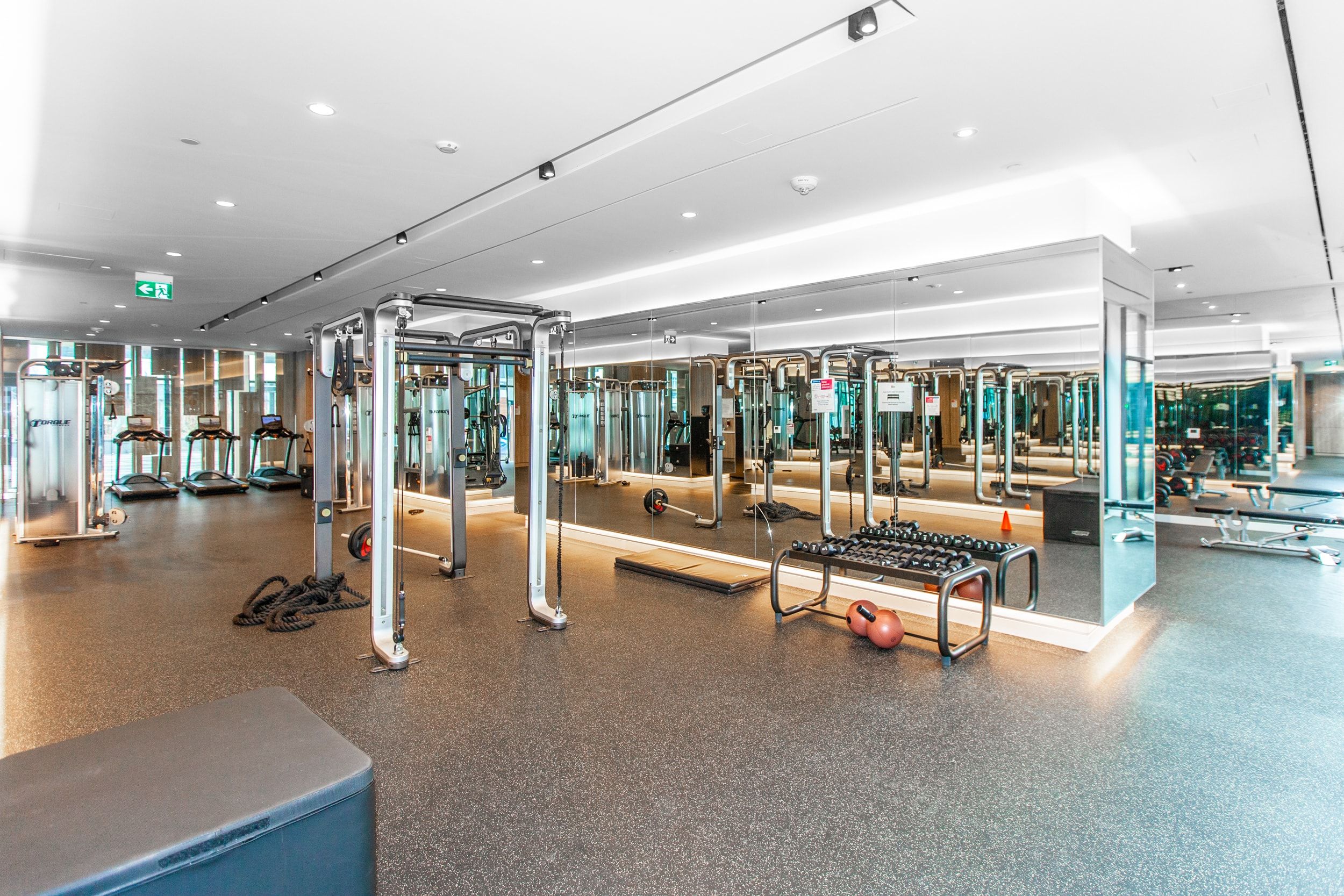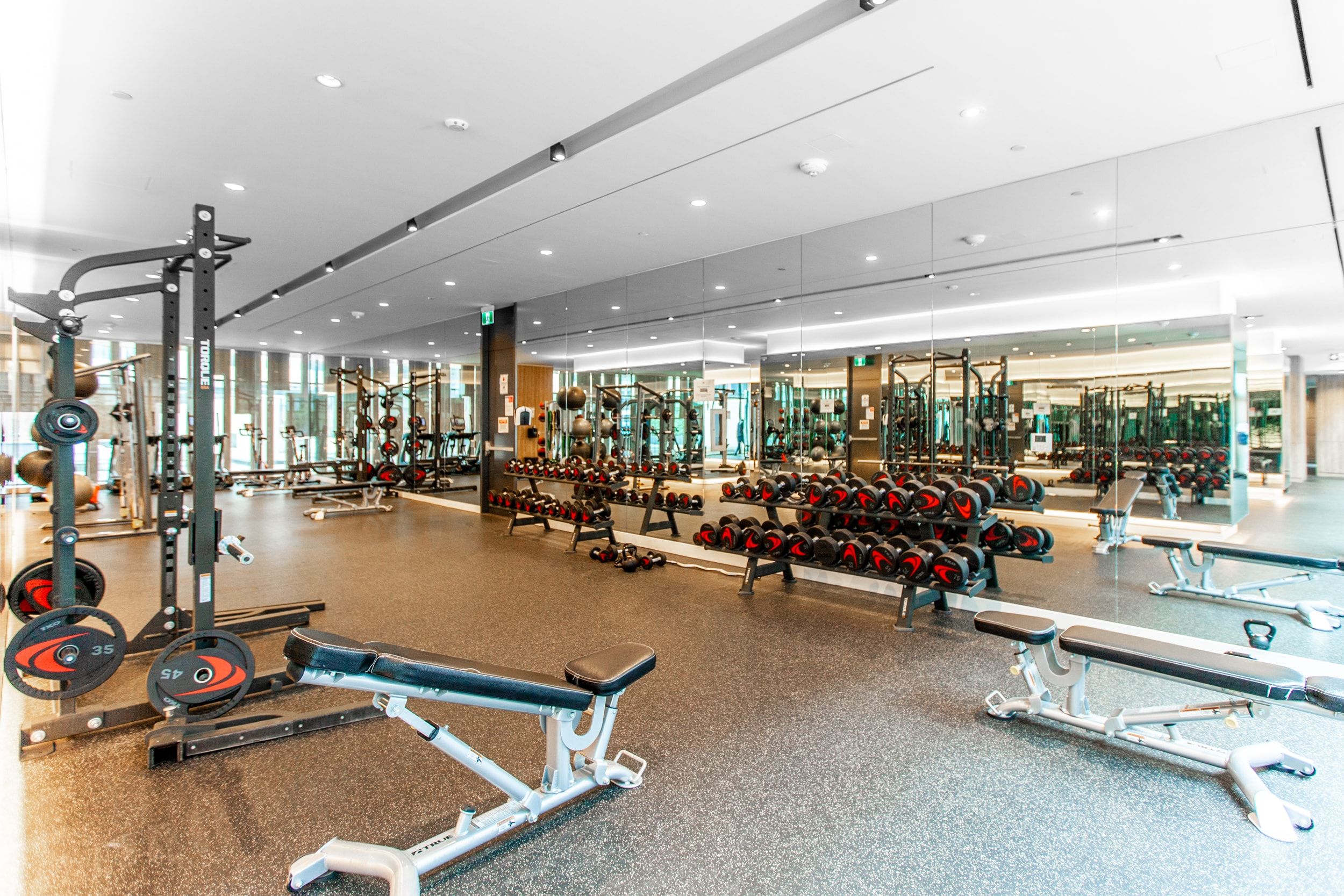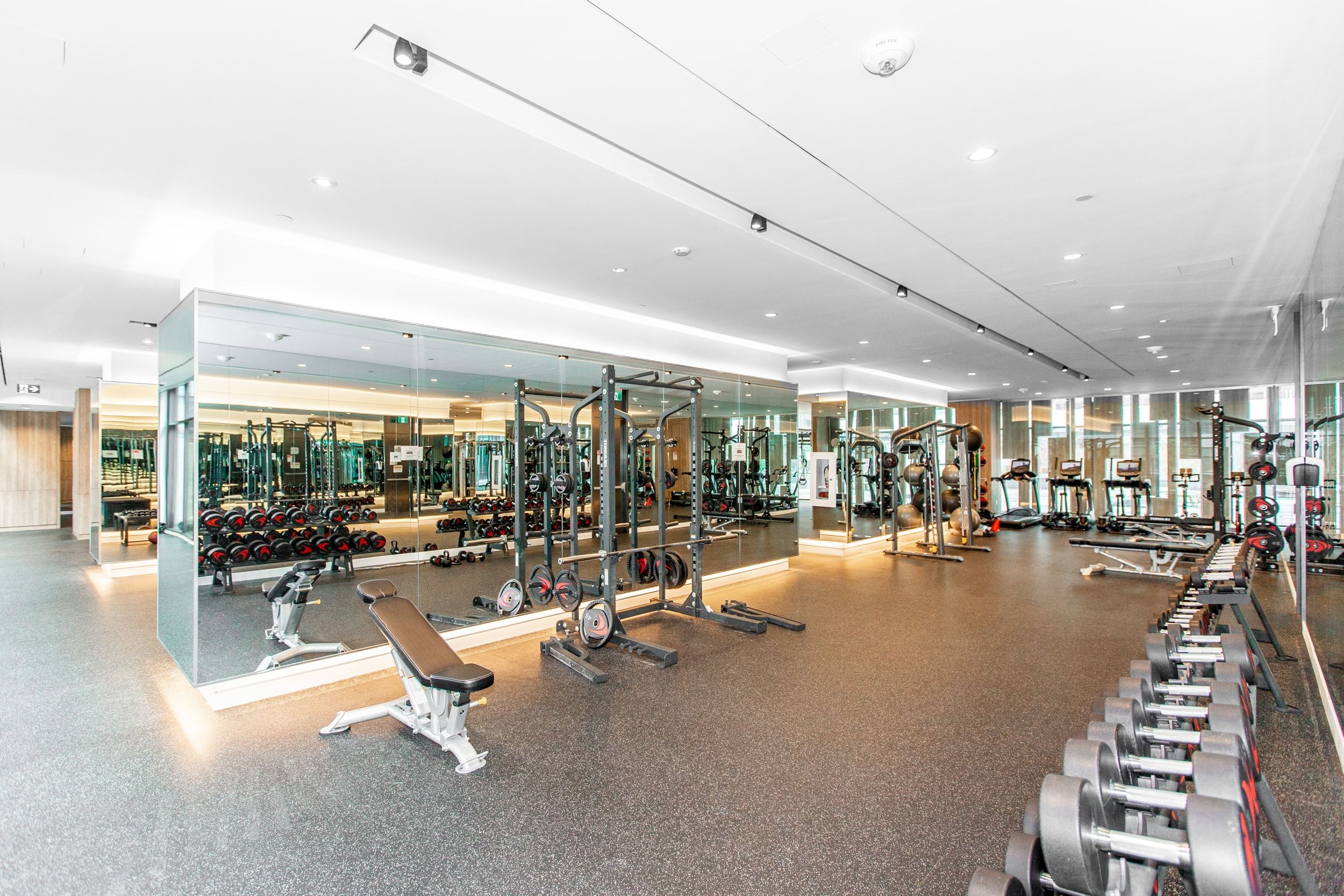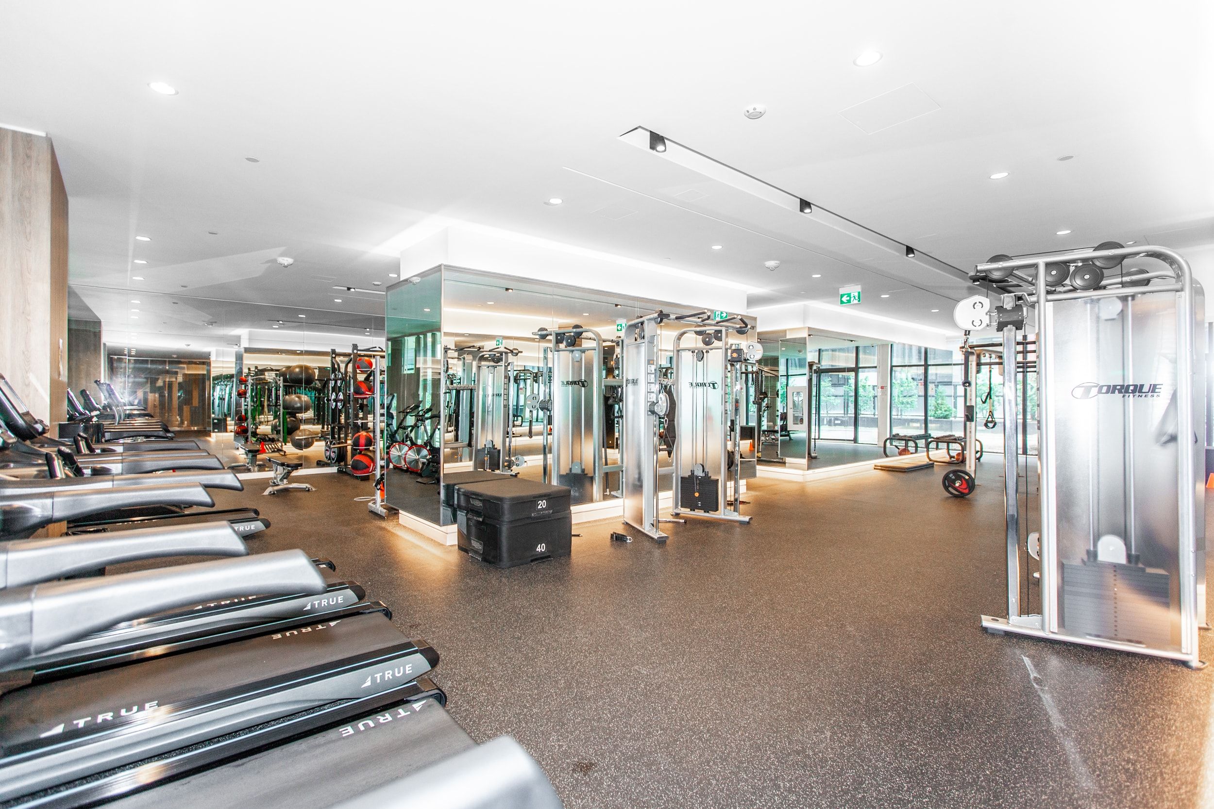 • Luxury amenities include a fitness center and heated outdoor pool.