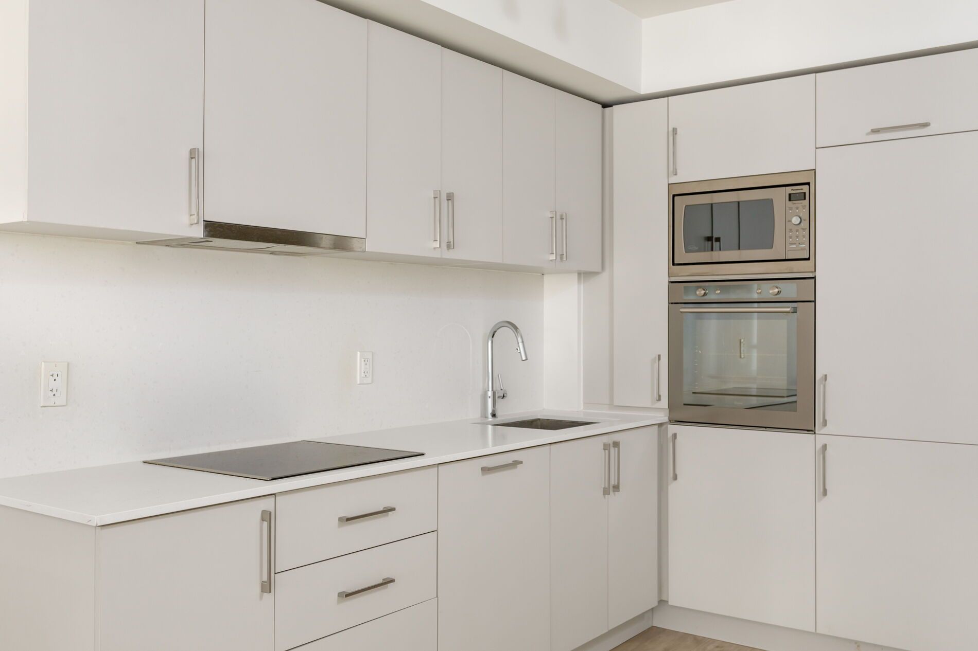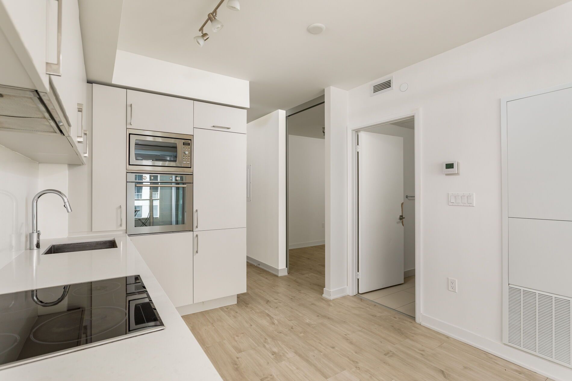 Welcome home to this fabulous 2 bedroom, 2 bathroom condominium featuring 632 square feet of living space. An exceptionally functional floor plan, the unit maximizes the use of available floor space with an open concept design that is both functional and aesthetically appealing. The main living area includes a classic all-white chef's kitchen with custom cabinetry with high-end built-in appliances, a built-in electric cooktop and a floating marble-top kitchen island, all of which is open to the combined living and dining room, including a walk-out to a nicely appointed balcony. Inside the generously proportioned primary suite, you'll find a large walk-in closet and a 3-piece ensuite bathroom with floor-to-ceiling windows. The second bedroom, which can also function as a den, offers comfort and privacy with a frosted glass sliding door plus easy access to the additional 4-piece bathroom. With upgrades throughout, including custom roller blinds in the primary bedroom and living room, this unit offers all the comforts of home while also being conveniently located a short walk away from every amenity imaginable, including transit, shopping, restaurants and entertainment. Building amenities include a heated rooftop swimming pool, community bbqs, full-size gym, guest suites, a party room and an amazing co-working space. Tenant pays water & hydro monthly.