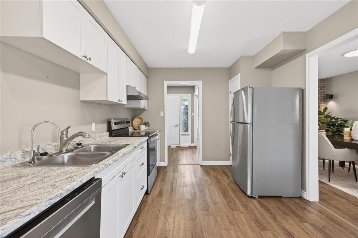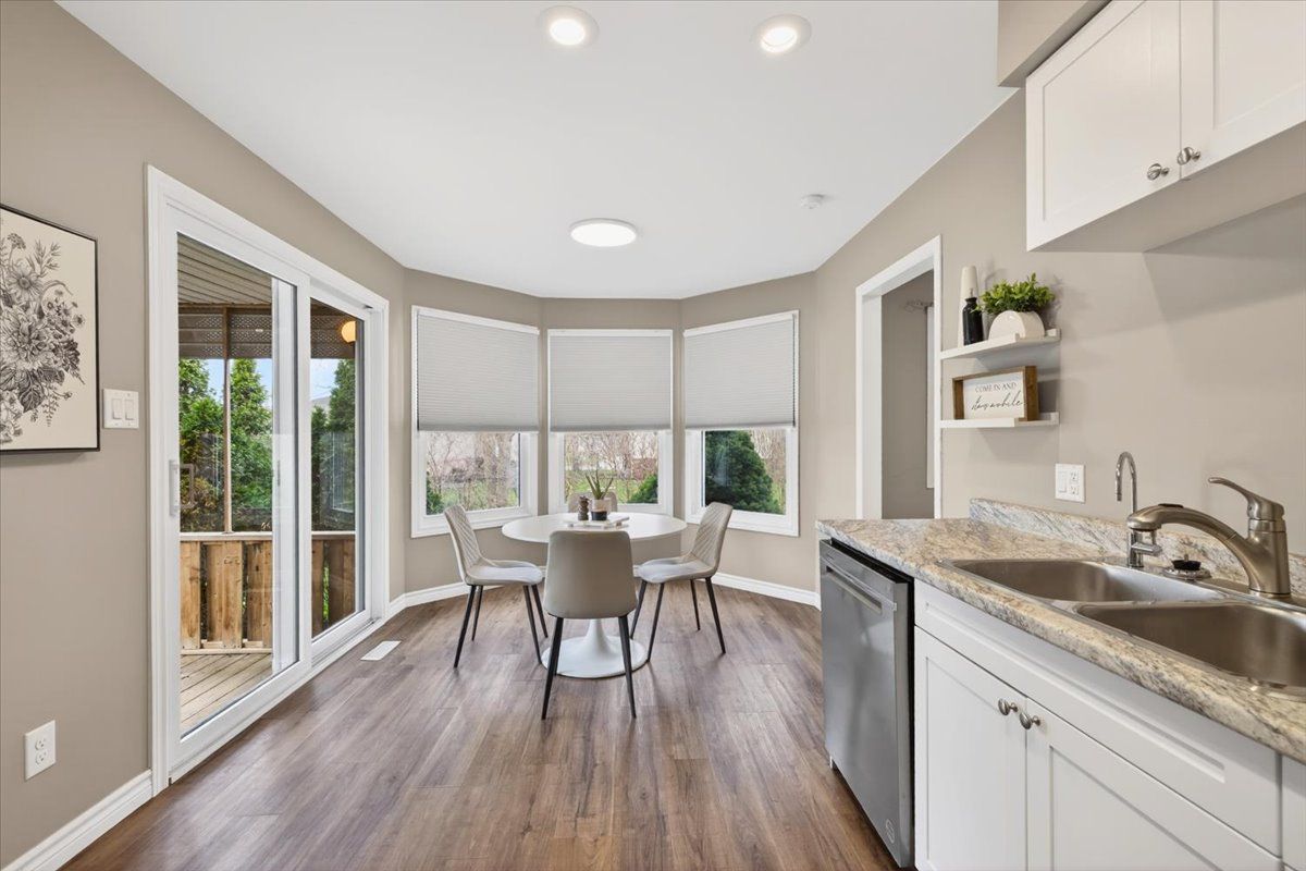 A well-maintained bungalow located on a quiet dead-end street in mount brydges. Set on a large, fully fenced lot, this 3 bedroom, 2. 5 bathroom home offers a peaceful on a large lots and includes an attached 2 car garage. The bright, freshly painted main floor features a spacious living room highlighted by a charming bow-style windows that fills the space with natural light. The living area flows seamlessly into a formal dining room, creating an ideal layout for everyday living and entertaining. The kitchen offers a generous footprint and includes a matching bow-style eating area with angled windows, along with a separate sliding glass patio door that leads to a covered deck and patio-perfect for enjoying the backyard in any season. There are three bedrooms on the main floor, including a large primary suite complete with a walk-in closet and private 3-piece ensuite. A convenient main floor laundry room provides direct access to the attached garage. The lower level includes a finished 2-piece bathroom. The rest of the lower level is unfinished and offers excellent potential to customize to specific needs. The new fence was installed in the backyard in 2024. Located just minutes from strathroy and a short drive to london, this home combines small-town charm with easy access to amenities, schools, and shopping and easy access to the highway 402 for convenient travel in either direction.