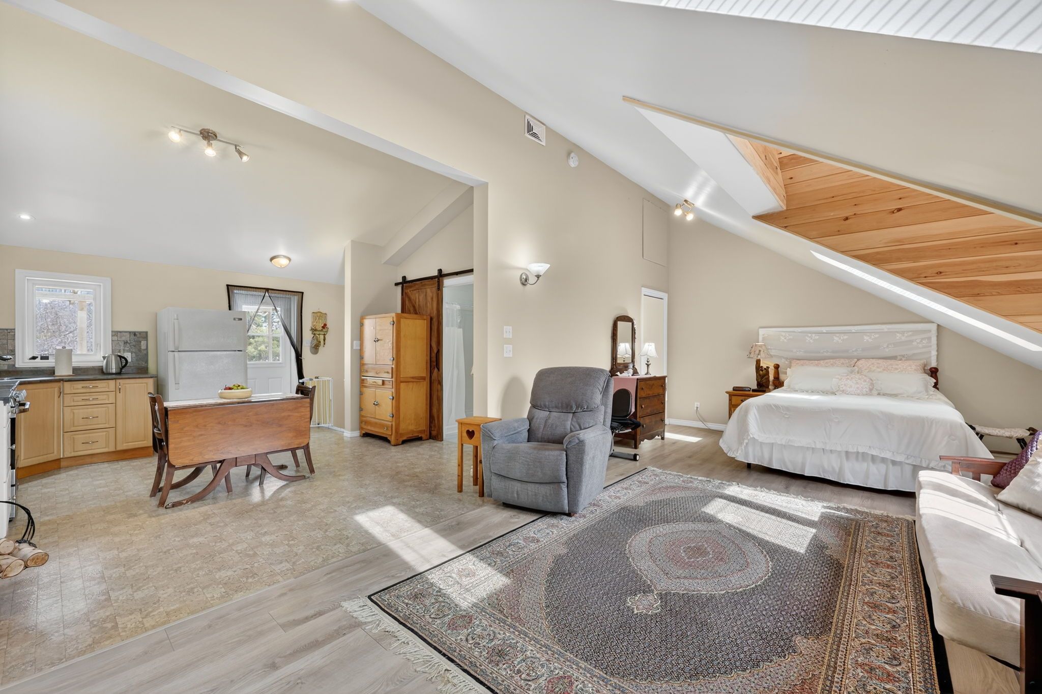 An amazing opportunity! Fantastic family home on a beautiful 4. 85 acre (per mpac) property with a pond in the charming hamlet of baldwin! Over 3100 sq ft, this sun-filled home features an open concept layout, an inviting family room, generously sized dining area with soaring ceilings, exposed beams & large windows overlooking the stunning nature views & mature trees. Spacious kitchen with tile backsplash, breakfast bar & walk-out to sunroom - a fantastic entertainment or additional living space! Also featuring an above grade separate studio suite with kitchen, living area/bedroom, propane fireplace, 3-piece bathroom, private balcony & separate entrance. Other features include updated furnace & cac & 2 car drive-through garage. Enjoy the peace & privacy of this gorgeous property, the feeling of small town living while only a short drive to all keswick amenities - truly a rare find!