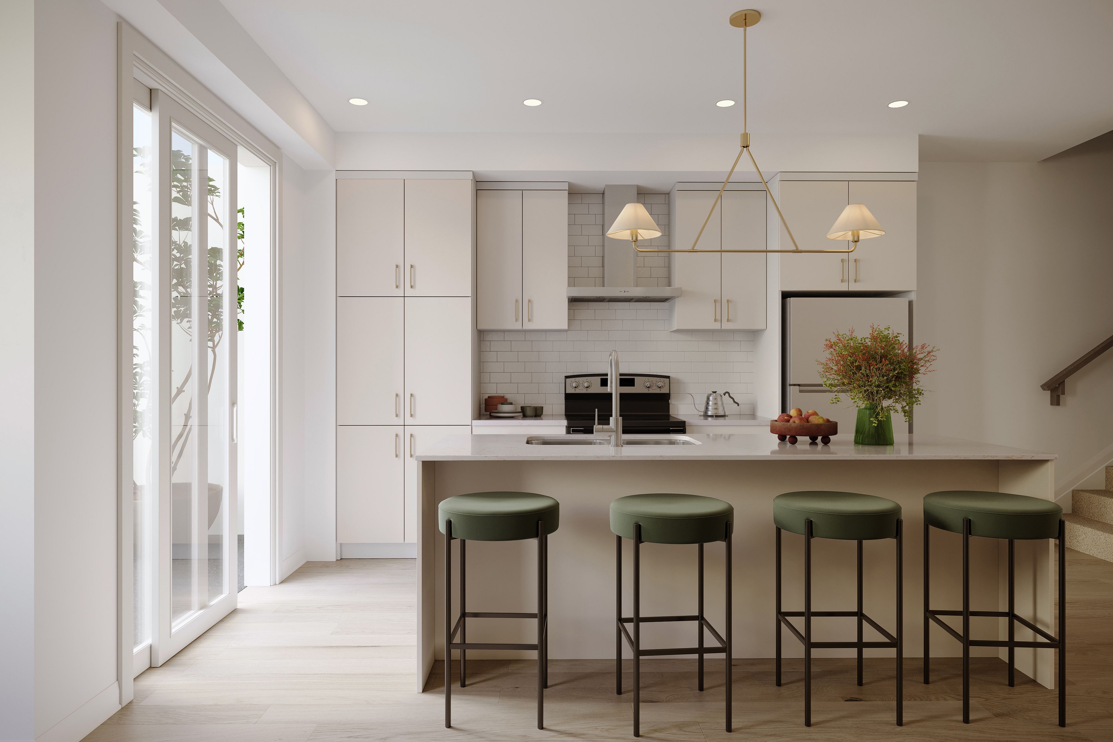 Welcome to the everett end e by glenview homes, offering 1,330 sq ft of modern, low-maintenance living. This beautifully designed end-unit features a bright open-concept layout with smooth ceilings throughout, upgraded laminate plank flooring on the main and ground levels, and large windows that fill the home with natural light. The contemporary kitchen is finished with quartz countertops and comes fully equipped with six appliances, seamlessly flowing into the spacious living and dining areas, perfect for both everyday living and entertaining. Thoughtful design and efficient use of space create a functional layout with well-sized bedrooms and comfortable living areas throughout. Additional highlights include two sets of pot lights and a $2,500 design studio bonus to personalize your finishes. Ideal for first-time buyers, investors, or downsizers looking for a stylish and turnkey new-build opportunity.