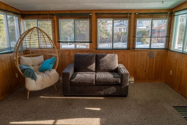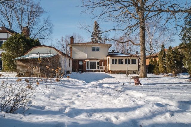 Spacious family home in good east end neighbourhood. Four levels of living space allow for diversity of use and private moments. The main floor offers an efficient kitchen separated by quartz topped counter from a dining area with patio doors to insulated 3-season room. Large living room completes this level. Steps down lead to the ground floor family room with bay window, gas fireplace and door to the backyard. On this floor is a laundry room/2pc bath plus a small bedroom/den with murphy bed. Exterior doorway to driveway parking. Access to the basement stairs is from the family room and leads to a recently refurbished rec room. The second floor has three bedrooms and a recent bathroom upgrade with walk in shower and ample storage. A single detached garage completes the package in a neighbourhood close to east end amenities.