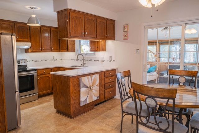 • Efficient kitchen with quartz countertop and access to a 3-season room.