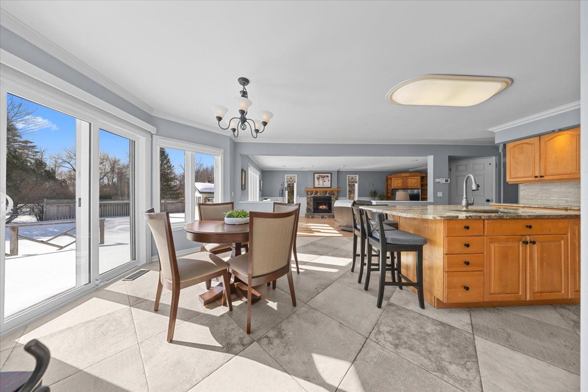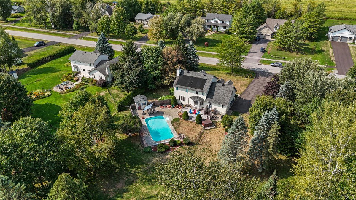 Set on just over one private acre on one of osgoode's most sought-after streets, this beautiful 3 bedroom, 3 bathroom home offers the space, privacy and lifestyle you've been waiting for. Surrounded by mature trees and open sky, it strikes the perfect balance of comfort and rural charm. The main level features a bright, inviting layout with hardwood flooring and large windows that fill the home with natural light. The spacious living room is anchored by a stunning stone fireplace, creating a warm and welcoming focal point. The kitchen offers ample cabinetry, stainless steel appliances and a generous island, flowing seamlessly into the eating area with patio doors leading to the backyard. A separate dining room provides the ideal setting for family dinners and special occasions. Upstairs, you'll find a generous primary bedroom with plenty of closet space and a beautifully updated ensuite. A spacious family room is also located on the second level above the garage, offering a versatile space perfect for movie nights, a playroom or a quiet retreat. Two additional bedrooms and a full bathroom complete the upper level, offering comfortable space for family or guests. Outside, the lifestyle truly shines. Enjoy summer days on the deck and patio, relax by the in-ground pool, and take in the privacy of your expansive lot dotted with mature trees. There is plenty of room to entertain, garden or simply unwind in your own backyard retreat. A rare opportunity to own a well-maintained home in a prime osgoode location, offering space, privacy and easy access to village amenities. This is country living at its best.