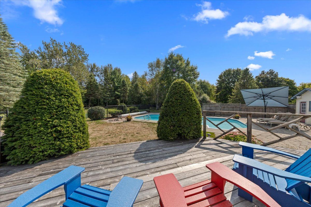 • In-ground pool and deck for summer relaxation and entertaining.