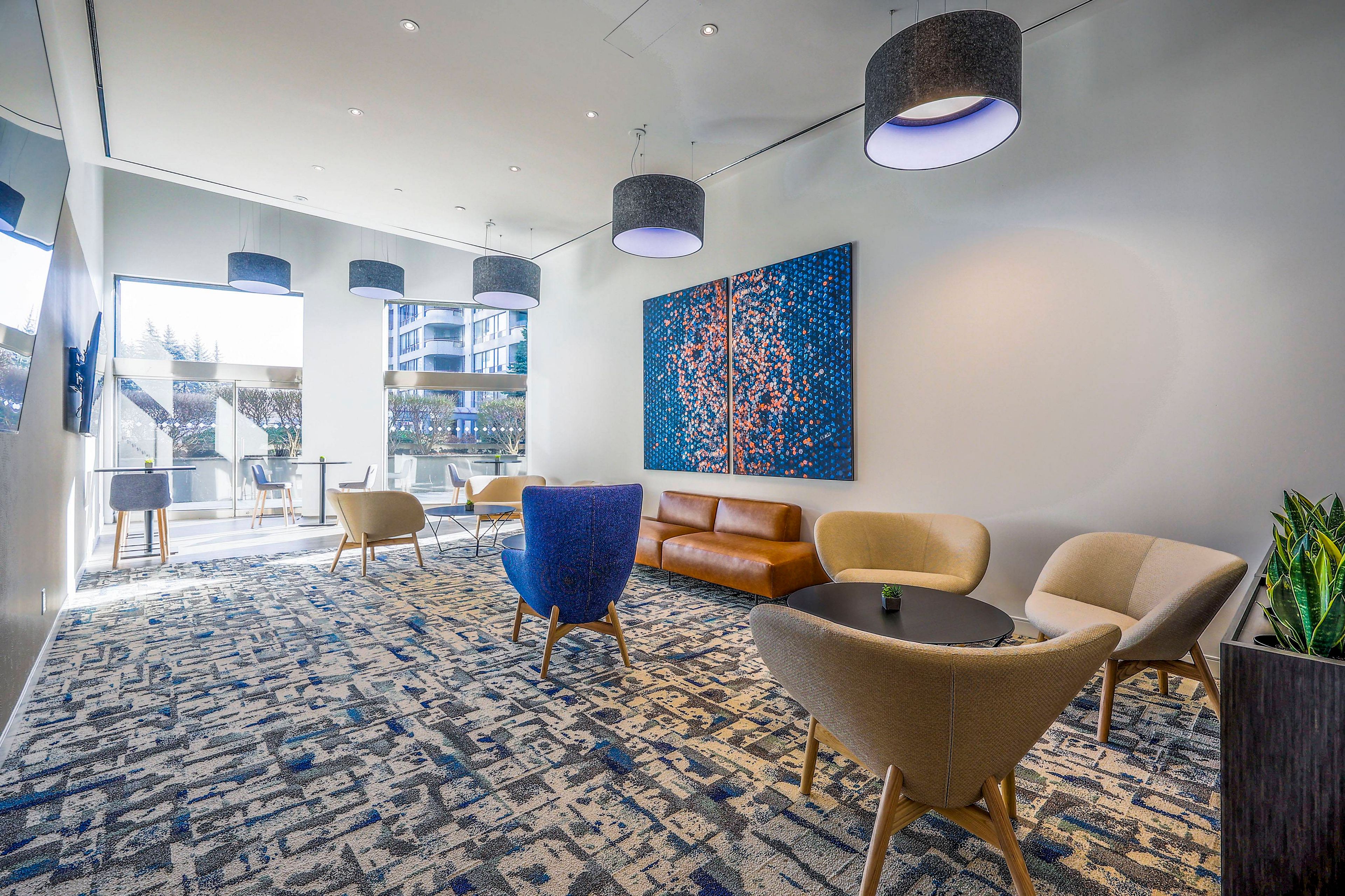 • Onsite amenities include fitness center, lounge, and outdoor patio.