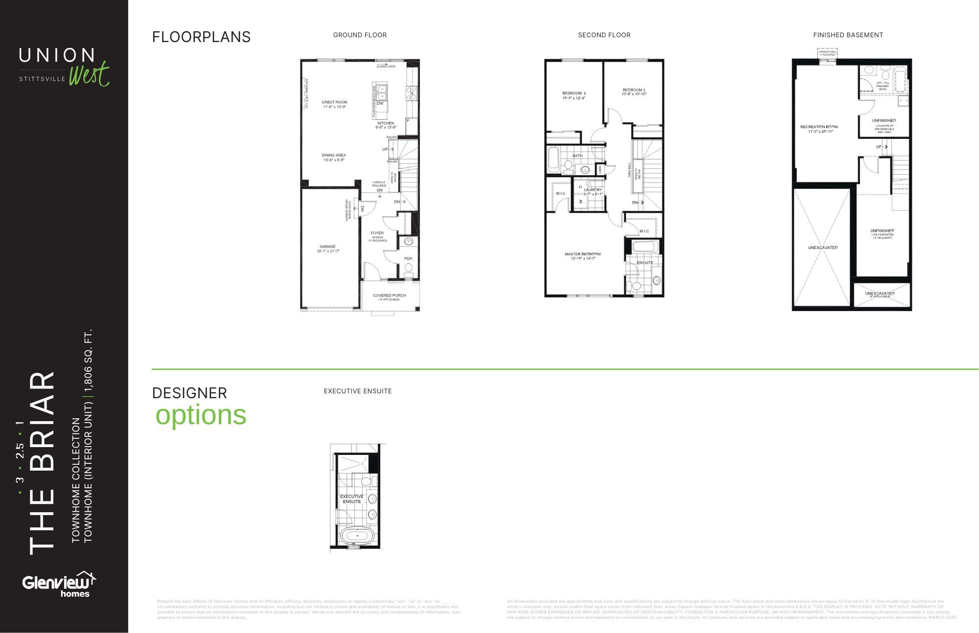 Welcome to union west - a move in the right direction! Discover the briar (e) model by glenview homes, offering 1,806 sq ft of thoughtfully designed living space, including a 232 sq ft finished basement. This stunning townhome perfectly blends modern style with everyday functionality. Step into the open-concept main floor, elevated by 9-foot smooth ceilings and 7-1/2" wood composite core flooring, flowing seamlessly into the upgraded kitchen. The kitchen boasts quartz countertops in both the kitchen and bathrooms, an enhanced kitchen design featuring pots and pan drawers, 39-inch uppers, and soft-close cabinets. Additional conveniences include a microwave/hood fan combo option, a water line for the refrigerator, and a pot light package illuminating the kitchen and great room. Upstairs, retreat to the luxurious primary bedroom with dual walk-in closets and a bright ensuite complete with a deluxe glass walk-in shower. Two large secondary bedrooms, a spacious full bathroom, and the convenience of second-floor laundry complete the second level. The finished basement offers a versatile rec room featuring an oversized window that brings in abundant natural light, creating a perfect space for family fun, entertaining, or a quiet retreat. Here's the extra something you'll love: this home includes central a/c for comfort year-round. At union west, you'll thrive in a vibrant, family-friendly community where local shops, restaurants, schools, and recreation centres are seamlessly intertwined with parks, trails, and green spaces. With easy access to transit and just minutes from ottawa's world-class entertainment venues, this is more than just a home - it's the perfect place to plant your roots.