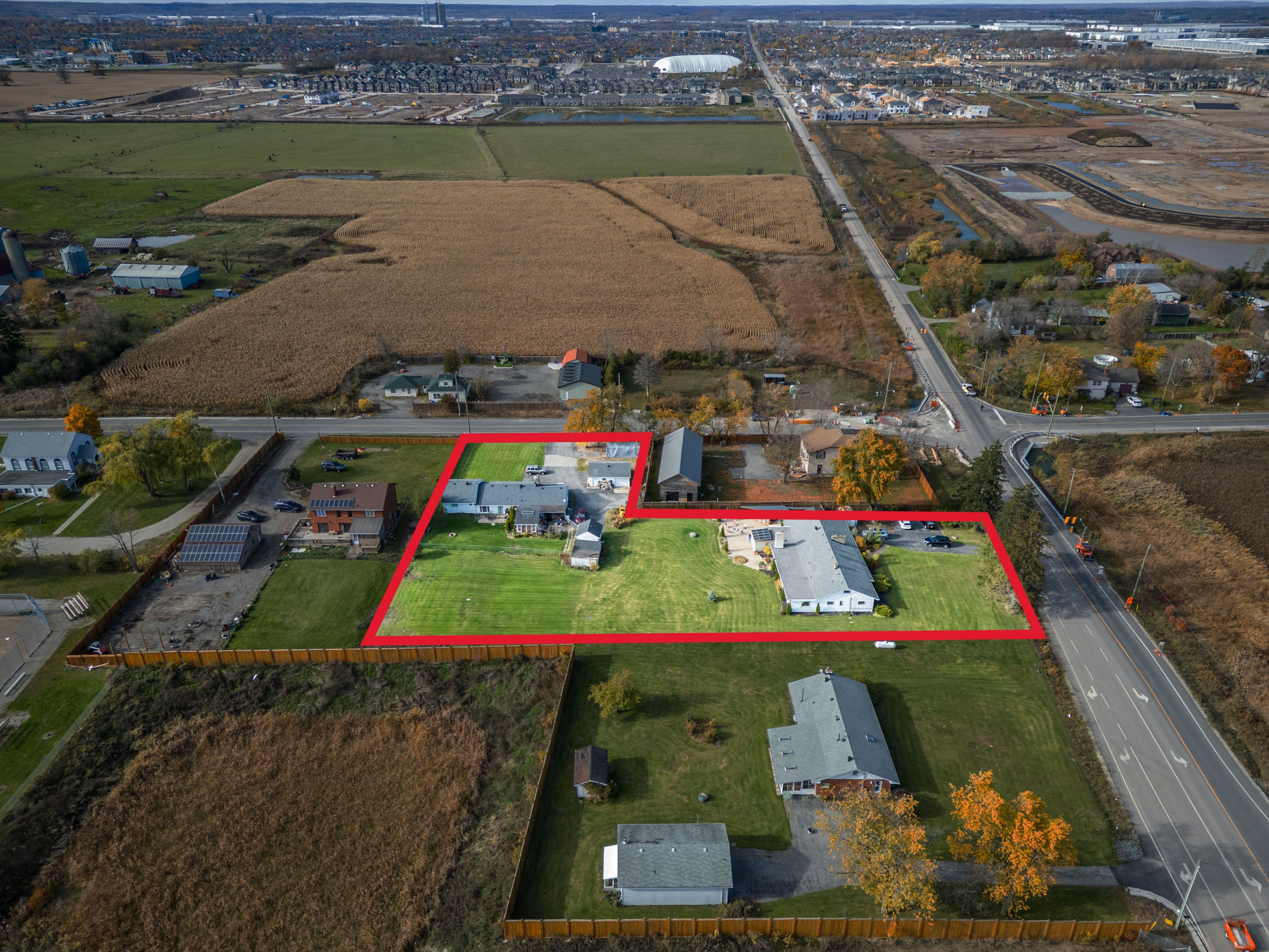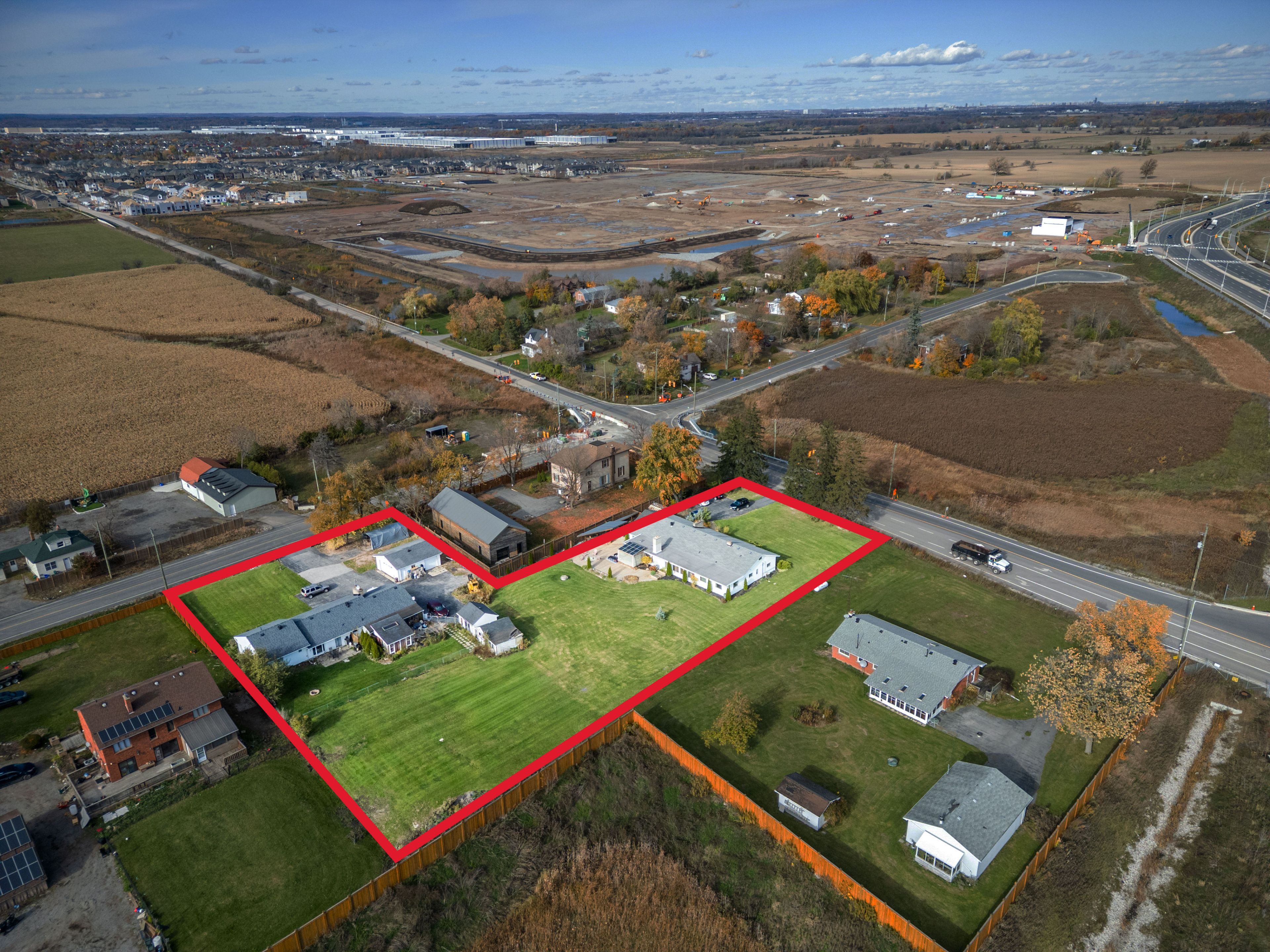 Presenting this rare opportunity to own at the northwest corner of fourth line and britannia road in omagh, milton. Combining two parcels totalling 1. 4+ acres in one of ontario's fastest-growing communities. Located at a key future high-density corner on the six-lane britannia road bypass, this site offers flexible options for mixed-use development with up to 8-storey buildings or 4-storey live/work units with no density limits, giving developers the freedom to create a standout project. The property is fully prepared for development, with phase 1 environmental clearance, phase 1 & 2 archaeological reports, survey and topographical survey, tree inventory, and pre-consultation with the town of milton completed. Water and sewer allocation has been approved by the town council, and the region allocation deposit has been submitted to secure preferred servicing. Just minutes from parks, schools, retail, dining, and recreational facilities, with a new university campus planned nearby, the site offers excellent connectivity to highways 401 and 407, milton go station, and local transit. Surrounding neighbourhoods are already established, with new construction south of the property scheduled to begin in 2026, creating immediate context for future development. This corner assembly is poised for continued growth, boasting immediate development potential while offering long-term value and enduring appeal for visionary investors and developers.