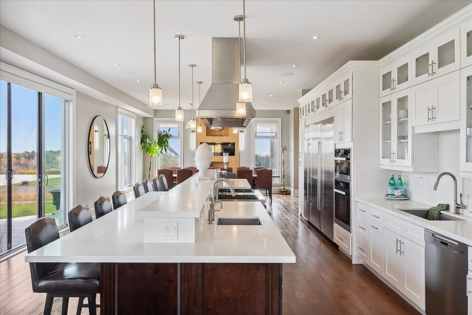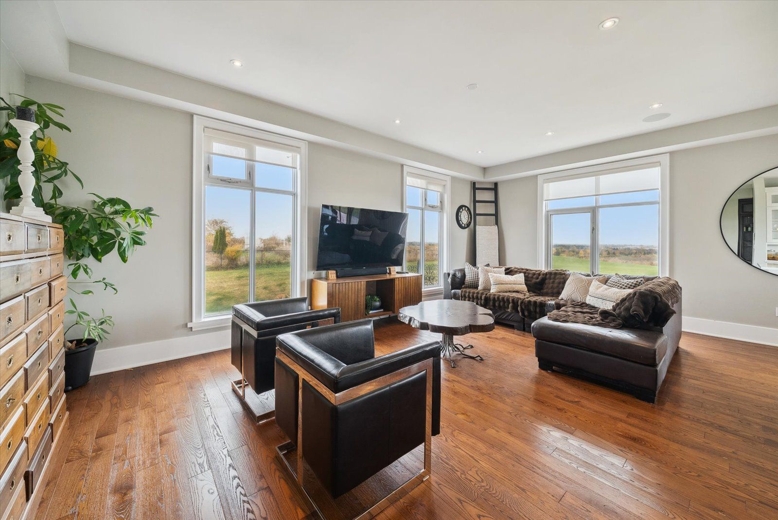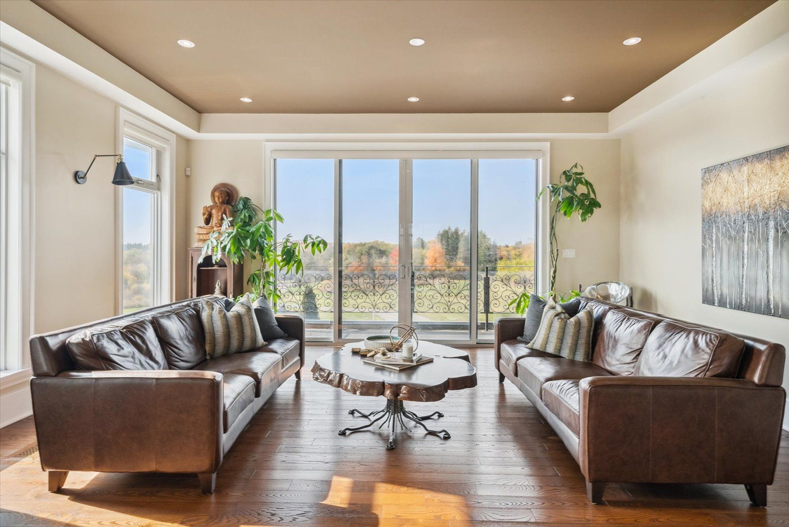 Power of sale (mortgage foreclosure) opportunity with financing available. The vendor is willing to provide a first mortgage loan of up to $2,000,000 at a competitive interest rate, offering a rare and flexible financing opportunity for qualified buyers. Built only 10 years ago, this custom 7 bedroom, 8 bathroom estate is privately set behind gates on a serene premium 6+ acre lot. Designed for tranquility, security, and privacy, the fully fenced property features a scenic natural water feature and expansive sports court, creating a resort-style atmosphere. The heart of the home is an impressive open-concept kitchen anchored by a stunning 25-foot quartz centre island with abundant seating, complete with a wolf gas stove, dual sub-zero refrigerators, two miele built-in ovens, under-cabinet lighting, and premium finishes throughout. The kitchen flows seamlessly into the family and dining areas with walkout access to the backyard patio overlooking the scenic grounds. A separate formal living room opens onto a balcony spanning the front of the home. The main floor also offers a private in-law suite with coffee bar, two bedrooms, 3-piece bath, and a dedicated office. Upstairs features five generously sized bedrooms, each with its own ensuite, plus a convenient second-floor laundry room. The primary suite includes a walk-in closet with custom shelving and a spa-inspired 5-piece ensuite with steam shower, fireplace, and juliette balcony. The fully finished basement features radiant heated floors. Additional highlights include geothermal heating, gated and fenced grounds, a 5-car garage, and custom motorized blinds with individual remotes. A rare opportunity to own a private estate with flexible vendor financing in place.