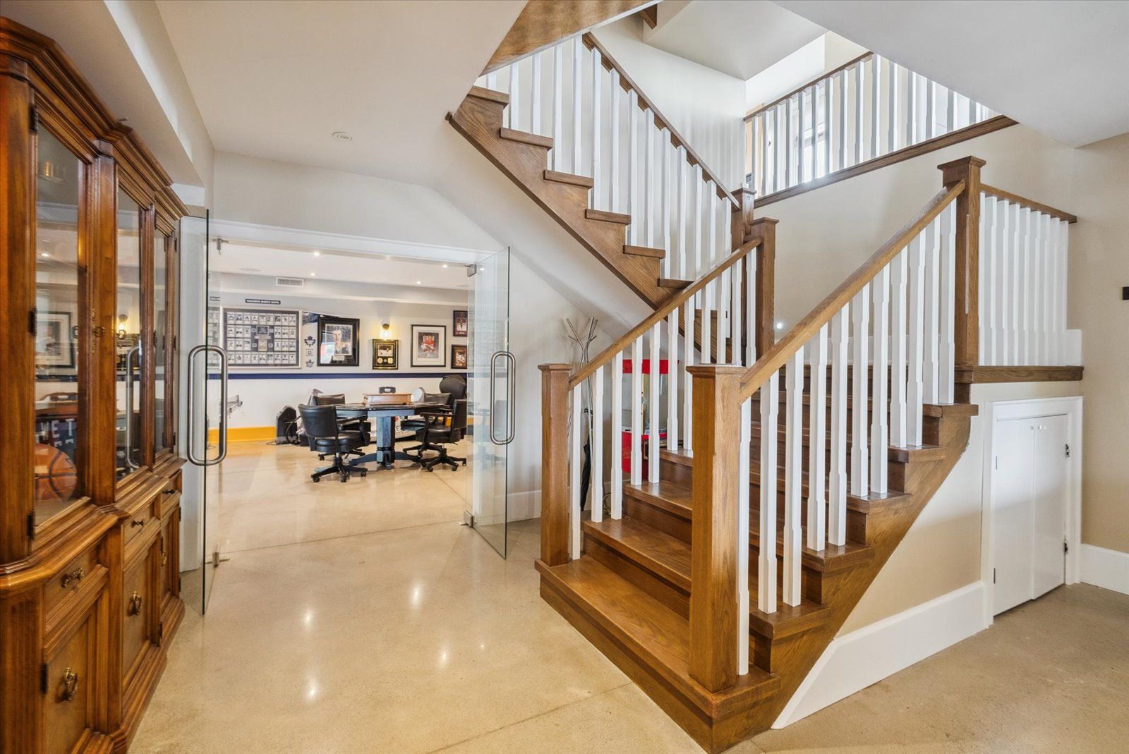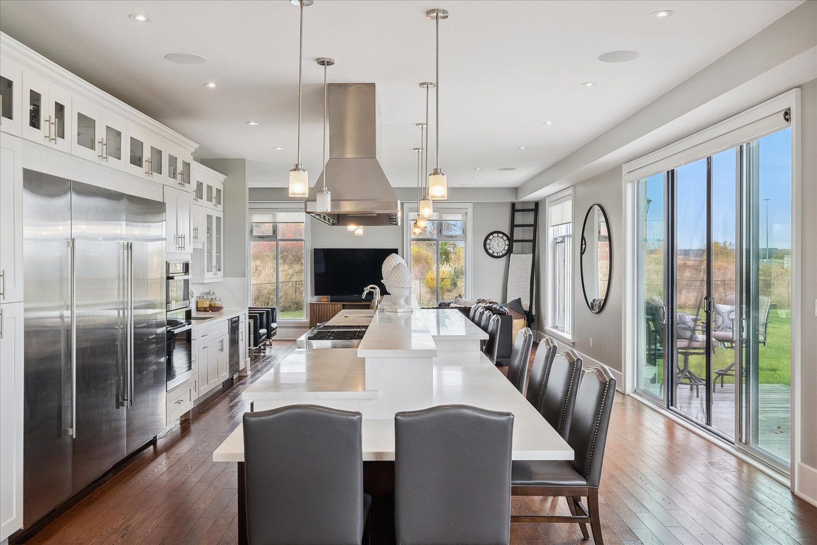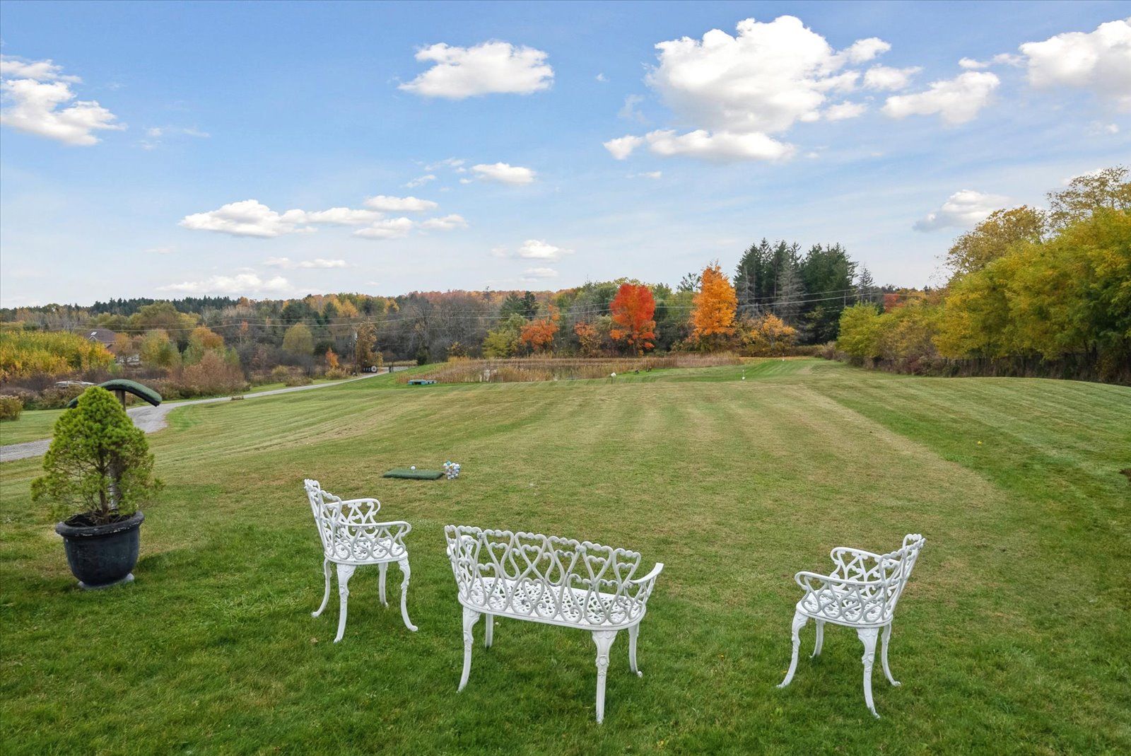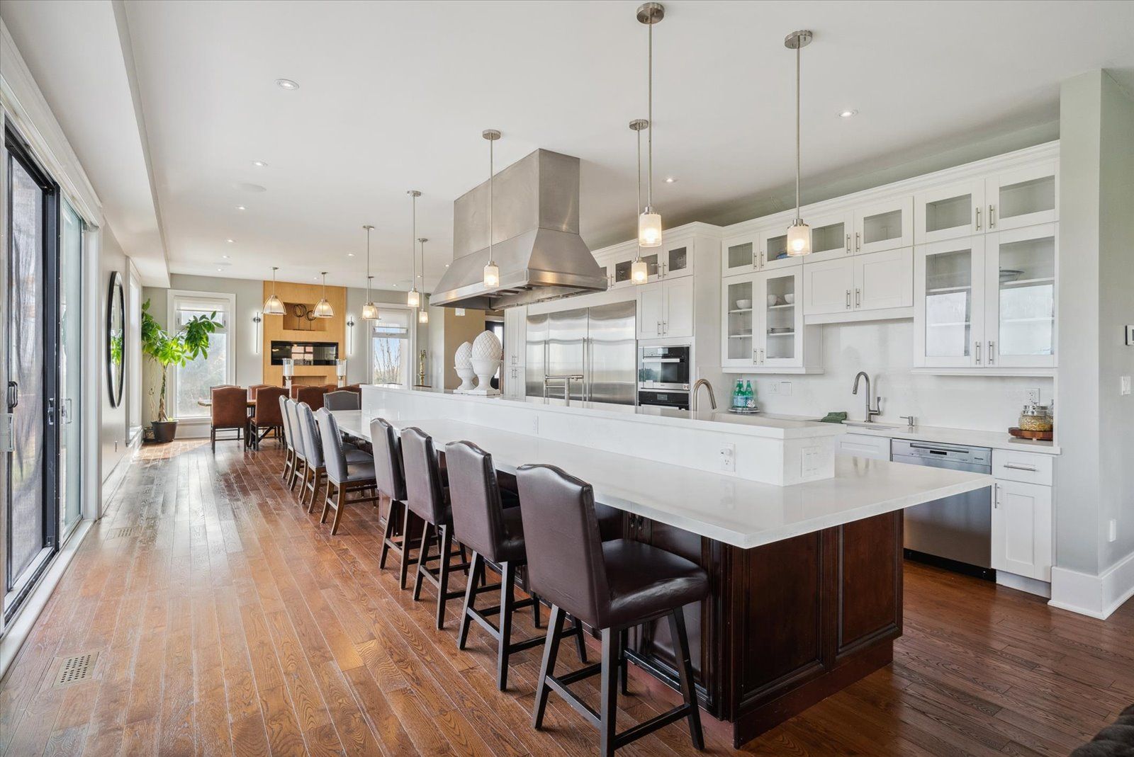 Power of sale (mortgage foreclosure) opportunity with financing available. The vendor is willing to provide a first mortgage loan of up to $2,000,000 at a competitive interest rate, offering a rare and flexible financing opportunity for qualified buyers. Built only 10 years ago, this custom 7 bedroom, 8 bathroom estate is privately set behind gates on a serene premium 6+ acre lot. Designed for tranquility, security, and privacy, the fully fenced property features a scenic natural water feature and expansive sports court, creating a resort-style atmosphere. The heart of the home is an impressive open-concept kitchen anchored by a stunning 25-foot quartz centre island with abundant seating, complete with a wolf gas stove, dual sub-zero refrigerators, two miele built-in ovens, under-cabinet lighting, and premium finishes throughout. The kitchen flows seamlessly into the family and dining areas with walkout access to the backyard patio overlooking the scenic grounds. A separate formal living room opens onto a balcony spanning the front of the home. The main floor also offers a private in-law suite with coffee bar, two bedrooms, 3-piece bath, and a dedicated office. Upstairs features five generously sized bedrooms, each with its own ensuite, plus a convenient second-floor laundry room. The primary suite includes a walk-in closet with custom shelving and a spa-inspired 5-piece ensuite with steam shower, fireplace, and juliette balcony. The fully finished basement features radiant heated floors. Additional highlights include geothermal heating, gated and fenced grounds, a 5-car garage, and custom motorized blinds with individual remotes. A rare opportunity to own a private estate with flexible vendor financing in place.