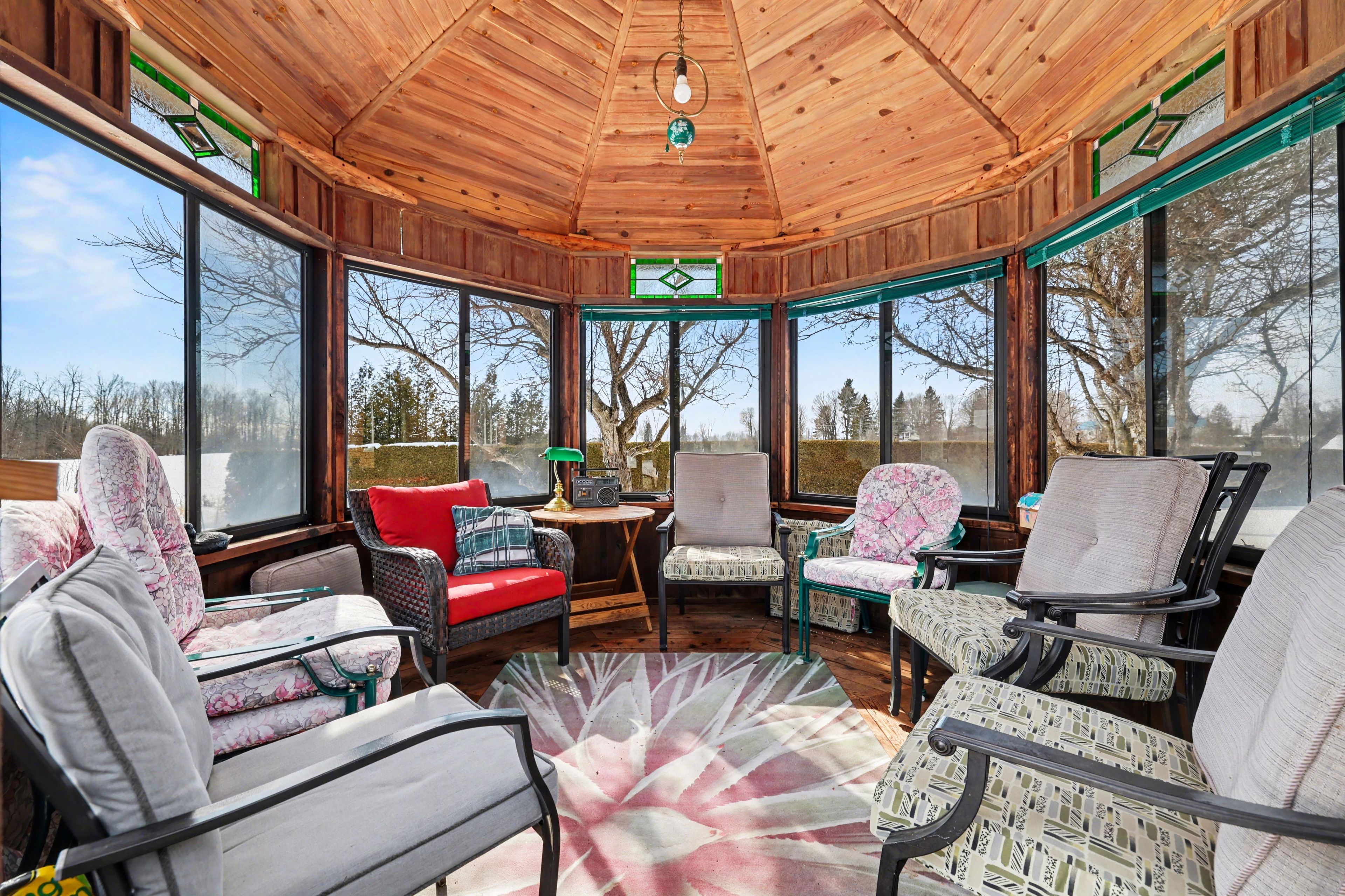 • Private backyard with a large deck and enclosed gazebo for relaxation.