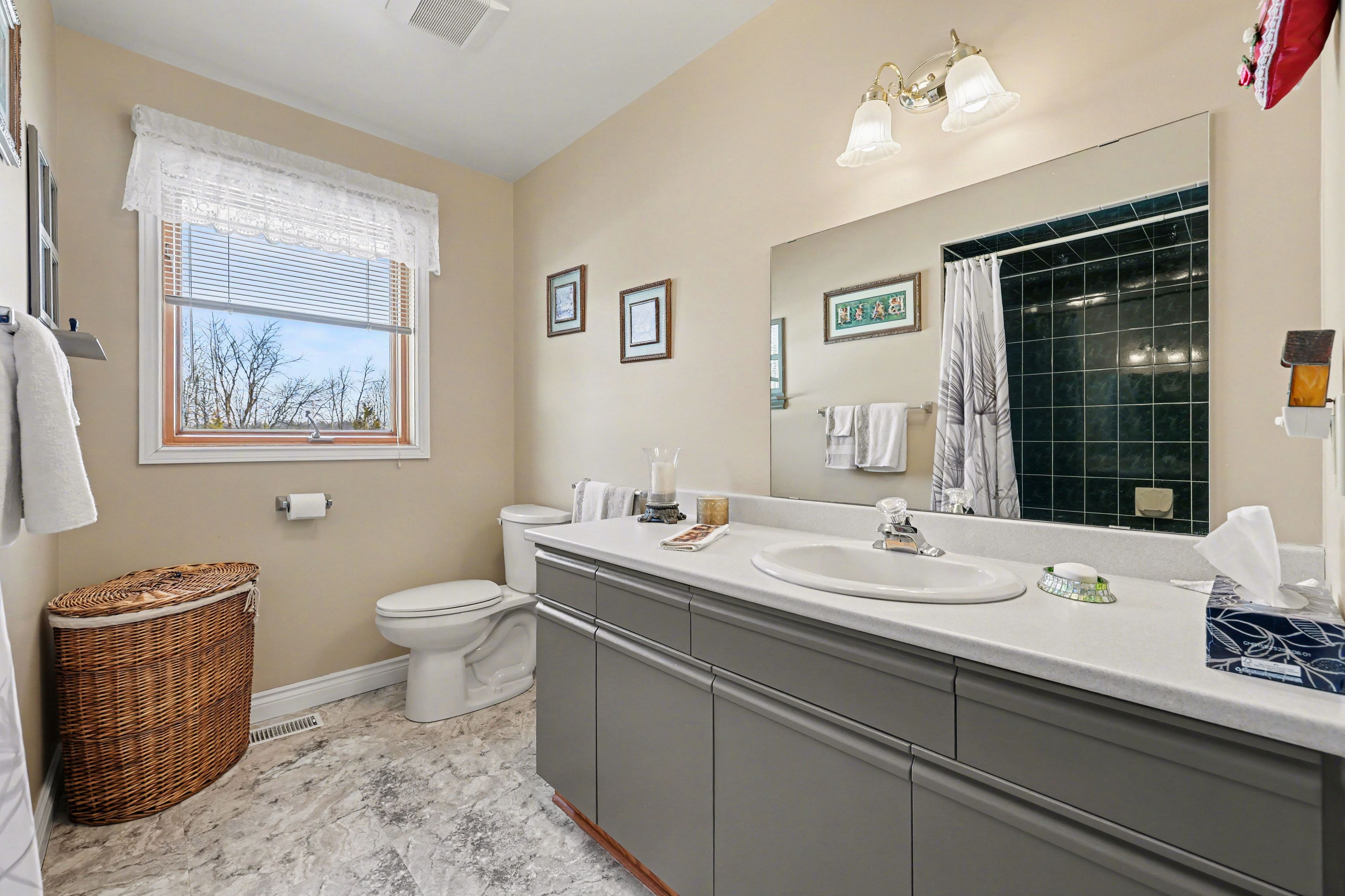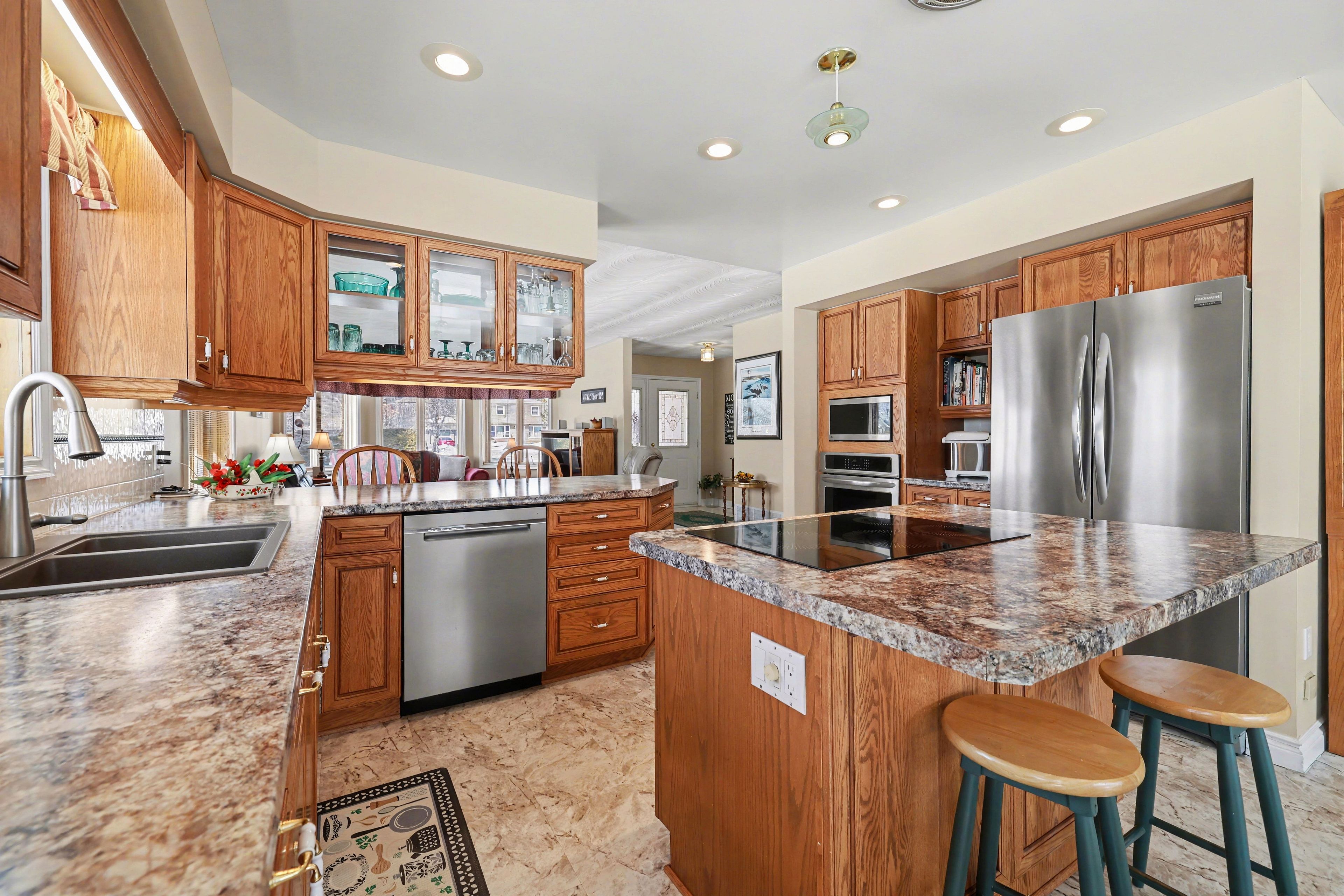• Generous kitchen with ample cabinetry and stainless steel appliances.