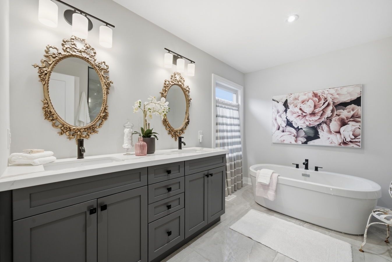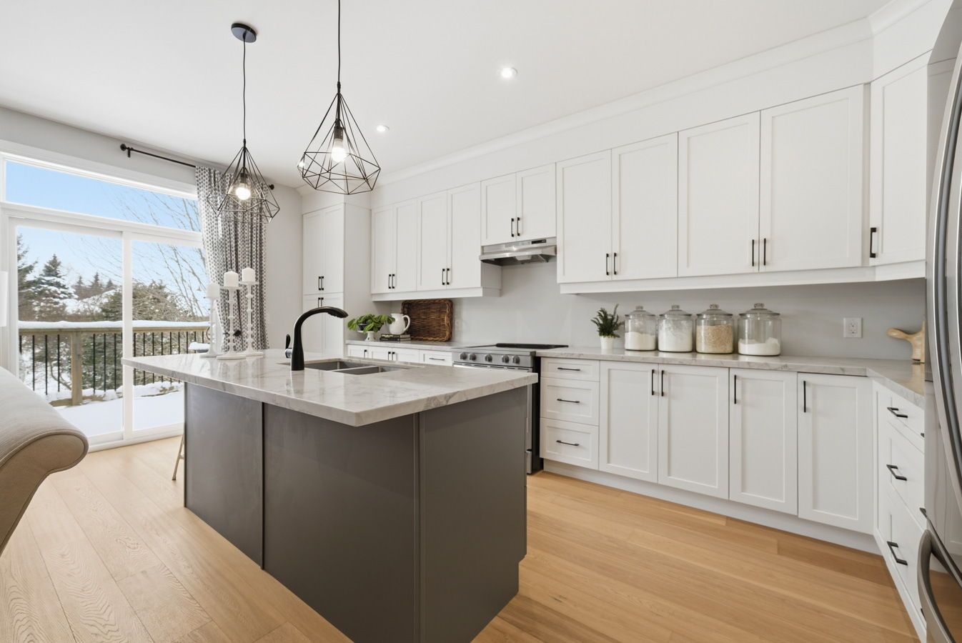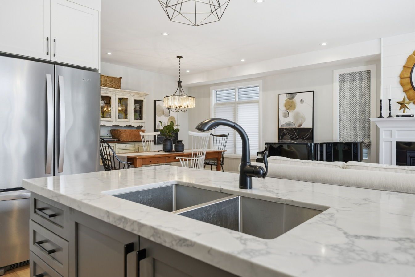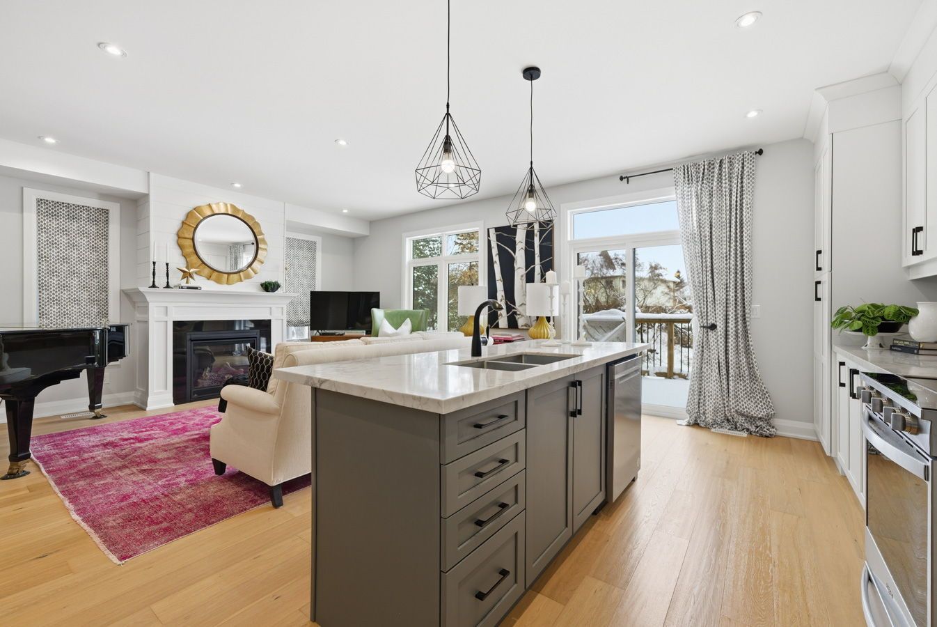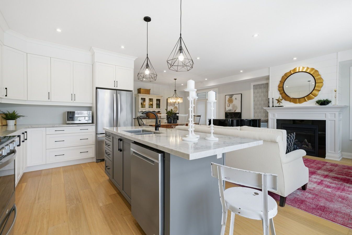 • Open concept design with 9ft ceilings and engineered hardwood floors.