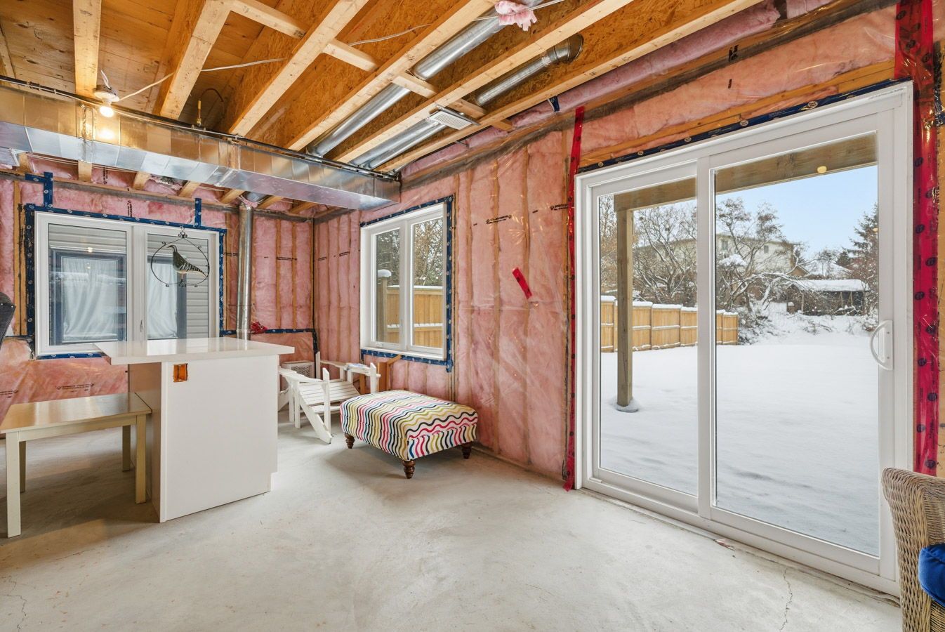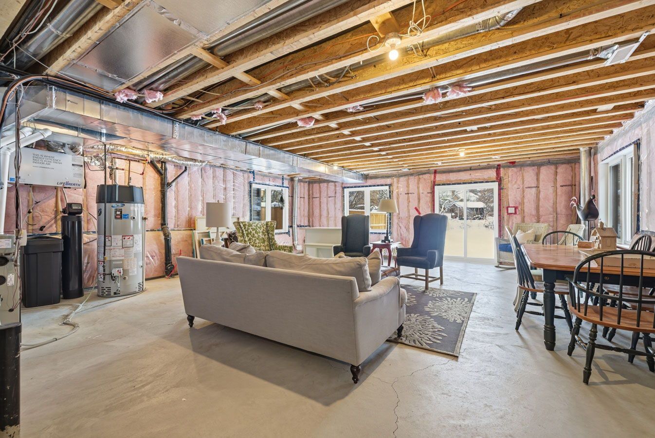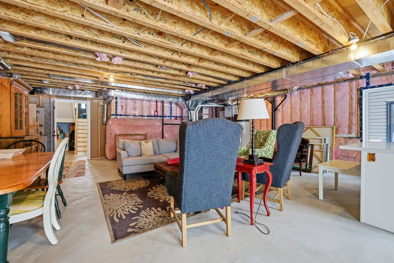 • Lower level has potential for customization and features rough-in plumbing for a washroom.