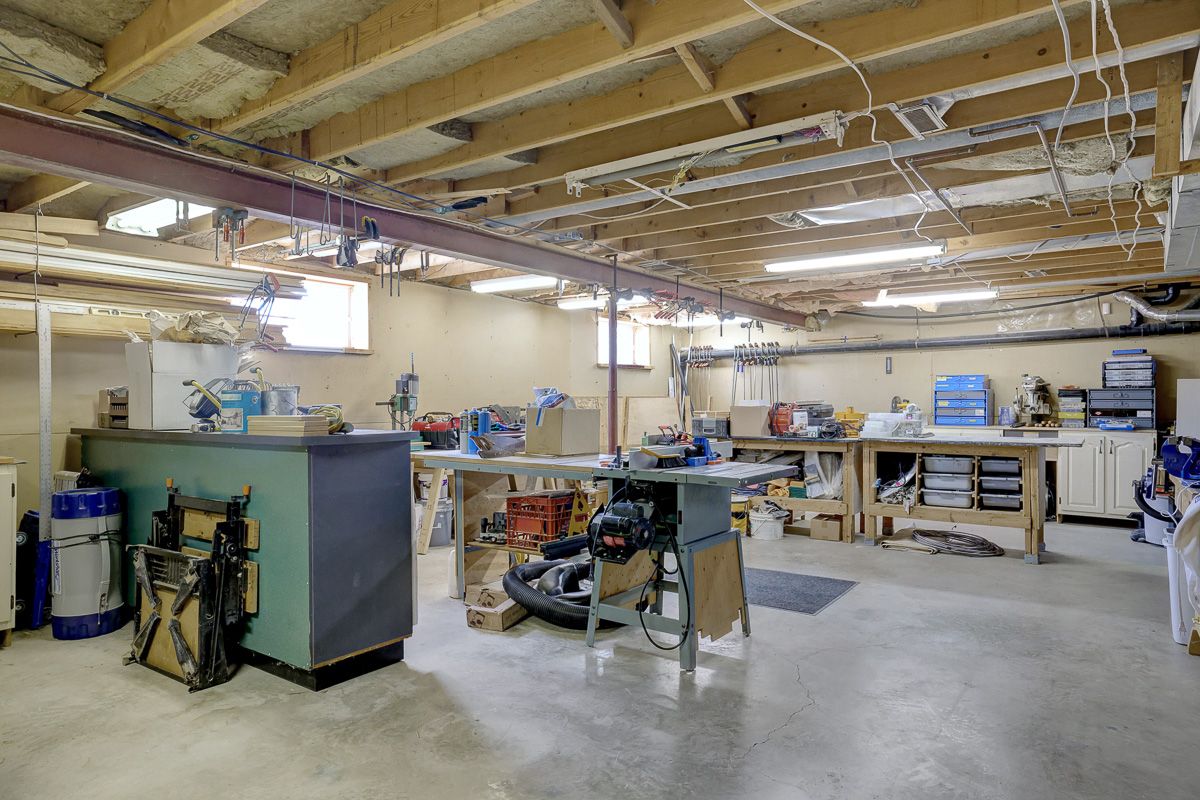 • Fully finished basement includes a large workshop for hobbies or storage.