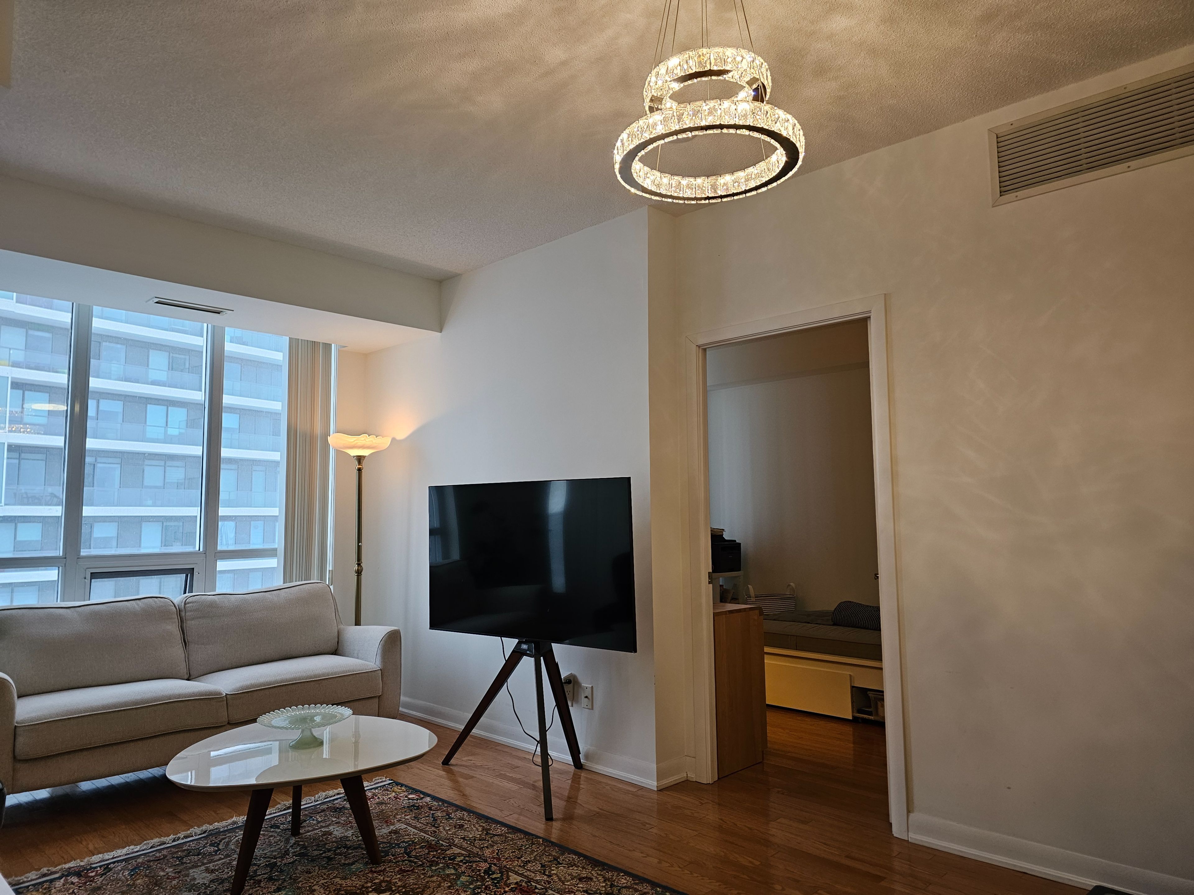 • Bright, spacious living area with floor-to-ceiling windows.