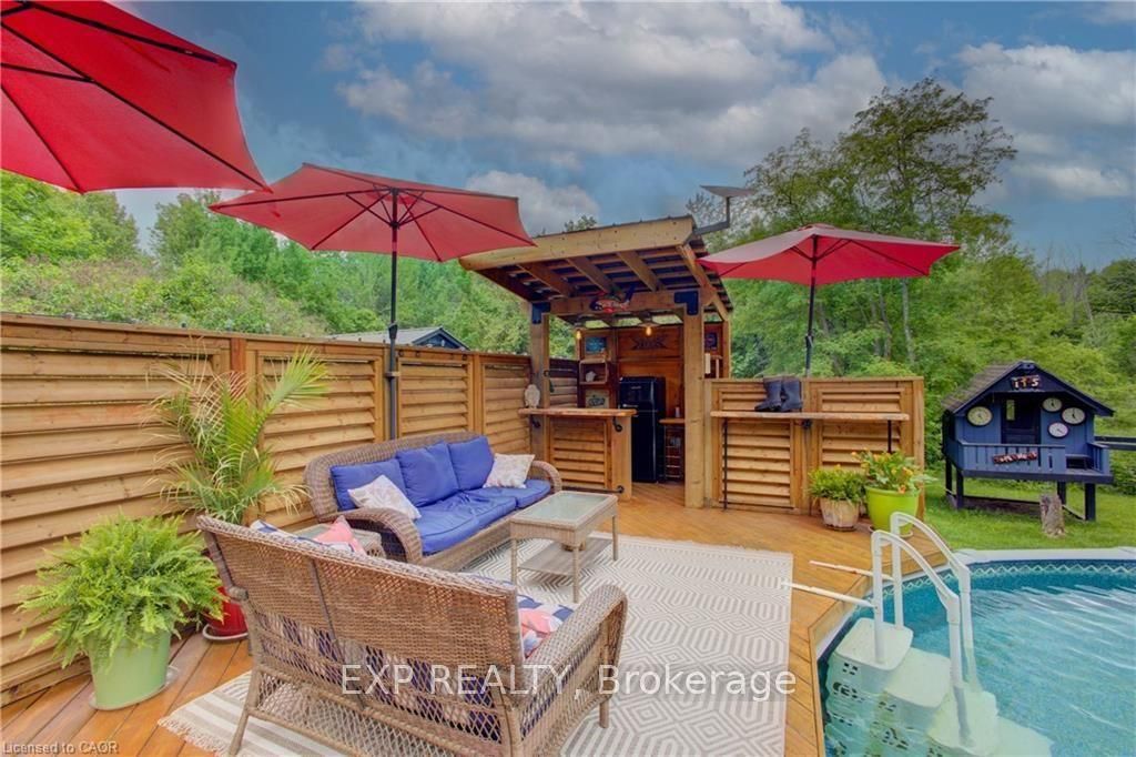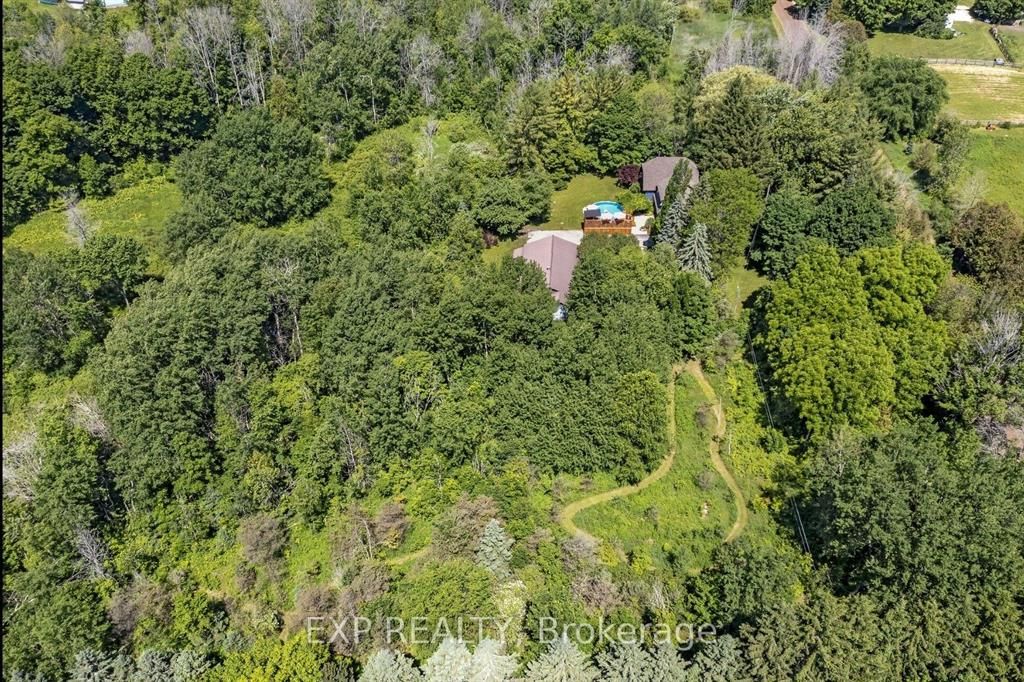 Discover unparalleled privacy on this remarkable, stress melting, 8 acre retreat, where nature and lifestyle blend seamlessly in your private escape a place the owners describe as their very own resort. With no neighbors in sight, you'll enjoy the tranquility and seclusion of this amazing oasis creating a feeling of being worlds away yet close enough for everyday convenience. This property offers an exceptional living experience, surrounded by walking trails perfect for year round adventures, close to snowmobile trails and many off road adventure opportunities. The options for this property are only limited by your imagination, from potential hobby farm, atv trails, housing an existing business, start your own or just enjoy the beauty of nature. The centerpiece of this property is the stunning four-bedroom, three bathroom (2+1) one of a kind custom side split home. A striking spiral staircase takes center stage, adding architectural charm. The natural light floods every corner, creating a warm and inviting ambiance. While the top floor balcony invites you to savor your morning coffee amidst trees and picturesque views. The expansive primary suite offers abundant storage and space with endless potential to create your own spa like ensuite. Entertain effortlessly in the spacious living areas or take the gathering outdoors to the above ground heated pool deck and bar. Car enthusiasts and hobbyists will marvel at the shop with a double car garage in addition to the 400 sqft workshop and similar size stable area that can be used as additional storage or to keep animals. This is more than a home, its a private sanctuary where you can immerse yourself in nature and create unforgettable memories. Whether you're exploring the trails, hosting friends and family, or simply unwinding in your own oasis, 5794 tenth line is truly unlike any other.