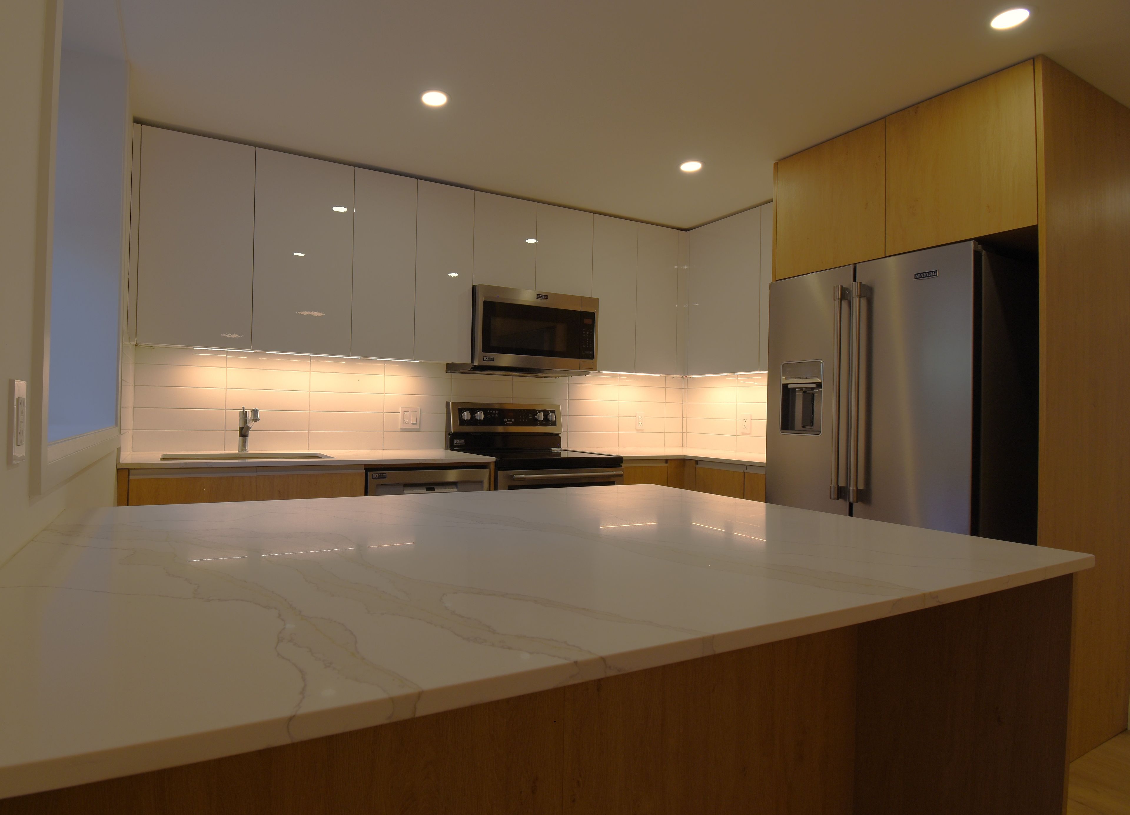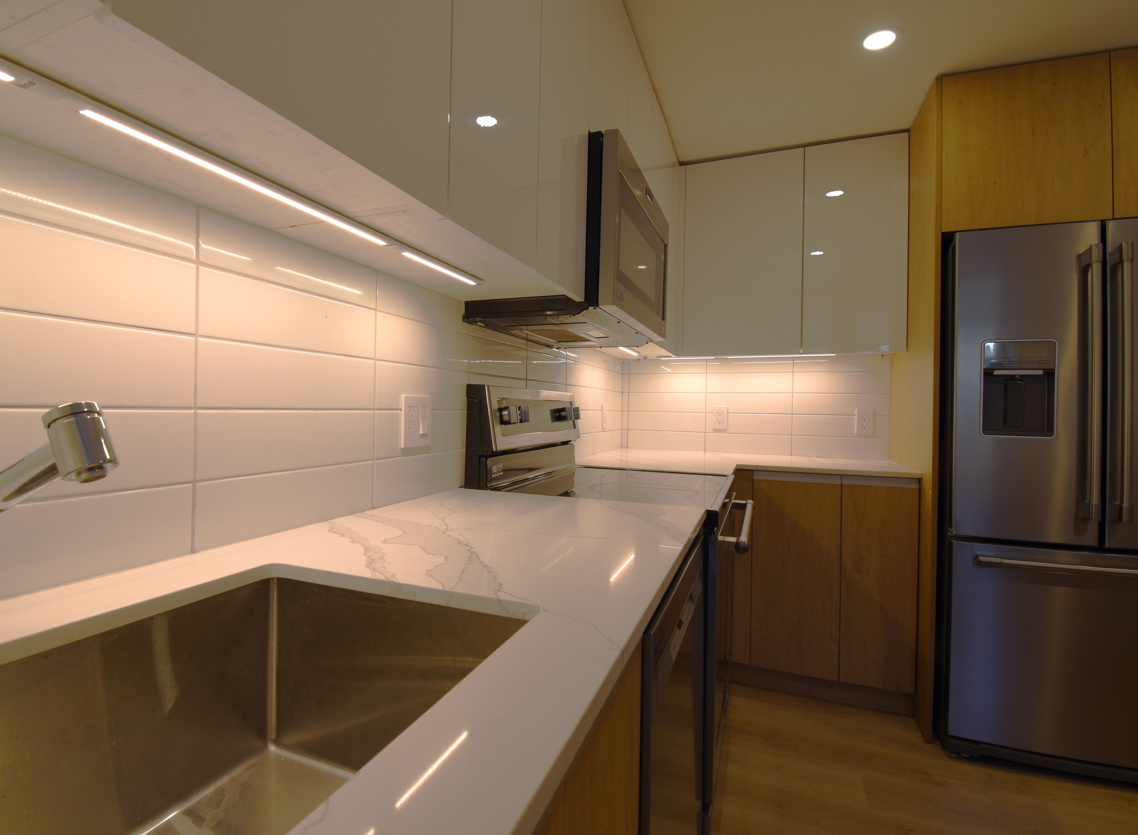• High-end finishes like stainless steel appliances and quartz countertops.