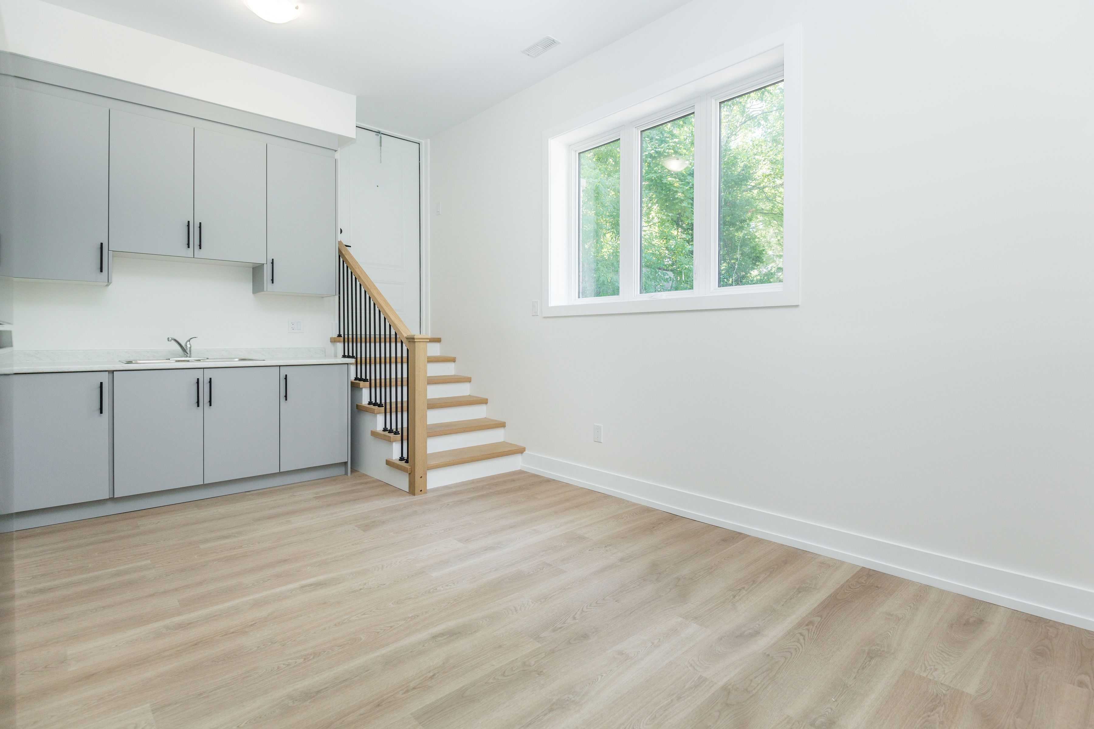 • Brand new lower-level unit in a soundproofed triplex, never lived in.