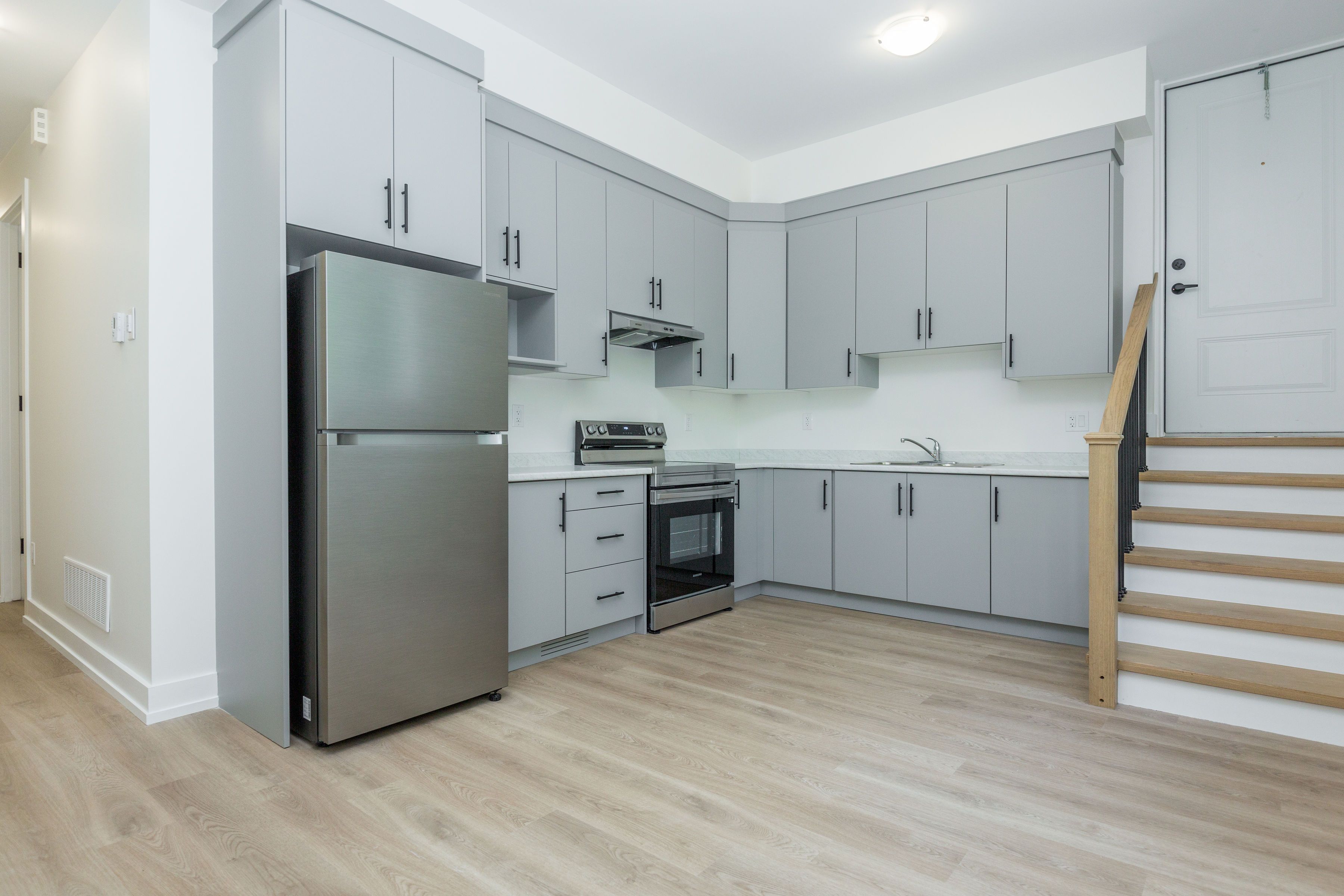Brand new and never lived in, this lower-level 2-bedroom, 1-bath unit in a newly built triplex, soundproofed - is bright, open, and ground level. Includes one parking spot. The open-concept layout features high ceilings, stainless steel appliances including fridge, stove, and overhead exhaust fan, plus a stackable washer and dryer. With no carpet, a lifebreath hrv system, individually controlled heating and ac, and soundproofed, energy-efficient construction, this home is comfortable and modern. Tenants are responsible for 20% of utilities, + hot water tank rental ($23), and snow removal for their own path. The unit comes with one parking space and is strictly non-smoking. Lease requirements include first and last month's rent, credit check, proof of income, recent bank statements, noa, references, and a completed rental application. Vacant and available immediately. Note, this is a mere posting and prior to any showings, applicants must be pre-approved by rental company