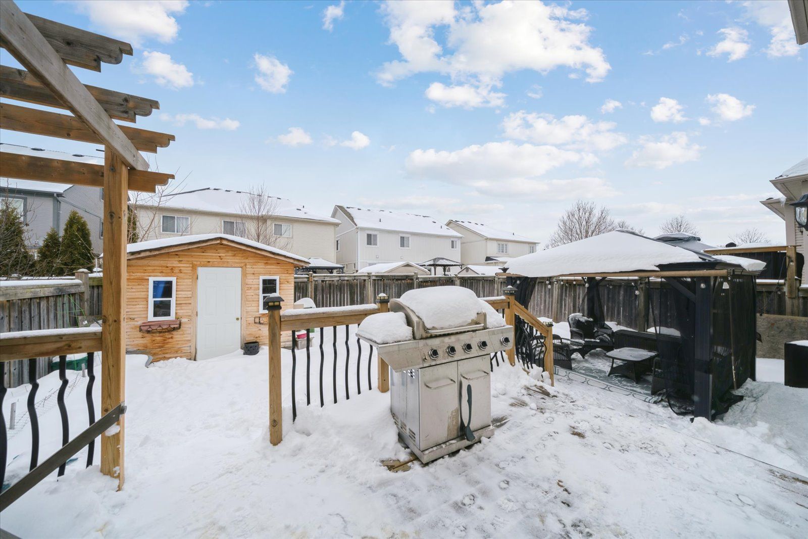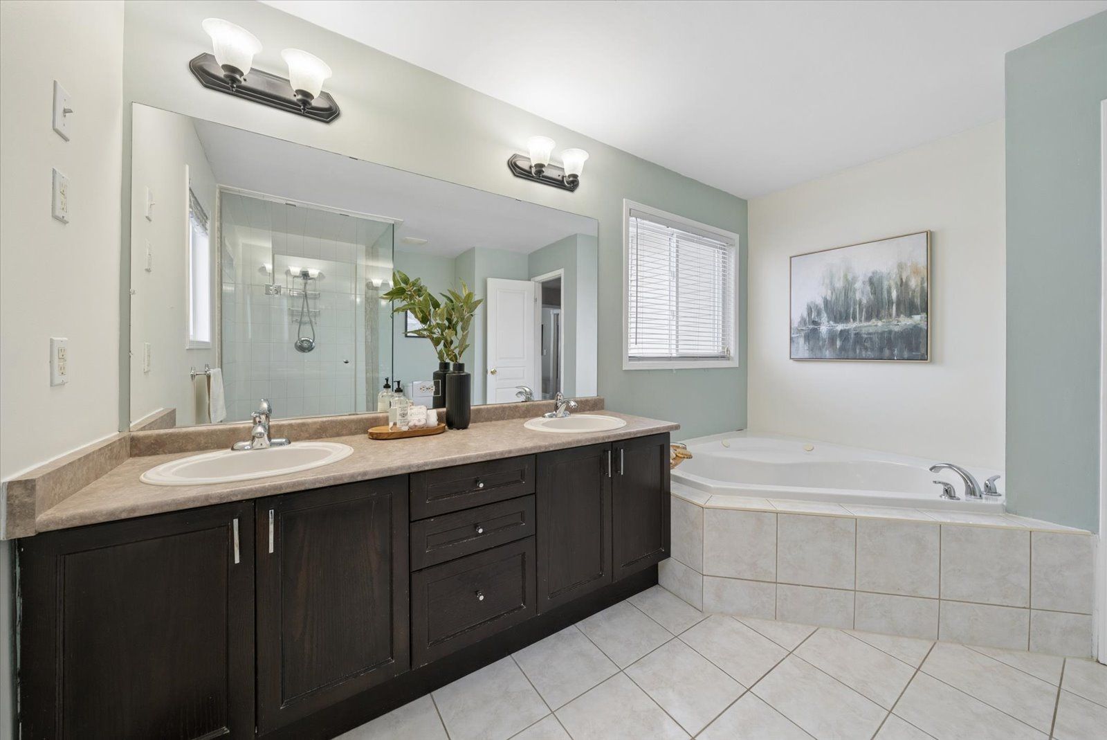Welcome to liberty crossings, one of north bowmanville's desired family neighbourhoods. This impressive 5-bedroom, 3-bathroom residence offers 2,721 sq. Ft. Of meticulously maintained living space designed for comfort, functionality, and style. The main floor features a bright, spacious front foyer, 9-ft ceilings, pot lights, and rich hardwood flooring throughout. A main floor laundry room with direct garage access adds everyday convenience. The upgraded eat-in kitchen is the heart of the home, complete with quartz countertops, upgraded stainless-steel appliances, tons of cabinetry, flowing seamlessly into the inviting family room. Here, a gas fireplace with custom built-in cabinetry creates the perfect atmosphere for both relaxation and entertaining. The upper level showcases five generously sized bedrooms, ideal for growing families or those needing extra office or guest space. The primary retreat offers a quiet escape, featuring a large walk-in closet and a spacious 5-piece ensuite. The beautifully renovated second bathroom includes double sinks and a modern glass shower, providing both luxury and practicality for busy mornings. An additional bedroom with its own private balcony adds a rare and charming architectural touch. The double car garage offers excellent storage capabilities, making this home as functional as it is elegant. Perfectly situated within walking distance to schools, parks, shopping, dining, and essential amenities, with everything conveniently located within 1 km. This is a prime opportunity to secure a spacious family home in a highly sought-after community.