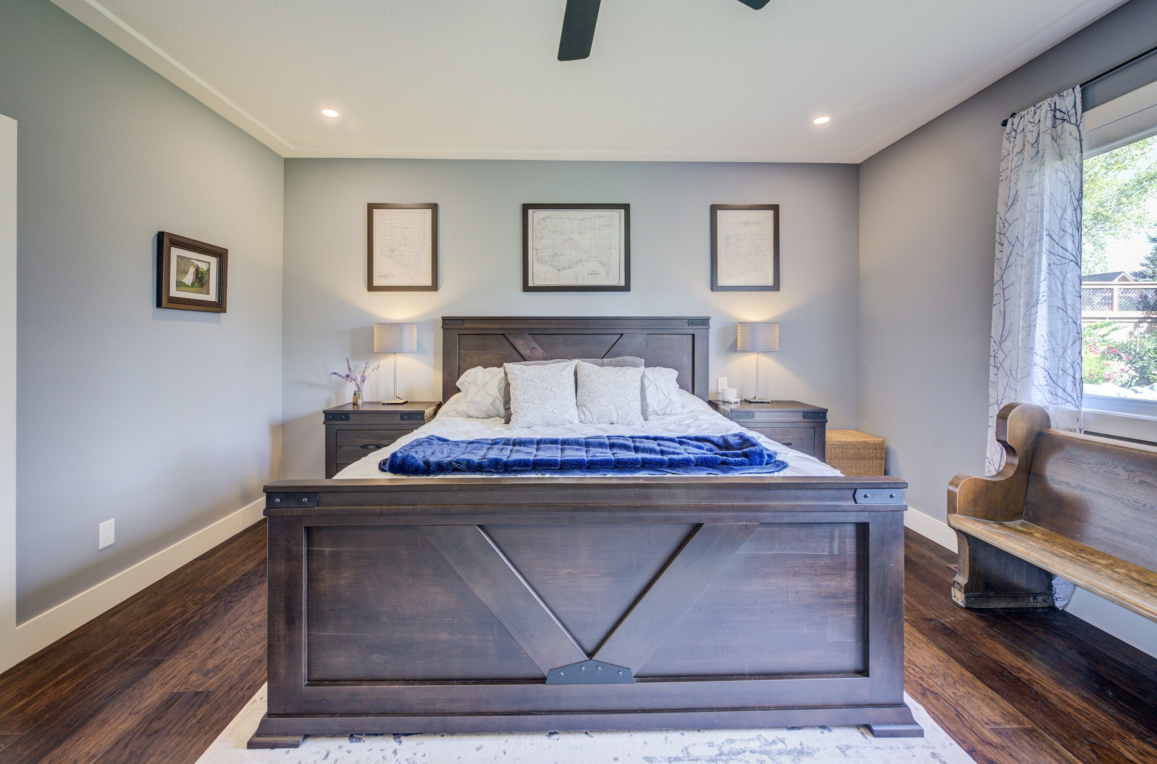 • Three-bay garage allows for hobbies and practical storage solutions.