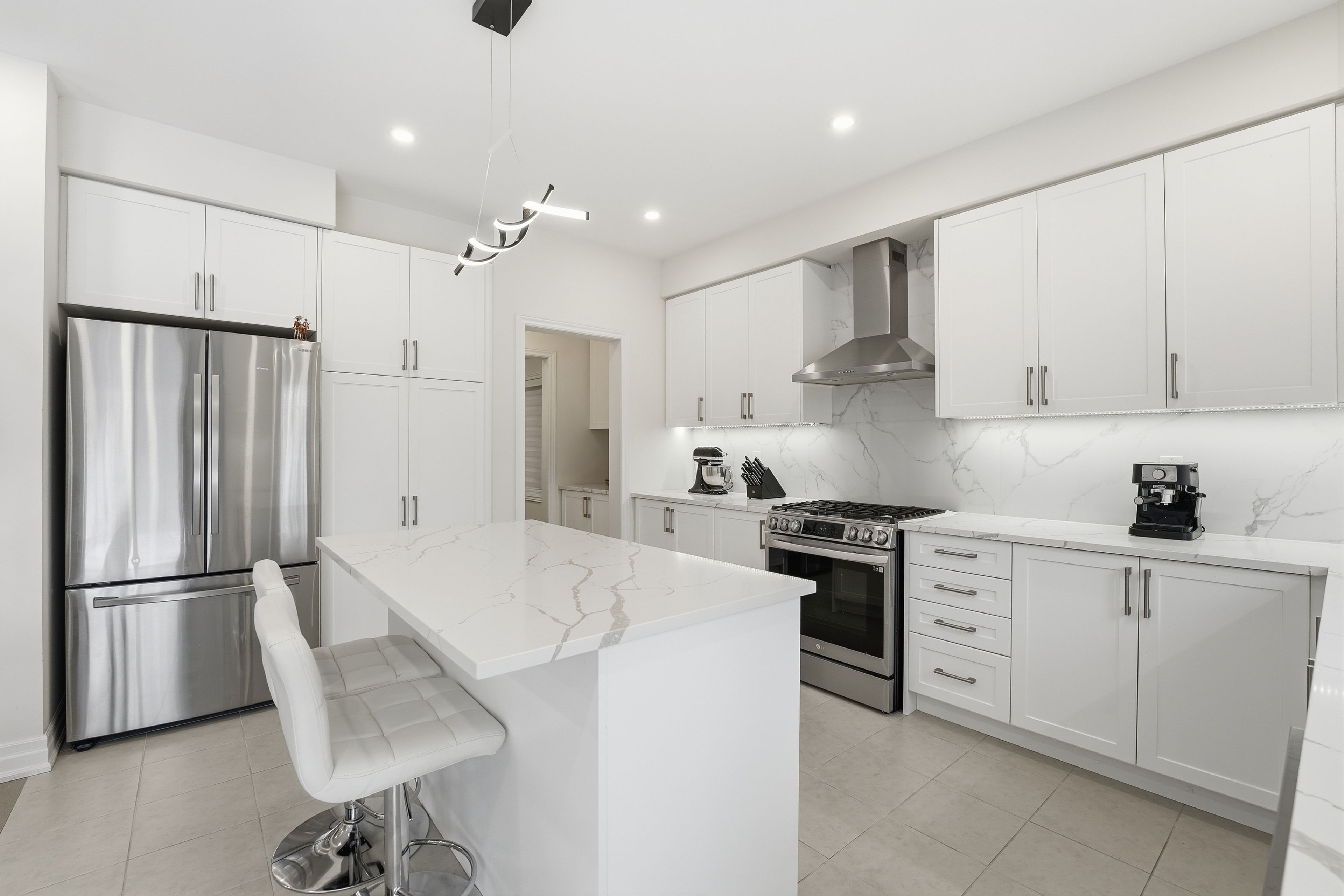 • Renovated 5-bedroom home with modern upgrades and 9-ft ceilings.