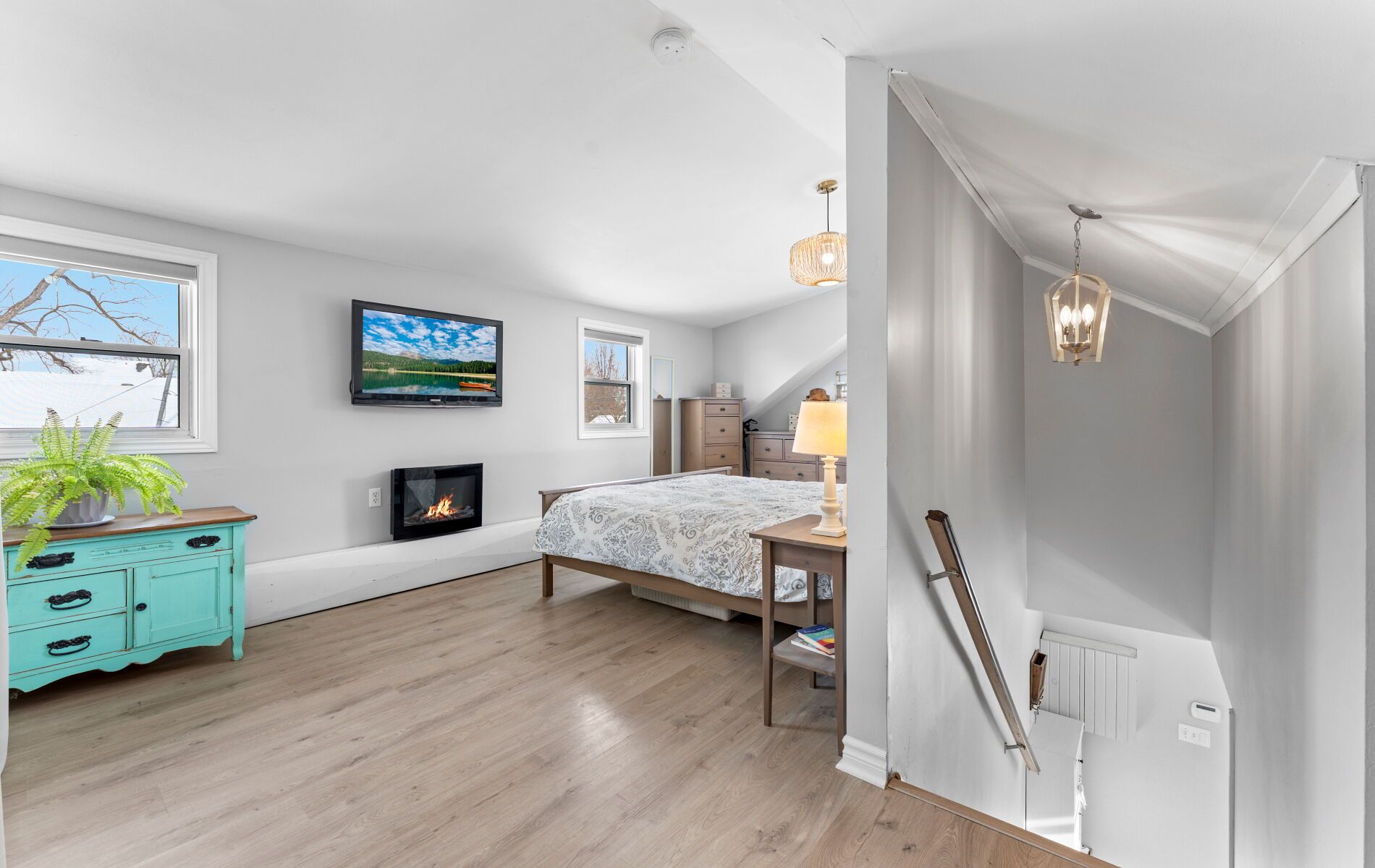 • Convenient main floor bedroom and spacious upper level loft for various uses.