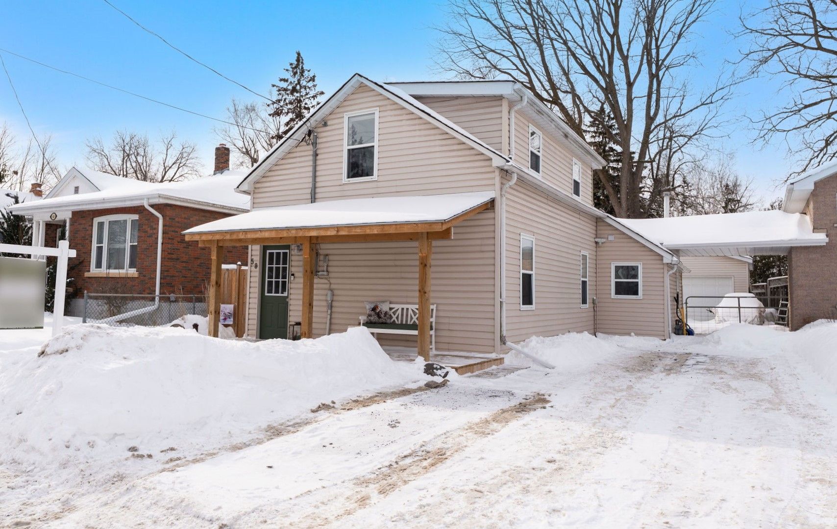 On a budget but don't want a cookie-cutter house on a postage-stamp lot? Well, check out this most affordable opportunity to own a detached home with character in the centre of alliston close to all amenities! This charming and tastefully-decorated home sits on a large downtown lot with mature trees surrounding. The front of the home features a lovely newer wood porch built 2023 and the large driveway provides parking for up to 4 cars in front and even more in back. The original century home has been expanded over the years and has had many updates, while still leaving room for your finishing touches. This unique home features vaulted ceilings in the kitchen and upper level and lots of windows for natural light all-around. There's a convenient bedroom on the main floor and a large, open-concept loft on the upper level, spacious enough for a king-sized bed suite, sitting area, office space, exercise area - whatever you envision - while still leaving space for the convenient laundry area on that level. In the back you'll find an impressive 24x24 ft detached garage for cars, a shop, work or play! This is a well-built, fully-insulated space complete with it's own 100 amp hydro panel, two separate 240v outlets, smooth, painted concrete floor and a window. (it's currently split in half via wall separating garage space and 'mancave' but can quickly and easily be opened back up.) suitable for a wide array of different types of buyers, this great value of a property can be snatched up in this market for a fabulous price!