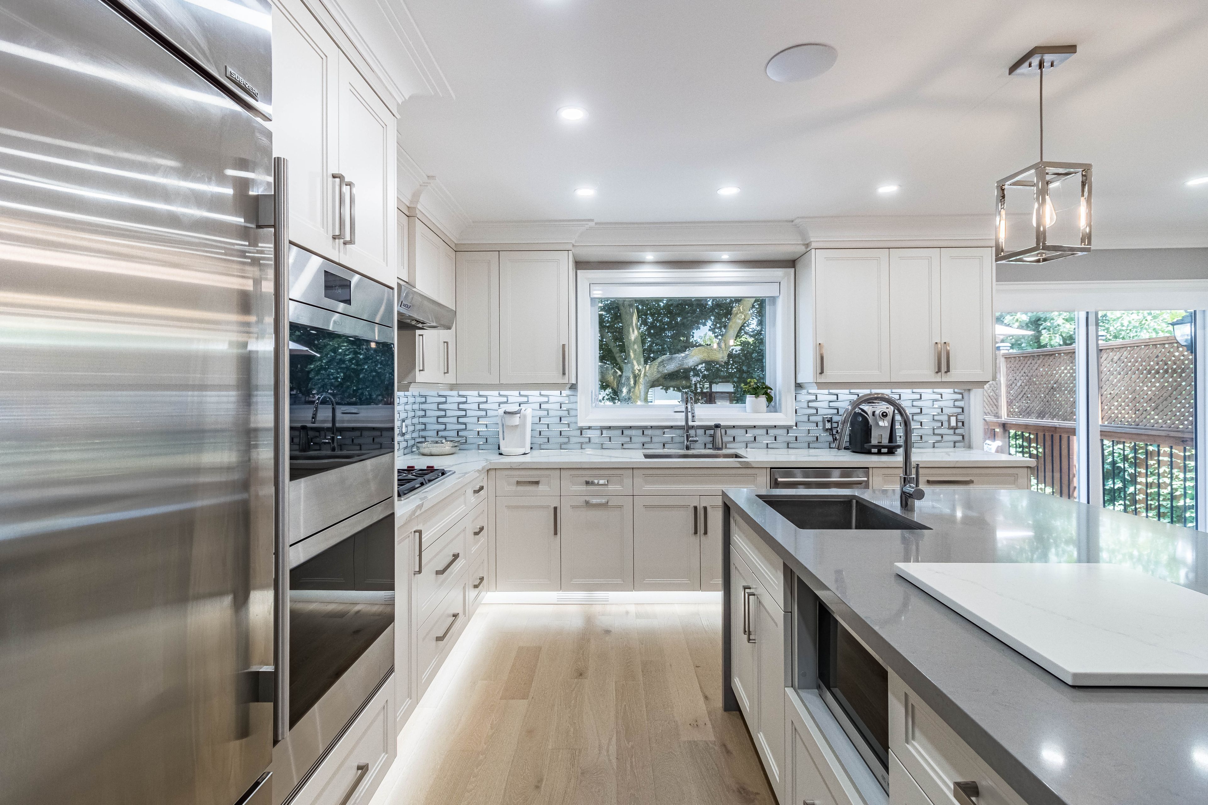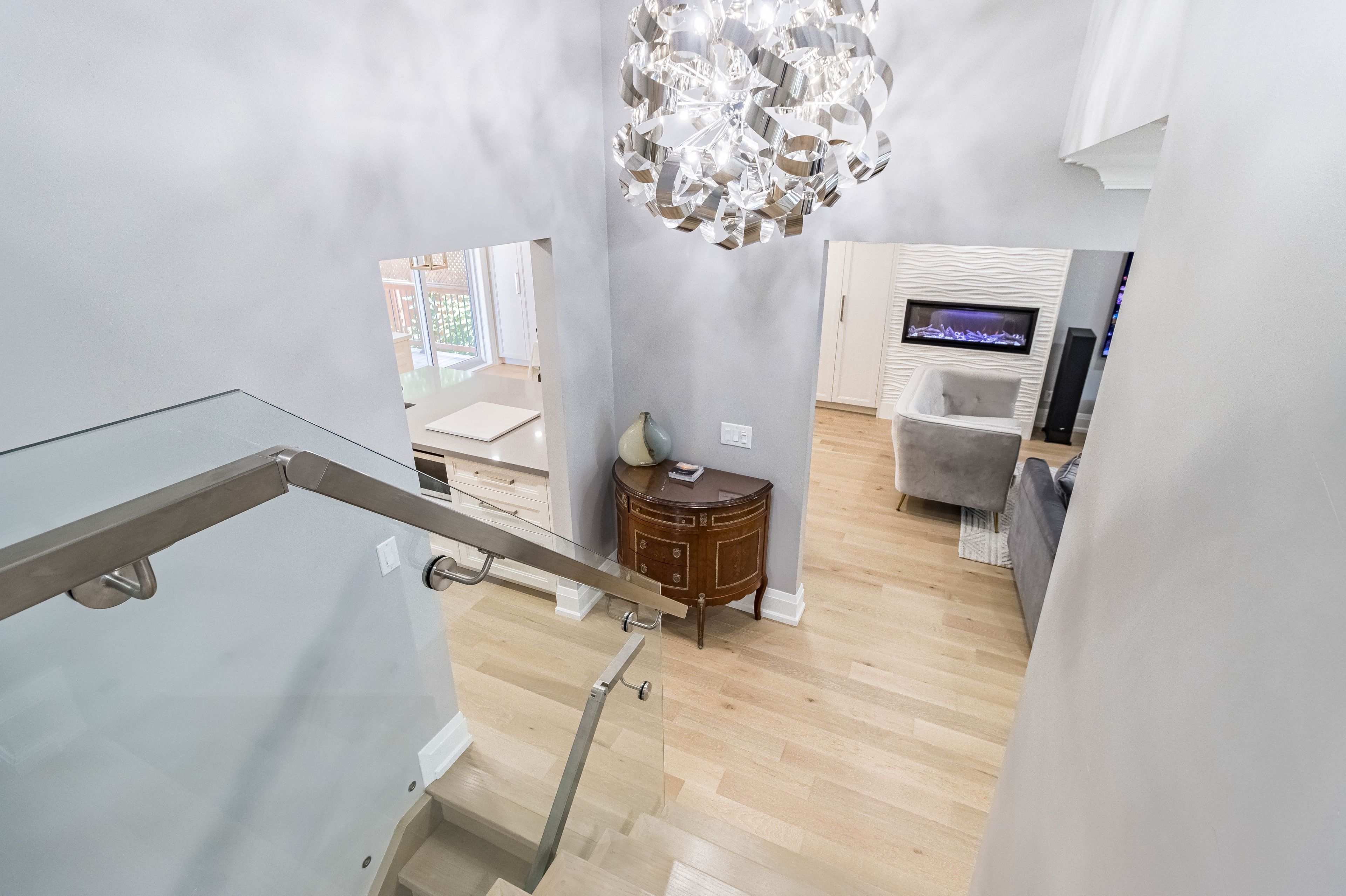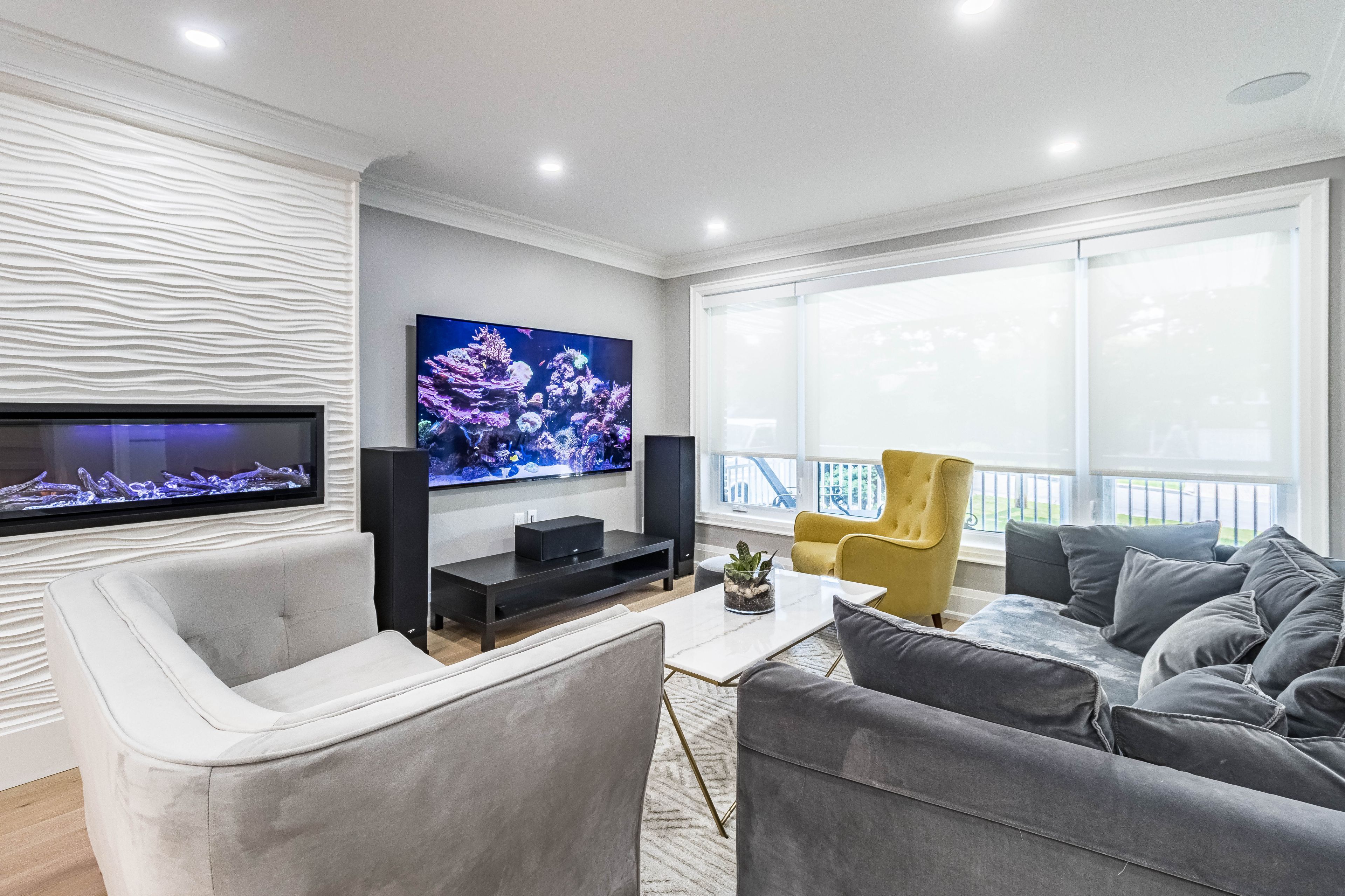 Luxury living awaits you! Step into a world of elegance and comfort with this stunning home that boasts exquisite features designed for modern living. From the moment you enter, you'll be captivated by the hardwood floors that flow throughout and the stylish marble and ceramic tile in all bathrooms. Indulge your culinary desires in a kitchen that's a chef's dream! Featuring quartz countertops, full-height cabinets, and a large island with a with a sleek waterfall countertop and sink, its perfect for entertaining. Equipped with a top-of-the-line sub-zero and wolf appliances, including double ovens, this kitchen is both functional and luxurious. Retreat to the main bathroom, where you'll find marble tops and a powered jet bathtub for ultimate relaxation. All showers are elegantly designed with glass enclosures, rainfall shower heads, and handheld wands for a spa-like experience. Enjoy the cozy ambiance of 2 remote-controlled fireplaces, one in the living room and another in the recreation room. The lower level also features a convenient kitchen with a fridge and sink, ideal for gatherings. Stay connected and entertained with speakers in every room, a surround sound system in both the living and basement areas and a control 4 app for seamless audio control. Security is paramount with a front doorbell camera, 4 exterior cameras, and a fully monitored alarm system. This home is a smart sanctuary with fully automated blinds, boosted wifi, and tankless hot water. All new pvc plumbing and electrical systems ensure peace of mind, while elegant touches like crown moulding, under-cabinet lighting and built-in closets elevate the aesthetic. Step outside to a beautifully landscaped yard featuring a backyard deck, a new driveway, and a stunning veranda with interlocking stone. The front lawn irrigation system keeps your space lush and vibrant year-round. This home is not just a residence; its a lifestyle. Don't miss this opportunity to make this dream home yours!