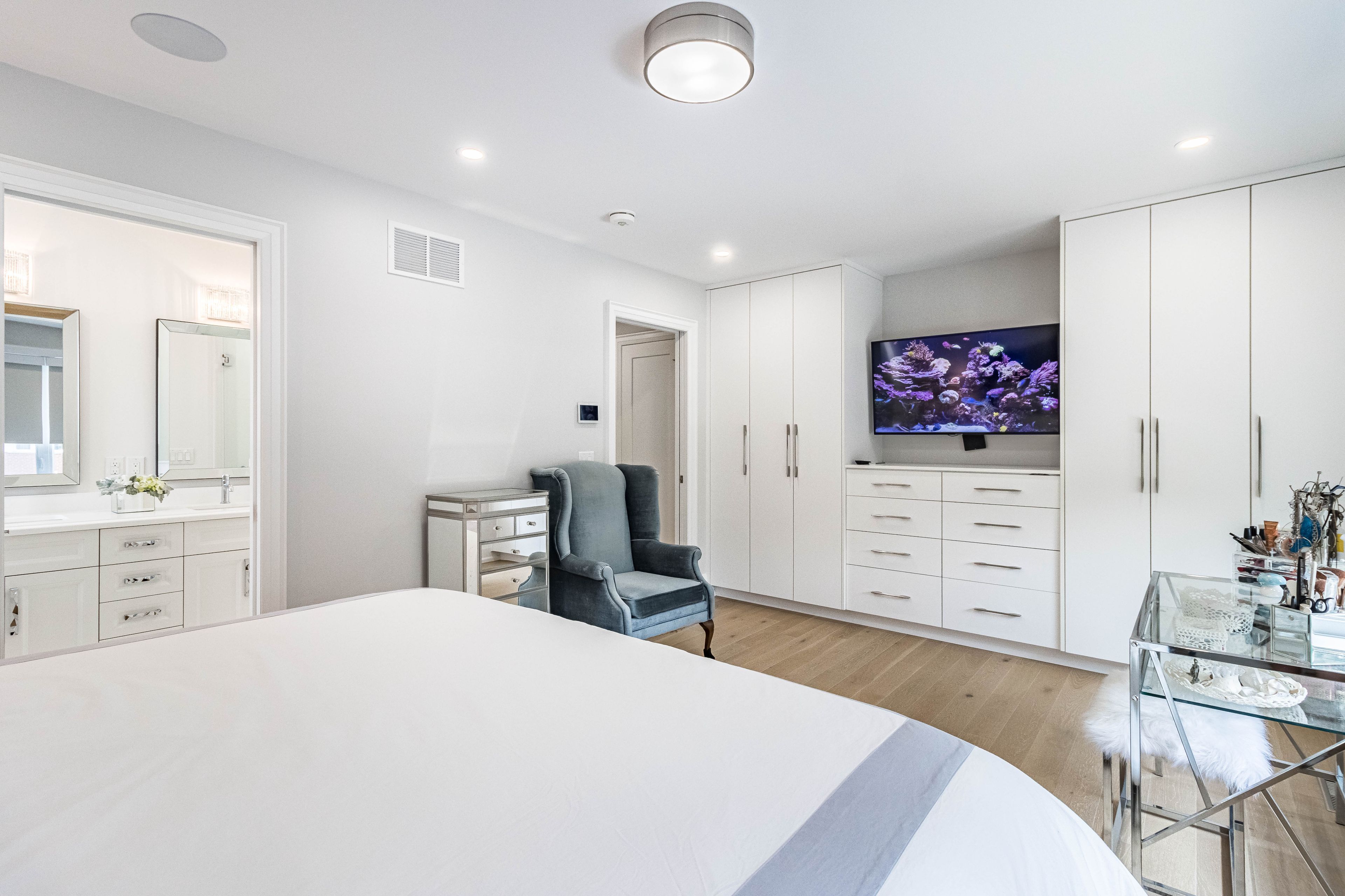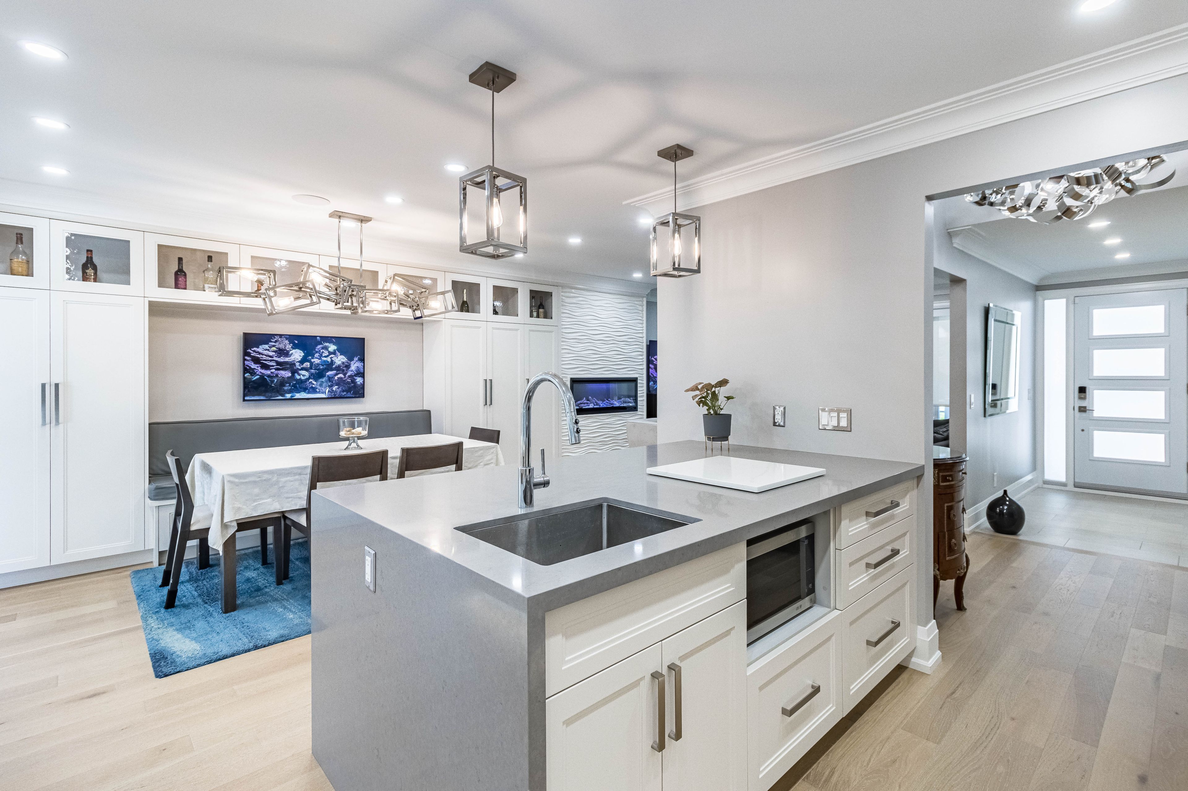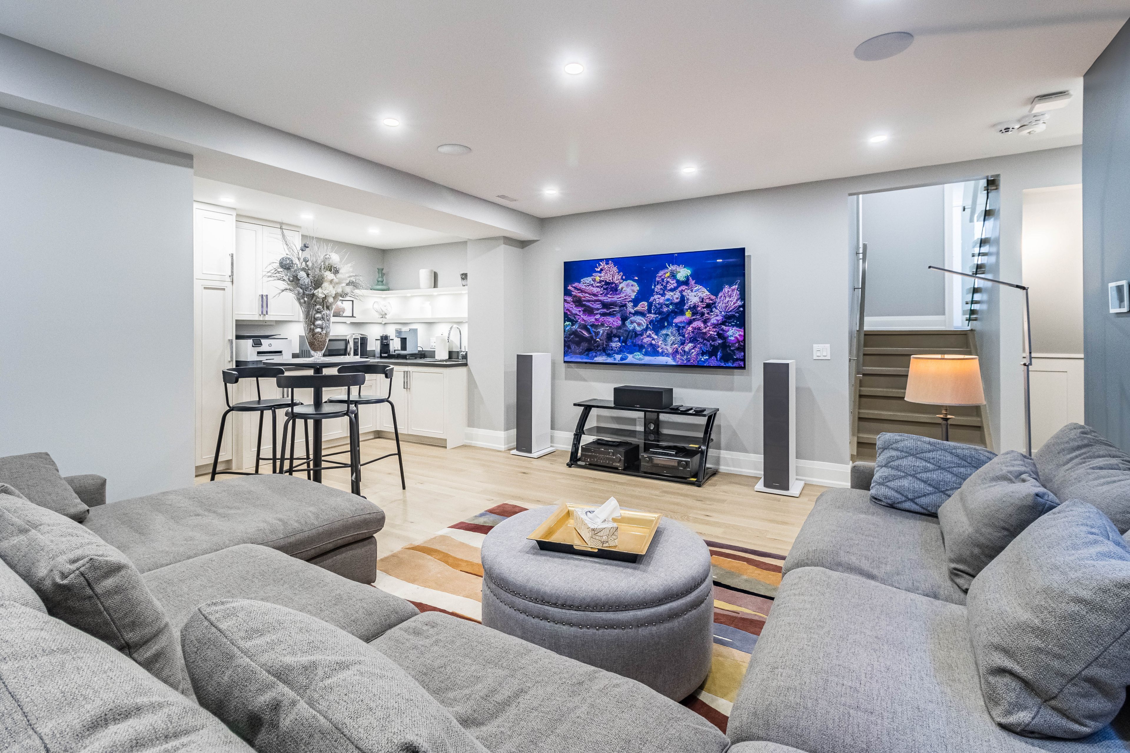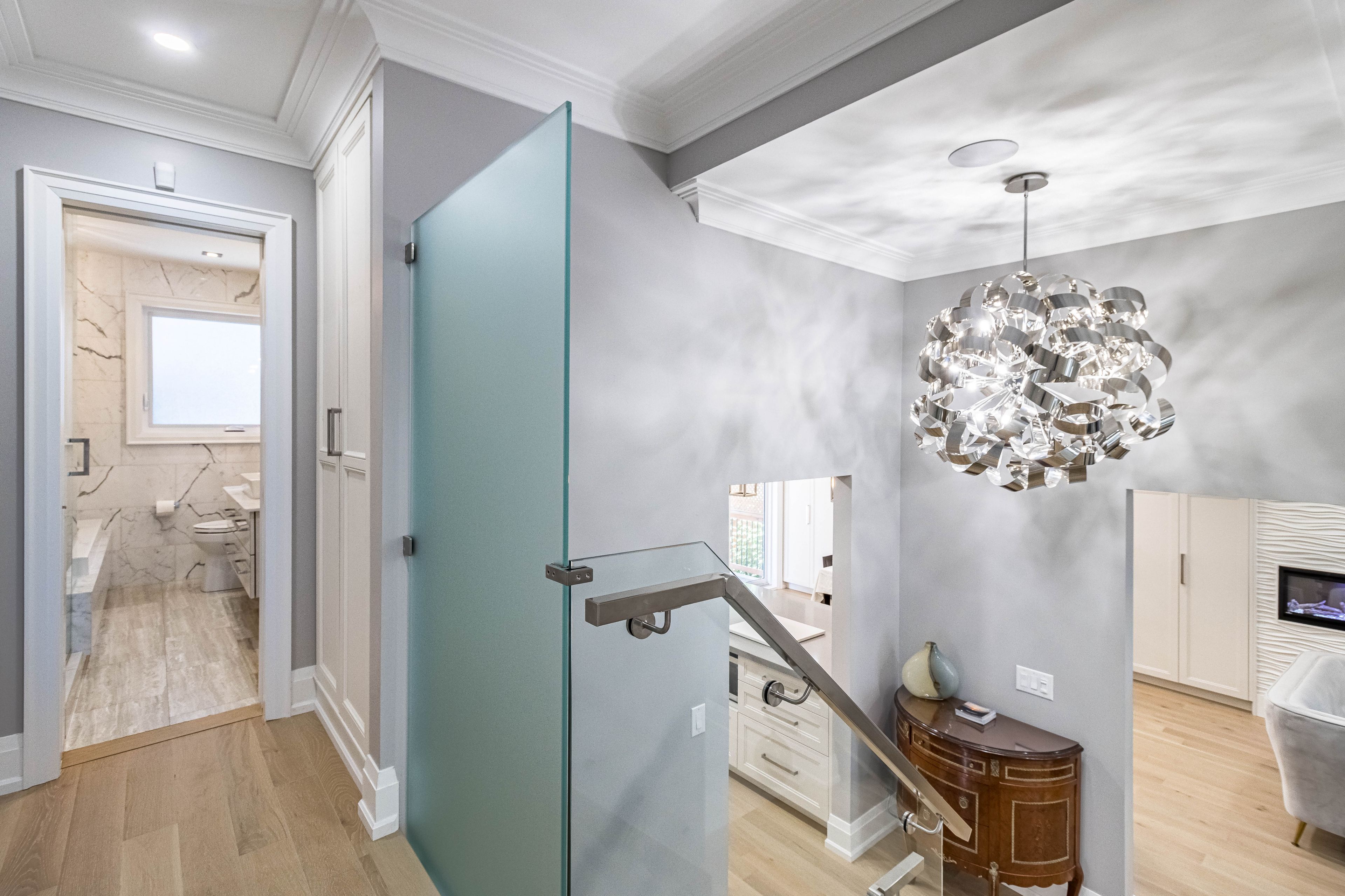 Luxury living awaits you! Step into a world of elegance and comfort with this stunning home that boasts exquisite features designed for modern living. From the moment you enter, you'll be captivated by the hardwood floors that flow throughout and the stylish marble and ceramic tile in all bathrooms. Indulge your culinary desires in a kitchen that's a chef's dream! Featuring quartz countertops, full-height cabinets, and a large island with a with a sleek waterfall countertop and sink, its perfect for entertaining. Equipped with a top-of-the-line sub-zero and wolf appliances, including double ovens, this kitchen is both functional and luxurious. Retreat to the main bathroom, where you'll find marble tops and a powered jet bathtub for ultimate relaxation. All showers are elegantly designed with glass enclosures, rainfall shower heads, and handheld wands for a spa-like experience. Enjoy the cozy ambiance of 2 remote-controlled fireplaces, one in the living room and another in the recreation room. The lower level also features a convenient kitchen with a fridge and sink, ideal for gatherings. Stay connected and entertained with speakers in every room, a surround sound system in both the living and basement areas and a control 4 app for seamless audio control. Security is paramount with a front doorbell camera, 4 exterior cameras, and a fully monitored alarm system. This home is a smart sanctuary with fully automated blinds, boosted wifi, and tankless hot water. All new pvc plumbing and electrical systems ensure peace of mind, while elegant touches like crown moulding, under-cabinet lighting and built-in closets elevate the aesthetic. Step outside to a beautifully landscaped yard featuring a backyard deck, a new driveway, and a stunning veranda with interlocking stone. The front lawn irrigation system keeps your space lush and vibrant year-round. This home is not just a residence; its a lifestyle. Don't miss this opportunity to make this dream home yours!