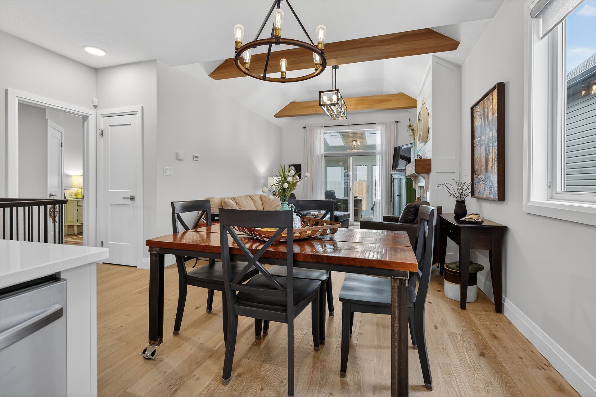 • Charming semi-detached bungalow with custom wood beams and sun tunnels.
