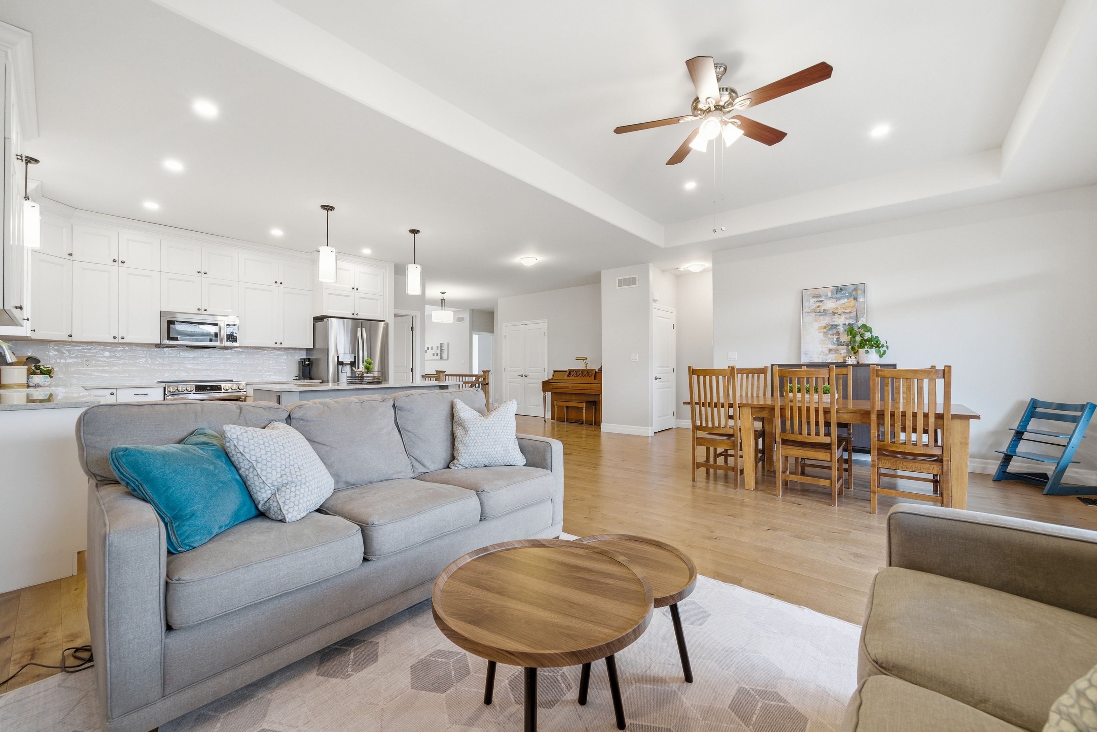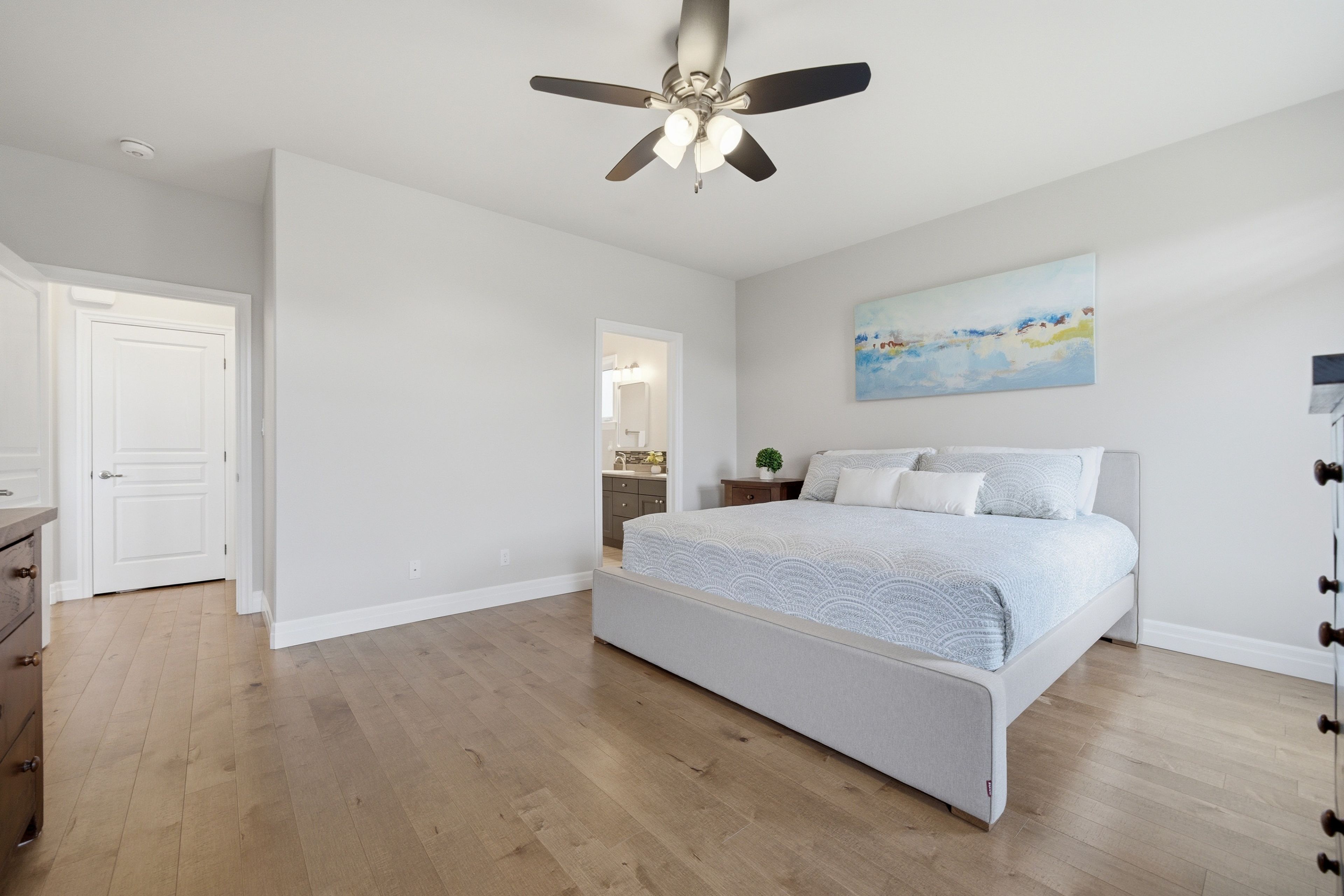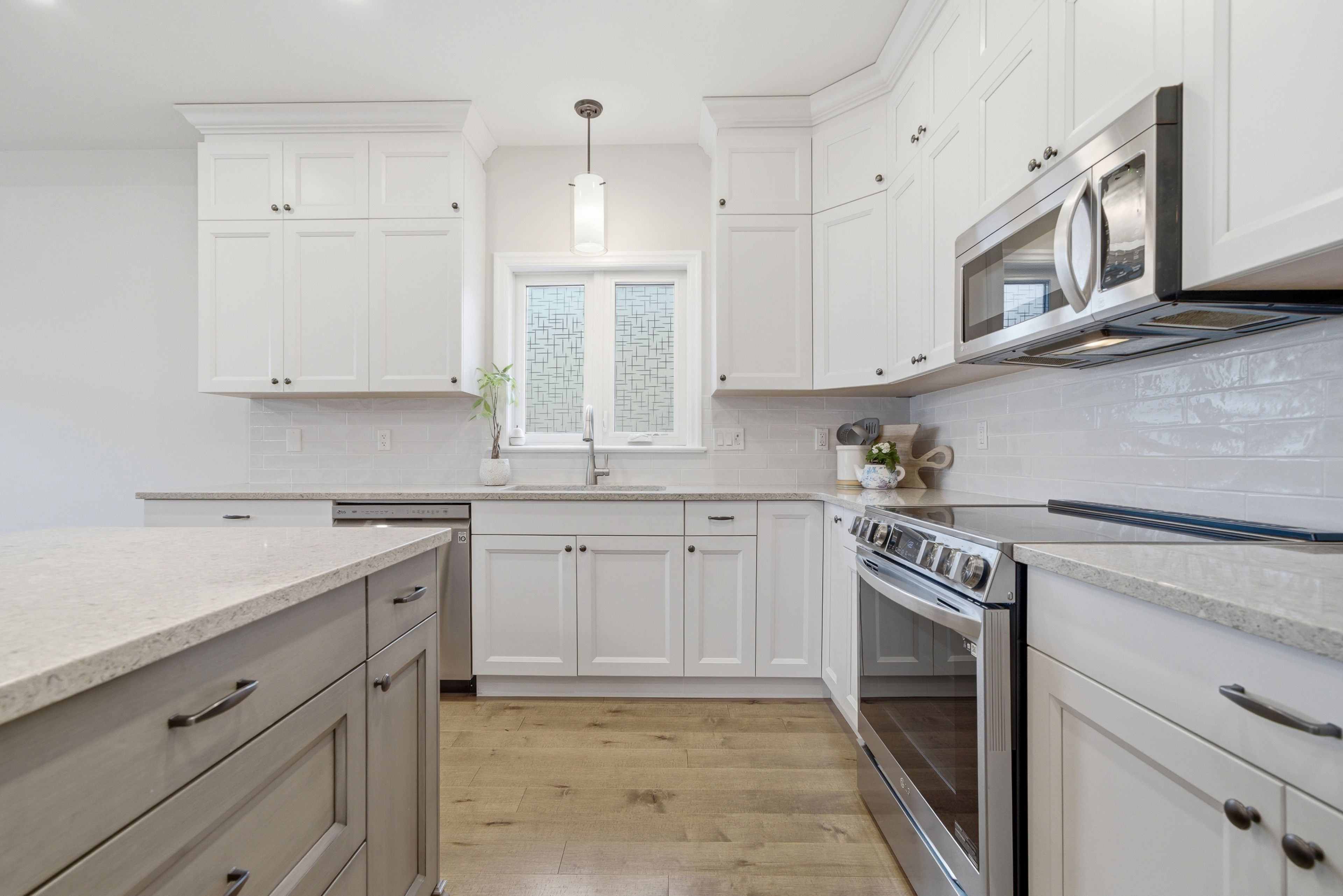 • Chef-inspired kitchen with quartz countertops and large eat-in island.