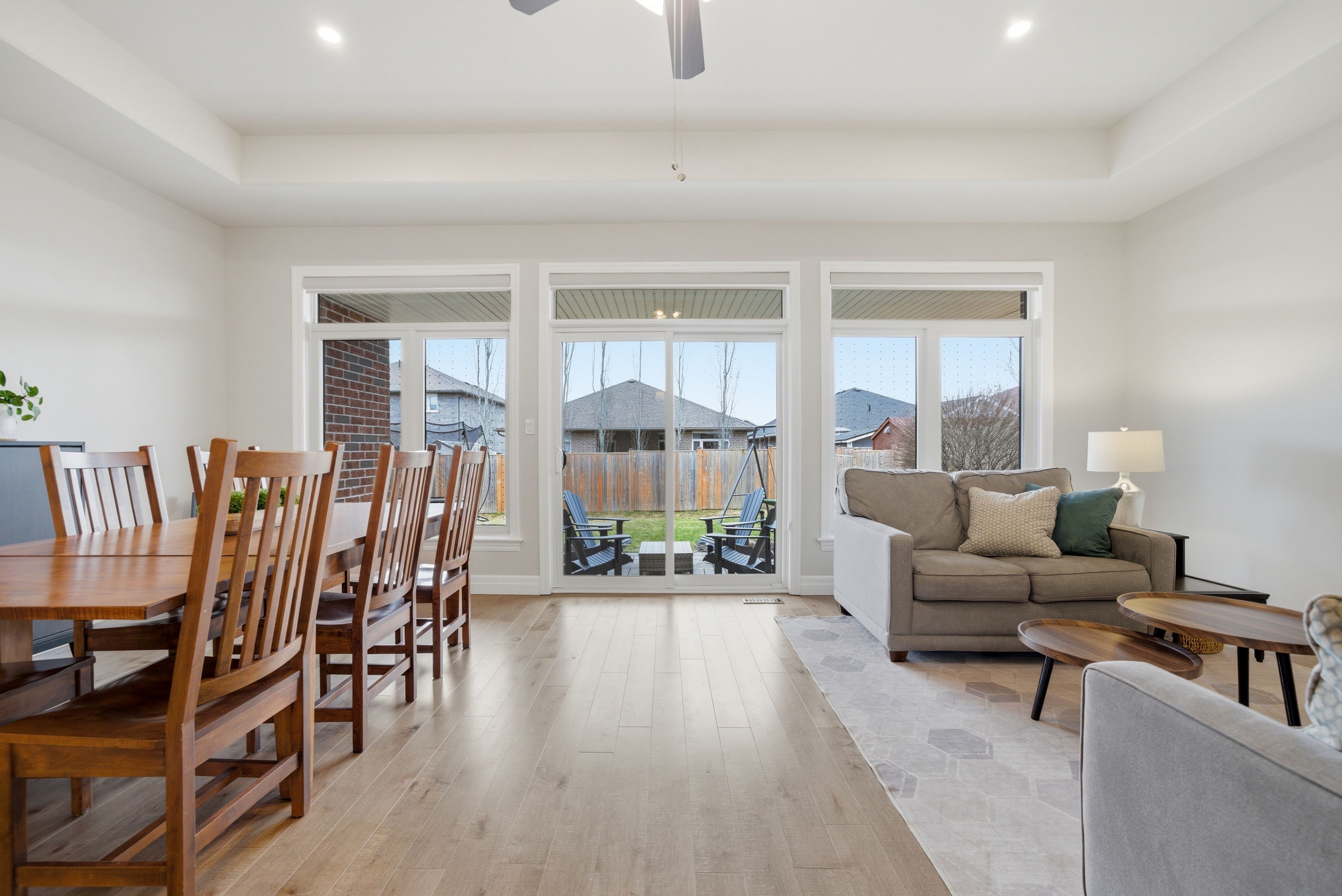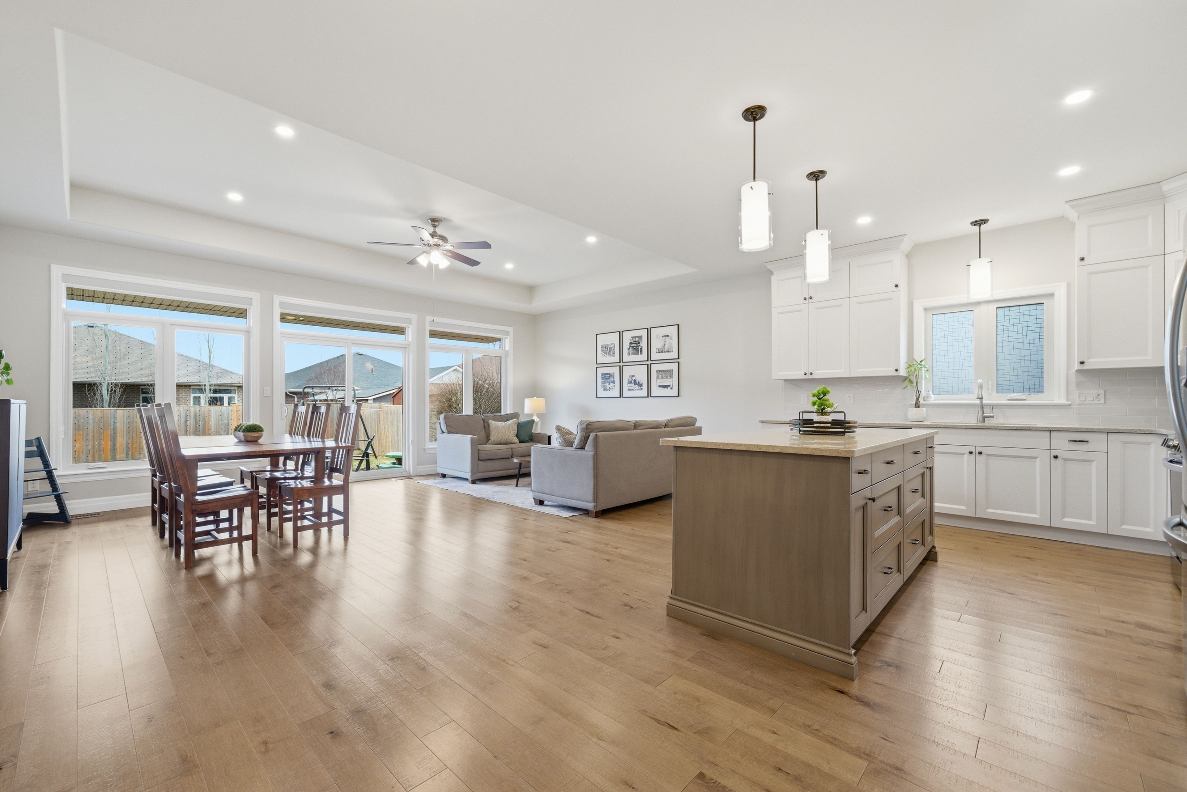 Welcome to 58 crews crescent-an exceptional 1,850 sq. Ft. Bungalow designed for modern living and effortless entertaining. With 5 spacious bedrooms, 3 full bathrooms, and a fully finished basement, this home offers an abundance of space perfectly suited for large families or those who love to host. From the moment you step inside, you'll appreciate the high-end finishes carried throughout the home. The chef-inspired kitchen is the heart of the space, featuring a large eat-in island, sleek quartz countertops, soft-close cabinetry, and a stylish tiled backsplash-ideal for both everyday meals and gatherings. The open-concept main floor is enhanced by engineered hardwood flooring, creating a warm and cohesive feel. The primary bedroom serves as a private retreat, complete with a generous walk-in closet and a luxurious ensuite boasting double sinks and a glass standing shower. Downstairs, the fully finished basement expands your living space with additional bedrooms and versatile areas perfect for recreation, a home office, or guest accommodations. Situated in one of quinte west's most desirable family-friendly neighbourhoods on the west end of trenton, this home offers unbeatable convenience. You're just minutes from local amenities, highway 401, trenton memorial hospital, and 8 wing trenton-making it an excellent choice for caf members and commuters alike. Additional features include a large double car garage with ample storage, and a beautifully designed outdoor space with a partially covered interlocking brick patio. Enjoy outdoor living with gas bbq hookups both on the patio and conveniently located in the kitchen. This is a rare opportunity to own a turnkey home in a prime location-where comfort, style, and practicality come together seamlessly.