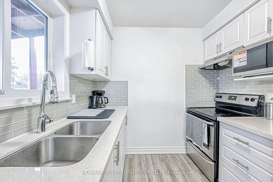 • Modern kitchen featuring quartz countertops and stainless steel appliances.