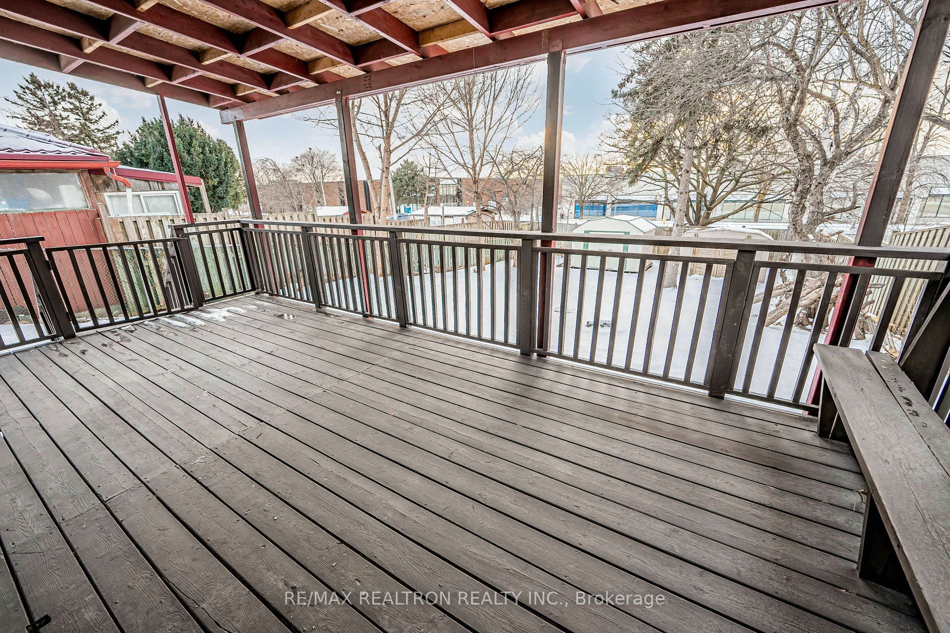 • Large backyard deck, perfect for outdoor activities and gatherings.