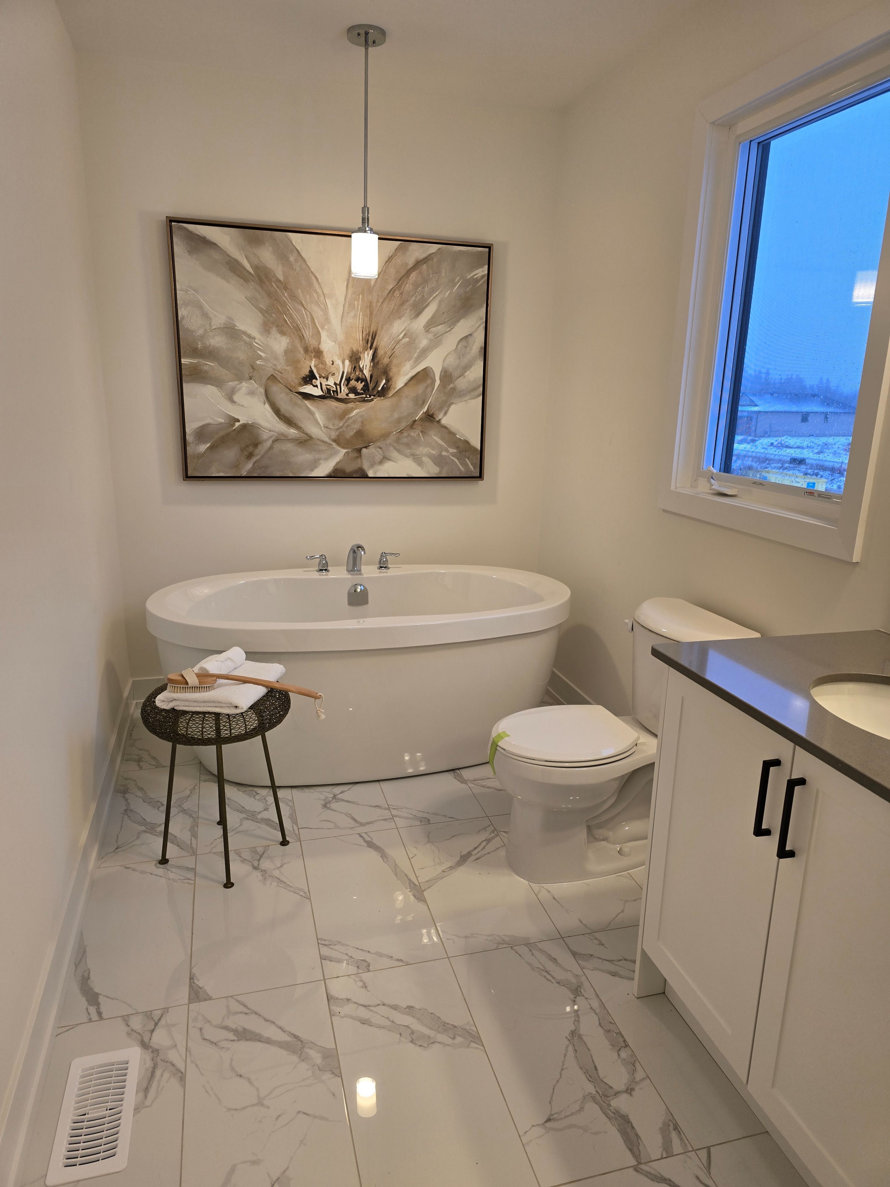 Welcome to the legacy model home, built by golden falcon homes, an impeccably crafted 2,600 sq ft two-storey residence that seamlessly blends thoughtful design with elevated finishes throughout. Built to showcase the best of modern living, this home is situated on a premium lot and offers a refined lifestyle with extensive upgrades, impressive functionality, and stunning curb appeal. From the moment you arrive, the upgraded full elevation siding and striking stone front façade set the tone for what lies inside. Step through the door into a spacious main floor with 9-foot ceilings, oversized black-framed windows, and a dedicated den or study perfect for remote work or a quiet retreat. The heart of the home is the showstopping kitchen featuring a designer colour package, quartz backsplash, and under-cabinet lighting that highlights the attention to detail. Enhanced with pot lights throughout, upgraded lighting, and elegant finishes, the space flows seamlessly into a warm and inviting breakfast area and living area anchored by a gas fireplace. Up the oak staircase, you'll find a thoughtfully designed second-floor laundry room for convenience and comfort. The upper level is finished with laminate flooring throughout and features generously sized bedrooms, including a luxurious primary suite. This is truly a haven. The ensuite bathroom is a retreat in itself, complete with a glass and tile shower, freestanding tub, and dual sinks offering both style and function. Additional highlights include upgraded interior and exterior lighting, air conditioning, a glass shower in the main bath, and ten exterior pot lights that accentuate the home's exterior in the evening. As a fully finished model home, this property is more than just move-in ready; it's a true showcase of craftsmanship, value, and modern luxury. If you're looking for a home that stands out in every way, the legacy is the one you've been waiting for.