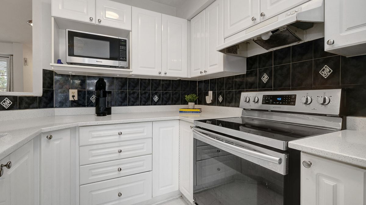 • Bright open layout with large windows and updated flooring.