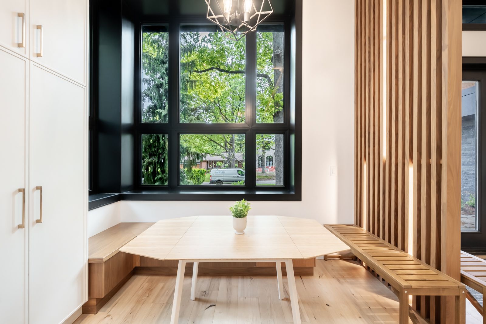 • Spacious main level features soaring ceilings and floor-to-ceiling windows.