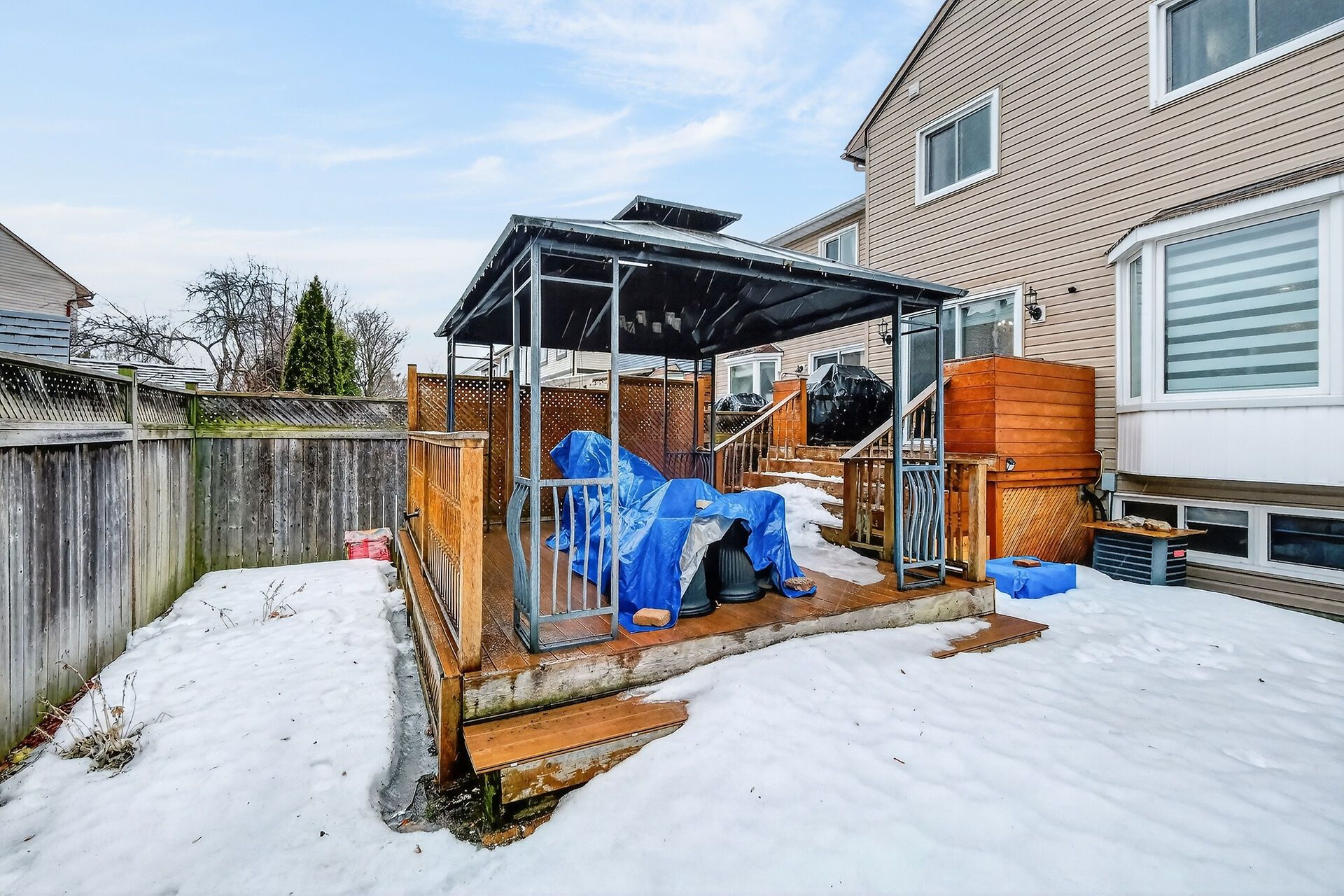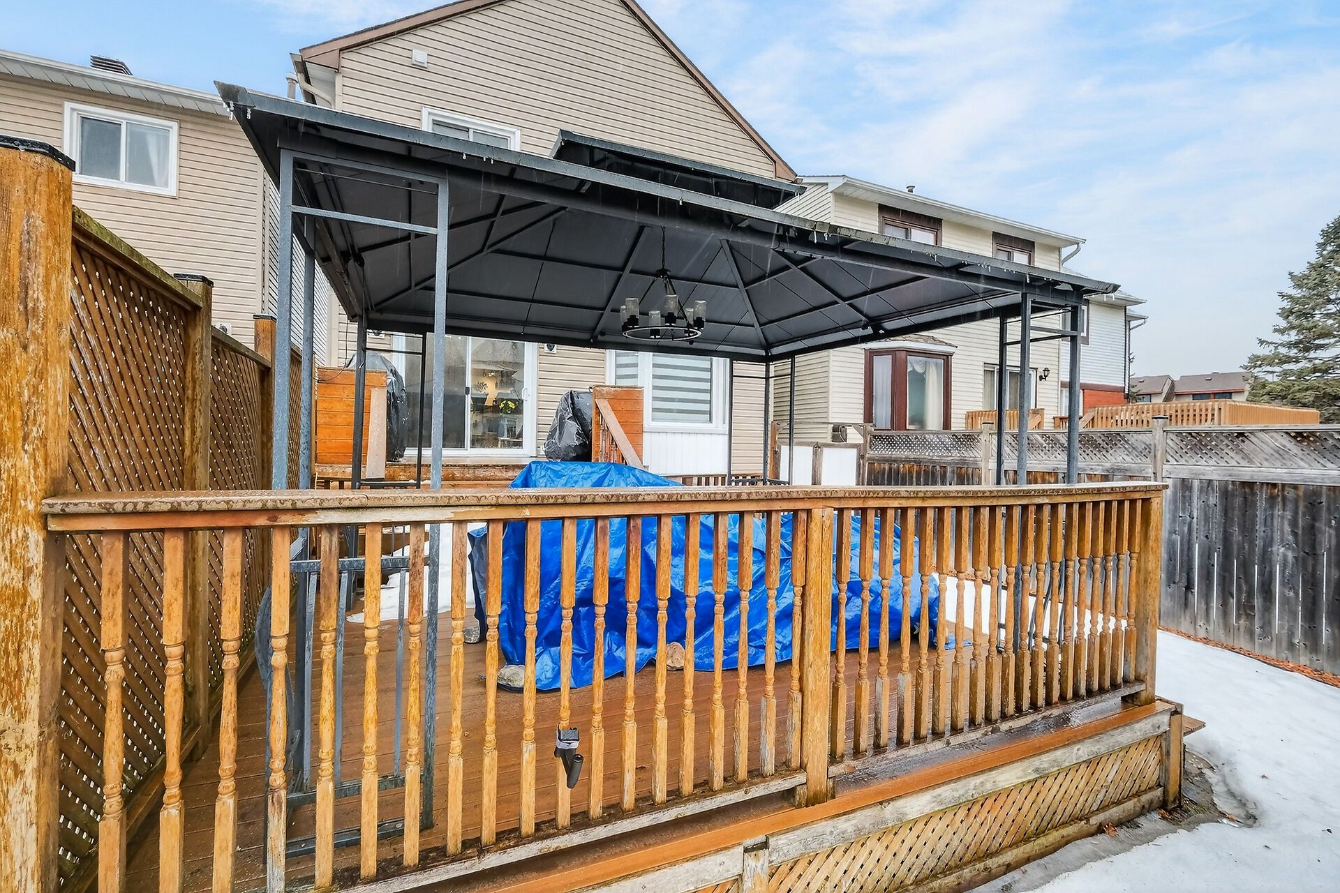 • Large two-tier composite deck with gazebo for outdoor enjoyment.