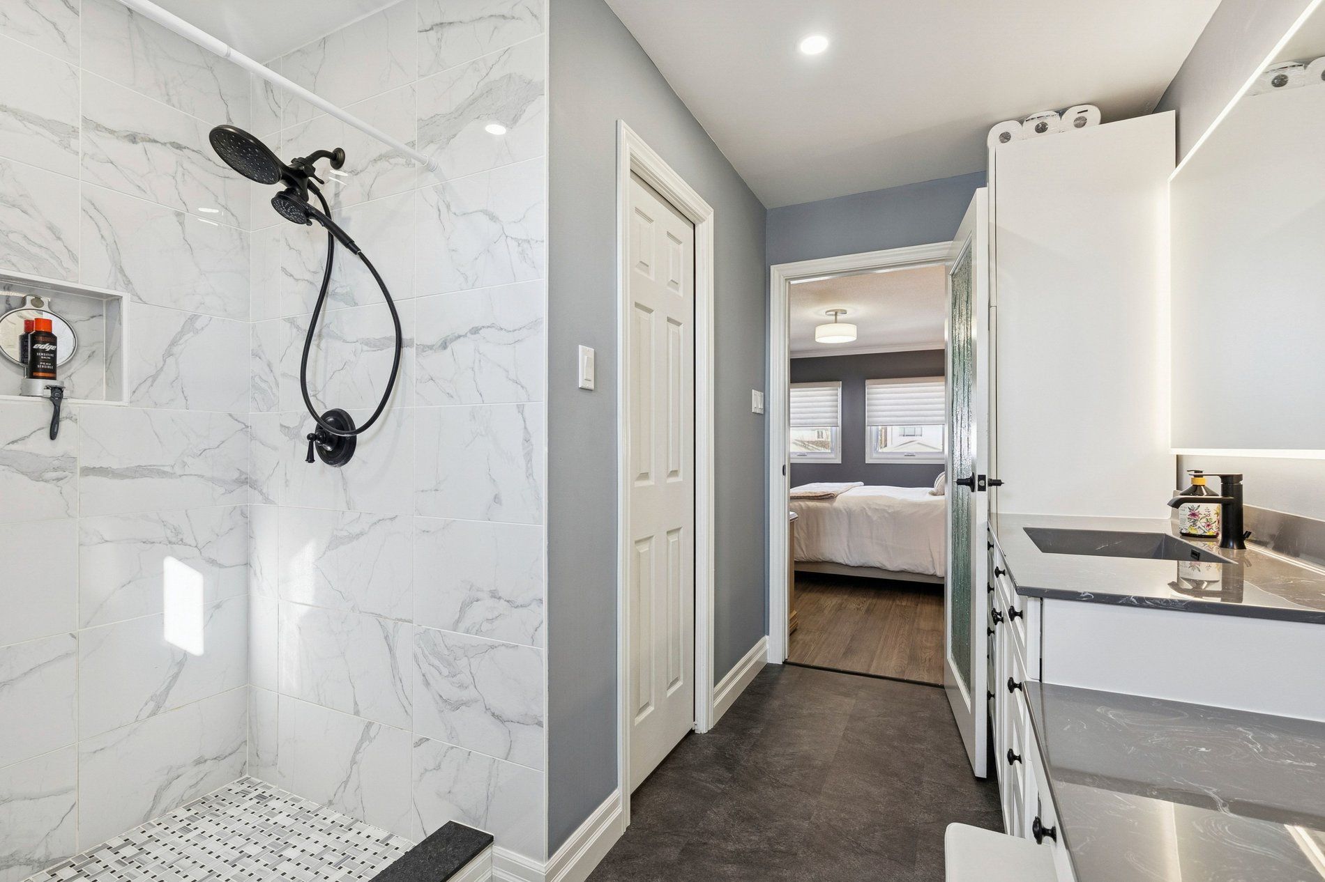 Stunning renovated 4+1 bedroom, 4-bath detached home offering exceptional space, versatility, and modern comfort in one of newmarket's most sought-after family neighbourhoods. Offering upscale finishes throughout, this home features an approx. 2,200 sq. Ft. Open-concept floorplan (plus an additional 1100 sq ft in-law suite) designed for everyday living and effortless entertaining. At the heart of the home is a stunning gourmet kitchen, recently renovated with a quartz centre island and breakfast bar, sleek finishes, and ample storage, perfect for gathering with family and friends. Warm engineered hardwood flooring, pot lights, and contemporary upgrades and built-in cabinetry flow seamlessly through the main living spaces, creating a bright and welcoming atmosphere. The walk-out finished basement offers incredible flexibility with a separate entrance and a well-appointed in-law suite, ideal for extended family, guests, or additional living space. With over $150,000 in recent upgrades, including hardwood flooring & staircases, beautifully reno'd kitchens and baths, heated floors in 2 bathrms (2nd flr & lower) roof shingles, hvac, and more, this home offers true peace of mind and move-in-ready convenience! Step outside to a large, private, fenced backyard with a stone patio, perfect for summer entertaining, space to play, or simply relaxing outdoors. Located in a desirable, active and connected community, this home is minutes from great schools (english, catholic & mazo de la roche french public elementary), parks, trails, transit, highway 404 & davis drive, costco, and everyday amenities. A perfect blend of style, function, and location, this home is designed for a growing family with plenty of room for in-laws, adult children, or potential for extra income. This one checks all the boxes!