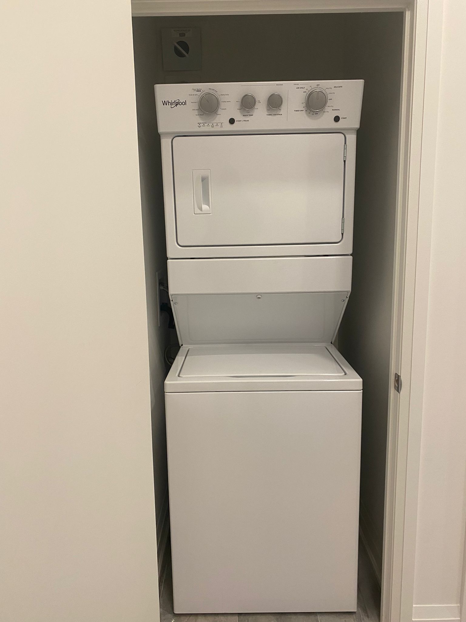 Private master bedroom for rent (shared living area with 1 single professional in a 2 bed and 2 bathroom condo) - modern condo across from georgian college, barrie . Welcome to this 830 sq. Ft. Open-concept condominium featuring 9-foot ceilings, stylish laminate flooring, stainless steel appliances, and in-suite laundry. The unit offers a bright and functional layout with access to a large balcony overlooking little lake. The spacious master bedroom includes a walk-in closet and a private ensuite bathroom with a glass-enclosed shower, providing comfort and privacy in a shared 2-bedroom, 2-bathroom condo. Building amenities:fitness centregames room24/7 securitymodern common areaslocation highlights:directly across from georgian collegeminutes to shopping, schools, hospital, highway access, and public transitadditional details:parking spot available for rent (optional)ideal for students or professionals. Furnished private bedroom & private bathroom for yourself. - private undergorund parking spot can be rented if needed.